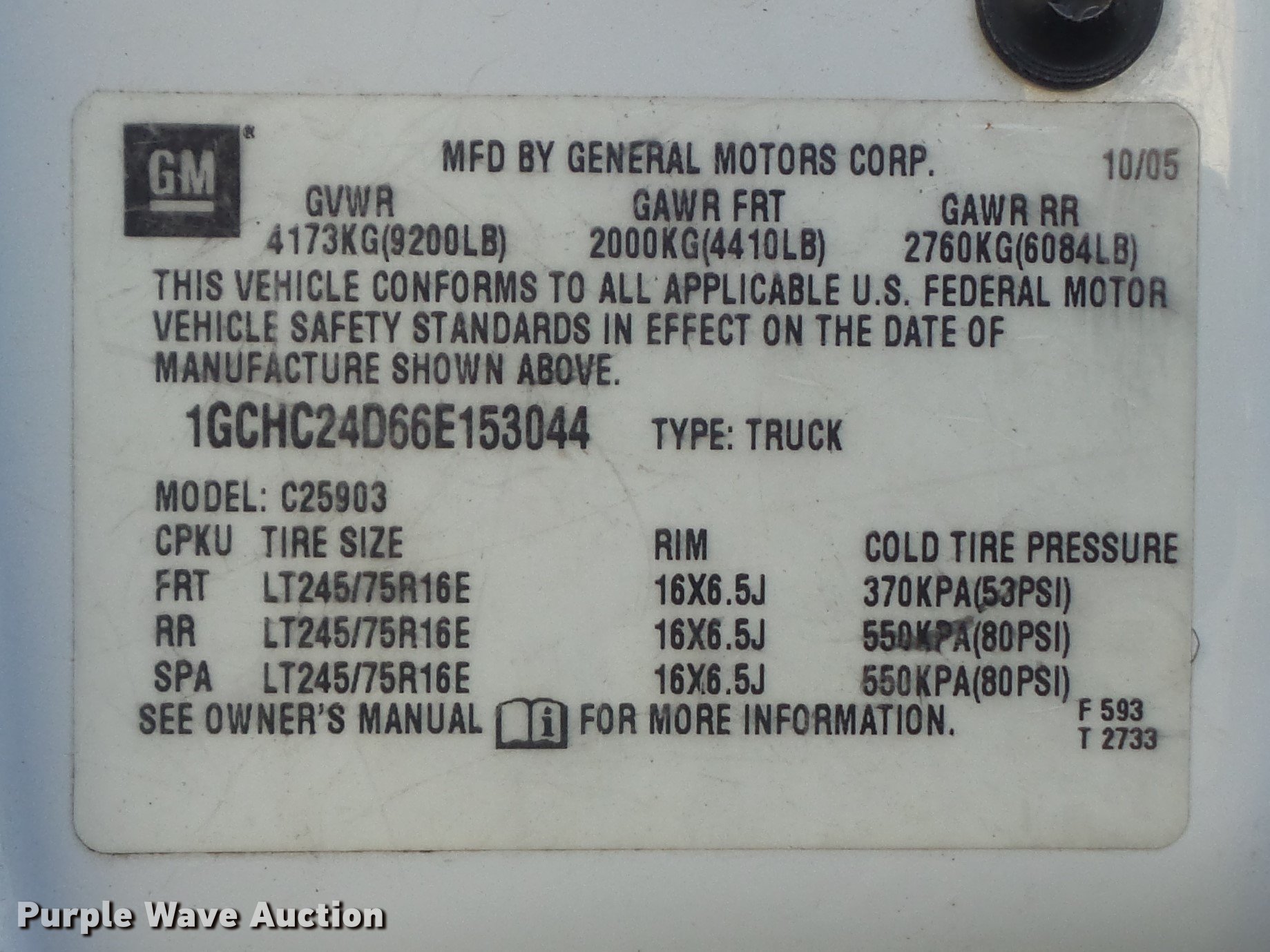 Purple Wave is selling a used 3/4 or 1 Ton Pickup or Van in Missouri. This item is a 2006 Chevrolet Silverado 2500HD utility bed pickup truck with the following: 200,431 miles on odometer, 1,073 hours on meter, 6.6L V8 OHV 32V turbo diesel engine, Automatic transmission, AC and heat, Tilt, AM/FM, Cloth interior, Front tow hooks, Brake controller, Reading U98ASW-DWRLHFFPB utility bed, 8'L, Auxiliary fuel tank, 100 gallon capacity, 12V pump, Hose and nozzle,, Receiver hitch, Pintle/ball hitch, Trailer wiring, LT265/75R16 tires, Service air bag light on, Chipped windshield