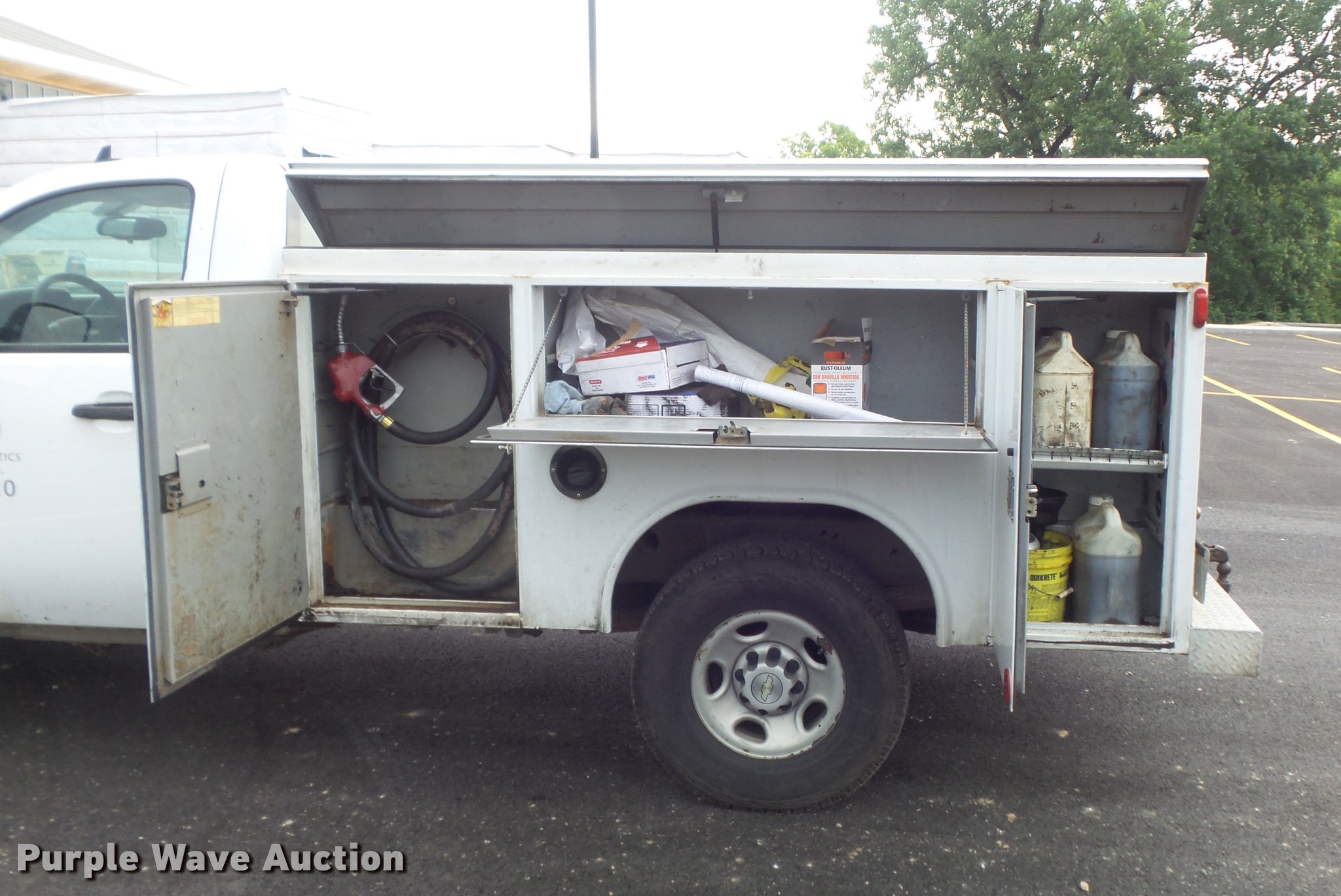 Purple Wave is selling a used 3/4 or 1 Ton Pickup or Van in Missouri. This item is a 2008 Chevrolet Silverado 2500HD utility bed pickup truck with the following: 94,334 miles on odometer, Miles may vary, still in use, 6.6L V8 OHV 32V turbo diesel engine, Automatic transmission, Four wheel drive, AC and heat, Tilt, Cruise, AM/FM/CD, Power locks, Cloth interior, Brake controller, Front tow hooks, Reading US98ABSW-T utility bed, 8'L, Auxiliary fuel tank, 100 gallon capacity, 12V pump, Hose and nozzle,, Pintle/ball hitch, Receiver hitch, Trailer wiring, LT265/75R16 tires, TPMS light on, Contents not included
