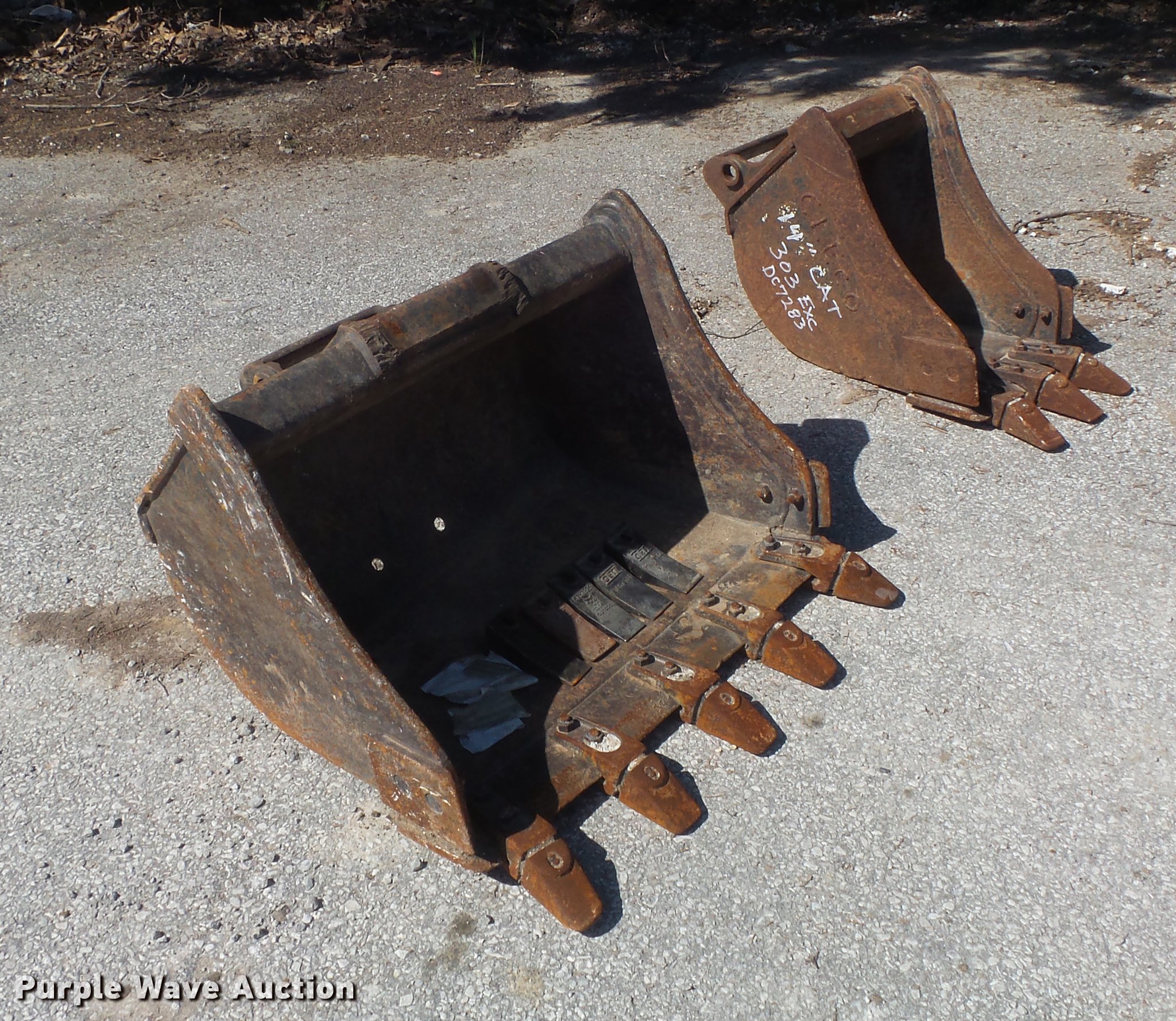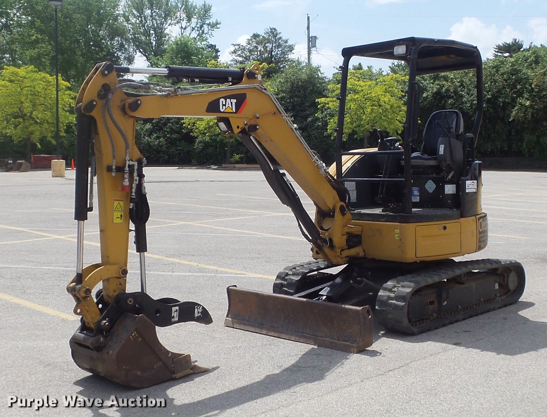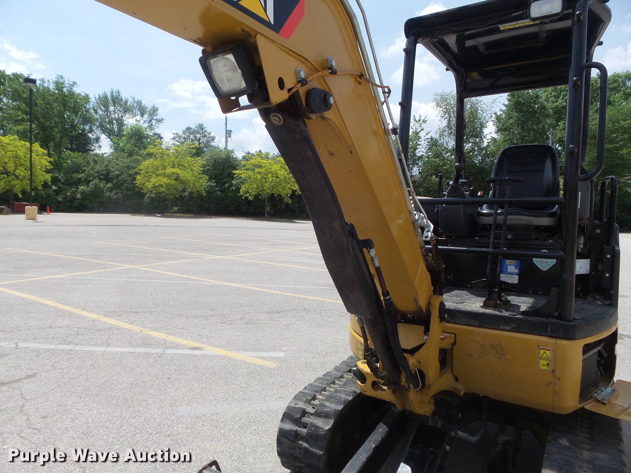 Purple Wave is selling a used Mini Excavator in Missouri. This item is a 2016 Caterpillar 303E CR mini excavator with the following: 702 hours on meter, Hours may vary, unit still in use, Caterpillar C1.3 1.3L three cylinder diesel engine, 24.8 HP, Serial 1GH1857, Two speed hydrostatic transmission, OROPS, Suspension seat, Pattern changer, Front work lights, Travel alarm, Standard boom, Bobcat 24"W bucket, (5) pin-on teeth, 14"W bucket, 30"W bucket, (5) additional teeth and pins, Caterpillar hydraulic thumb, Bobcat mechanical quick coupler, Two way auxiliary hydraulics, 60"W backfill blade, 12"W rubber tracks, Serial CAT0303EPHHM01879