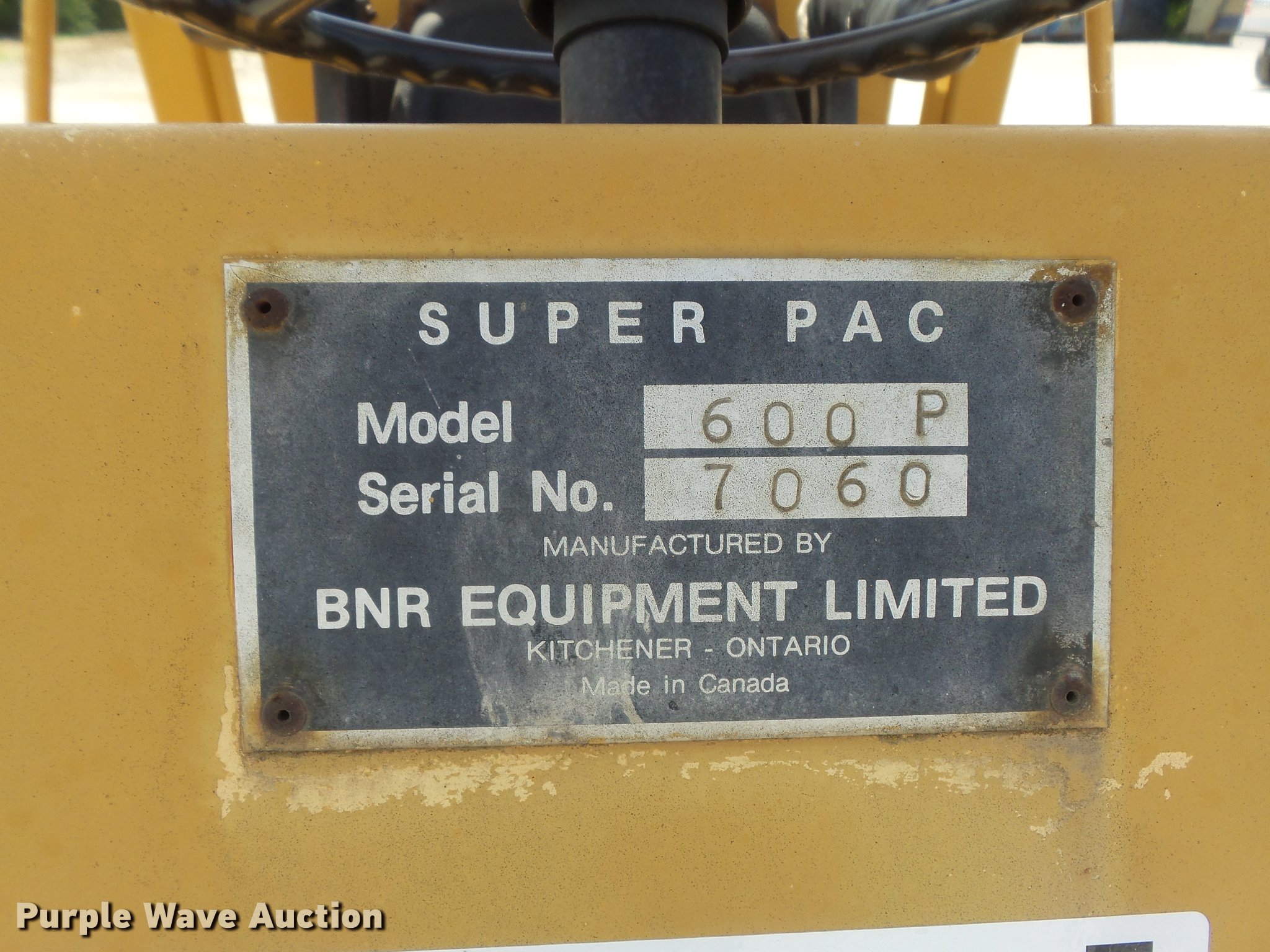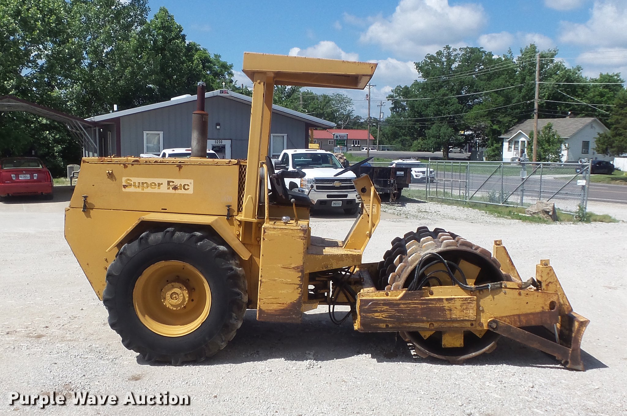 Purple Wave is selling a used Single Drum Roller Compactor in Missouri. This item is a Super Pac 600P single drum vibratory roller with the following: 2,703 hours on meter, Deutz four cylinder diesel engine, Hydrostatic transmission, Canopy, 60"W x 38" diameter padfoot drum, Single vibratory system, 67"W front blade, (2) 14.9-24 tires, Serial 7060