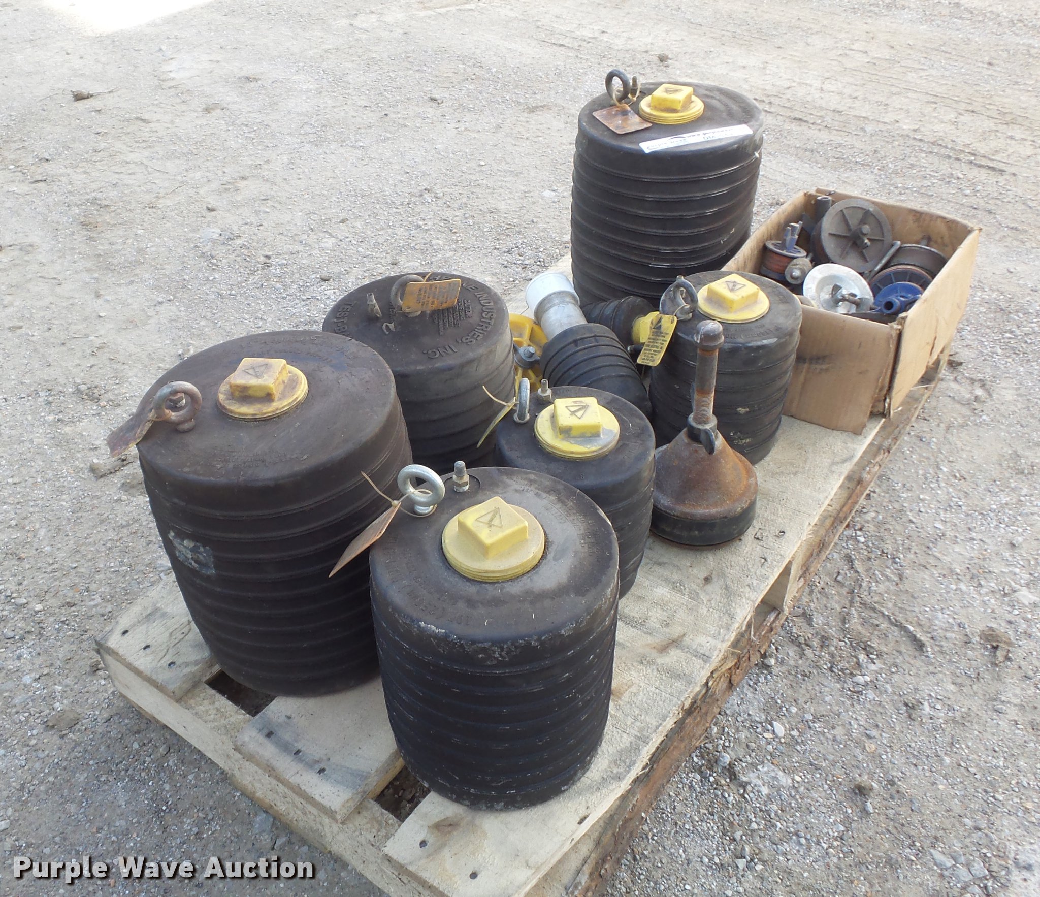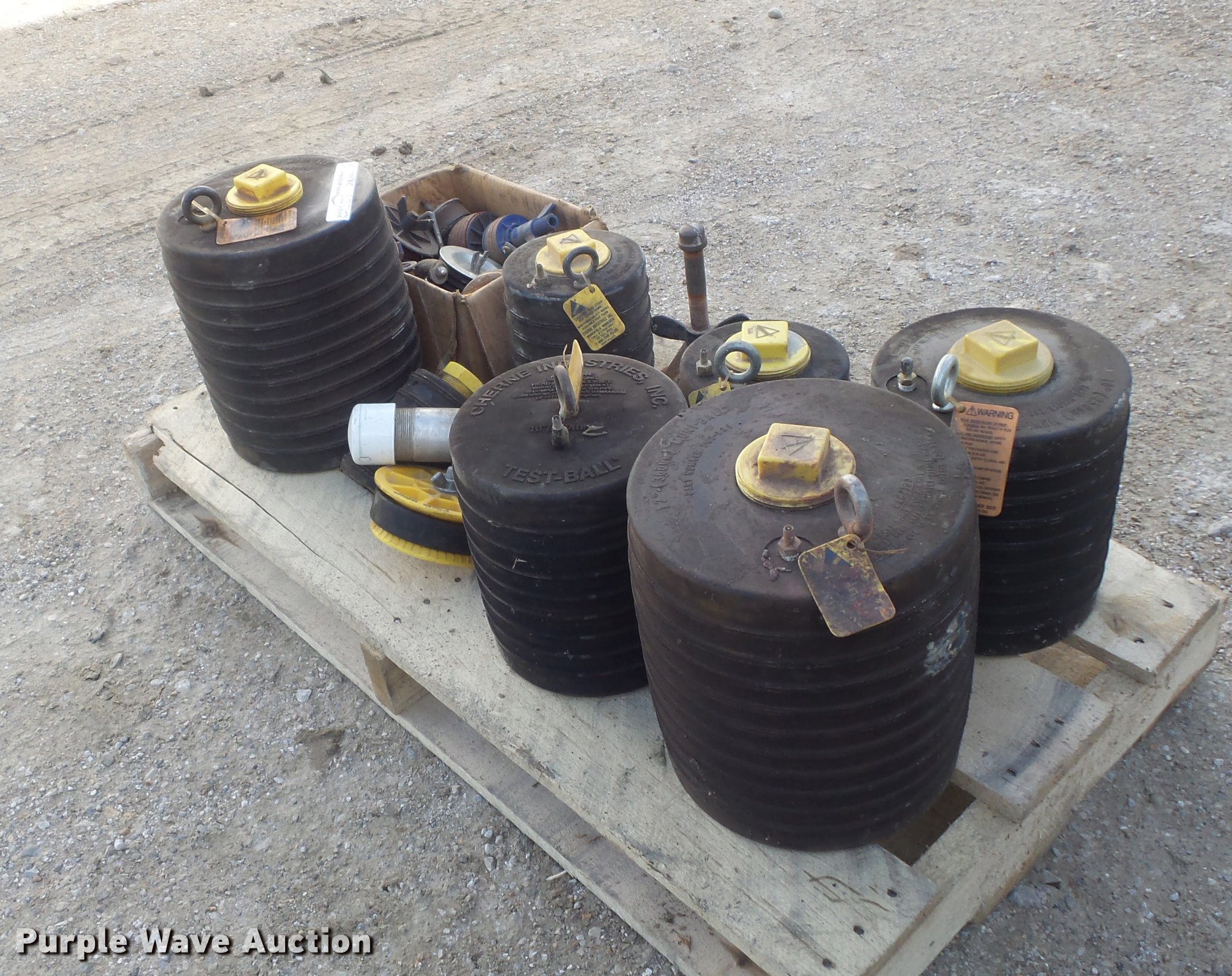 Pipe plugs. (2) 12" pneumatic plugs, (2) 10" pneumatic plugs, (2) 8" pneumatic plugs, 6" pneumatic plugs, Various styles and sizes. CLECO - Construction Logistics & Exc Company - Open inspection June 26. 5230 US Hwy 61 67. Imperial, MO 63052