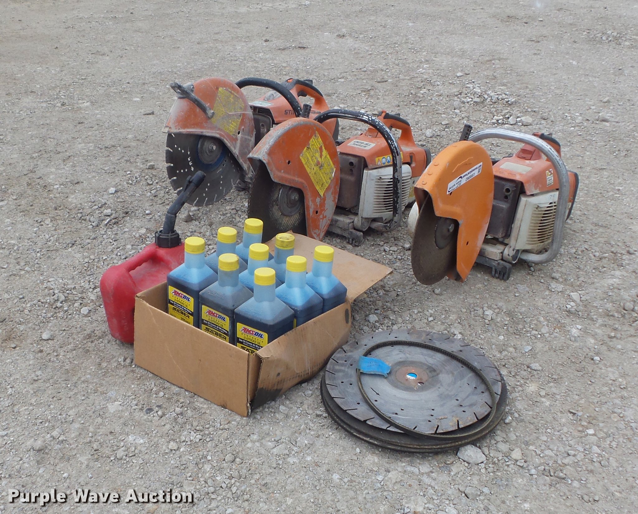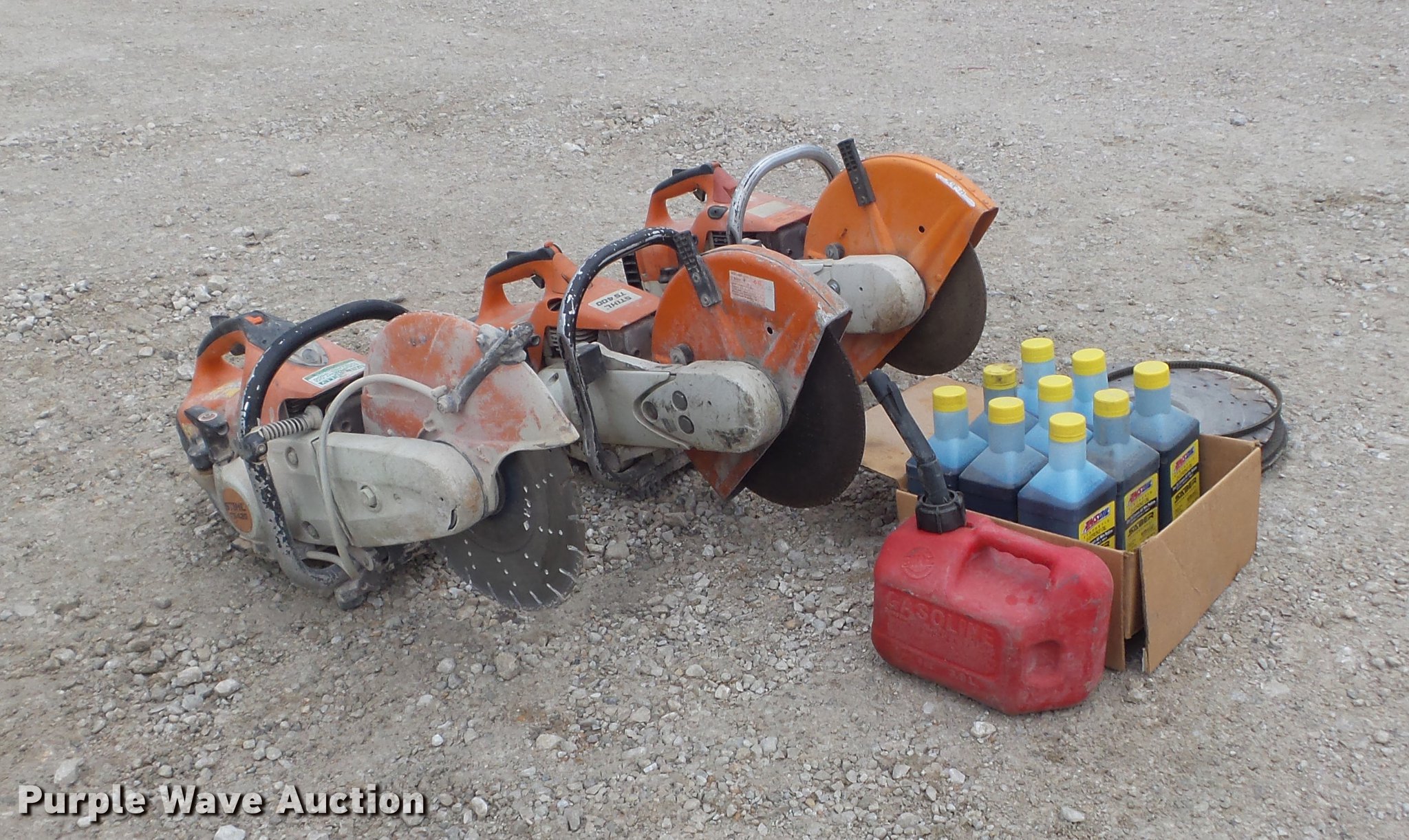 Purple Wave is selling a used Concrete Equip. or Acces. in Missouri. This item is a (3) Stihl cut-off saws with the following: Additional blades, Gas can, (9) quarts of two stroke oil mix, Unused