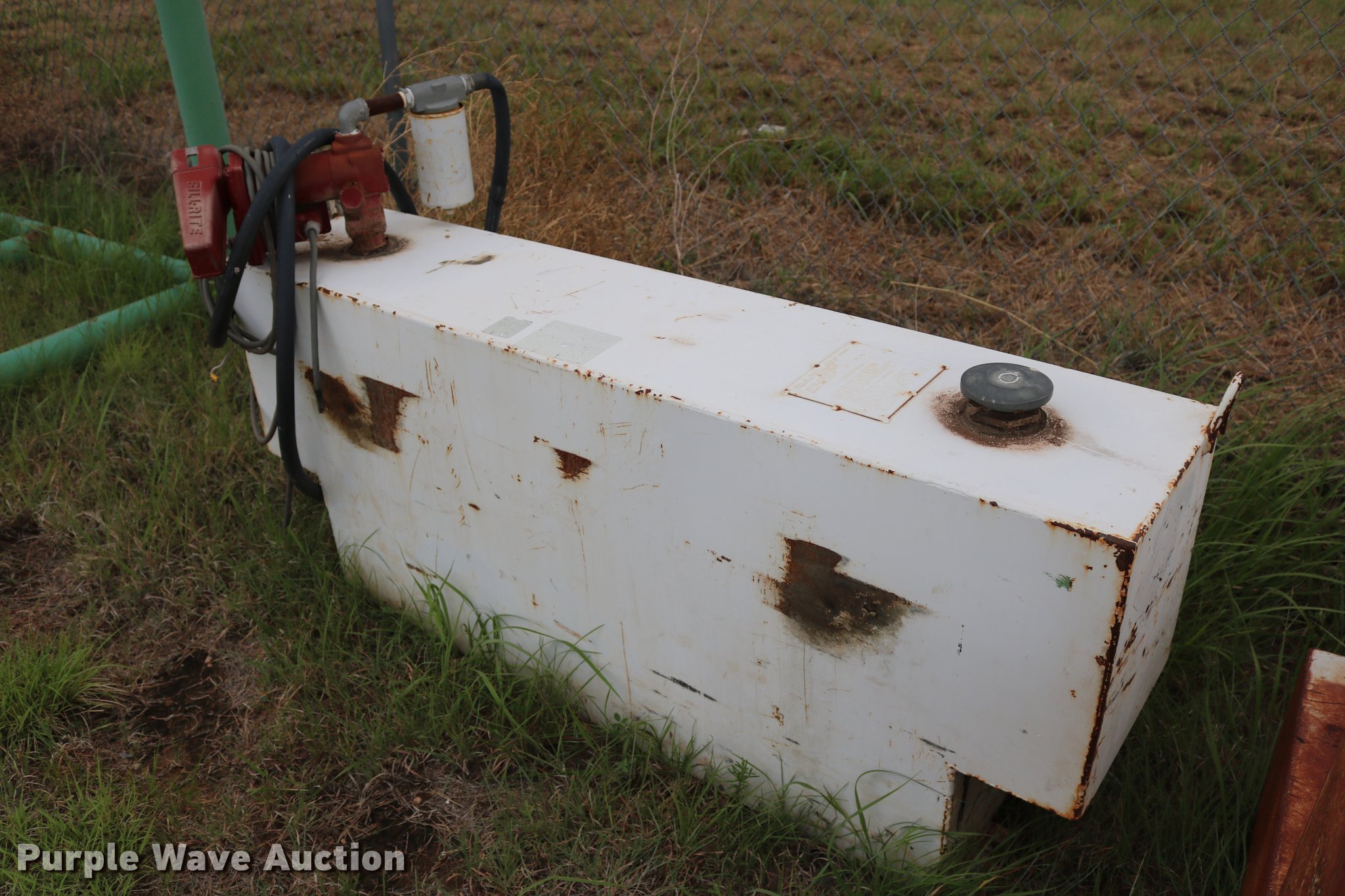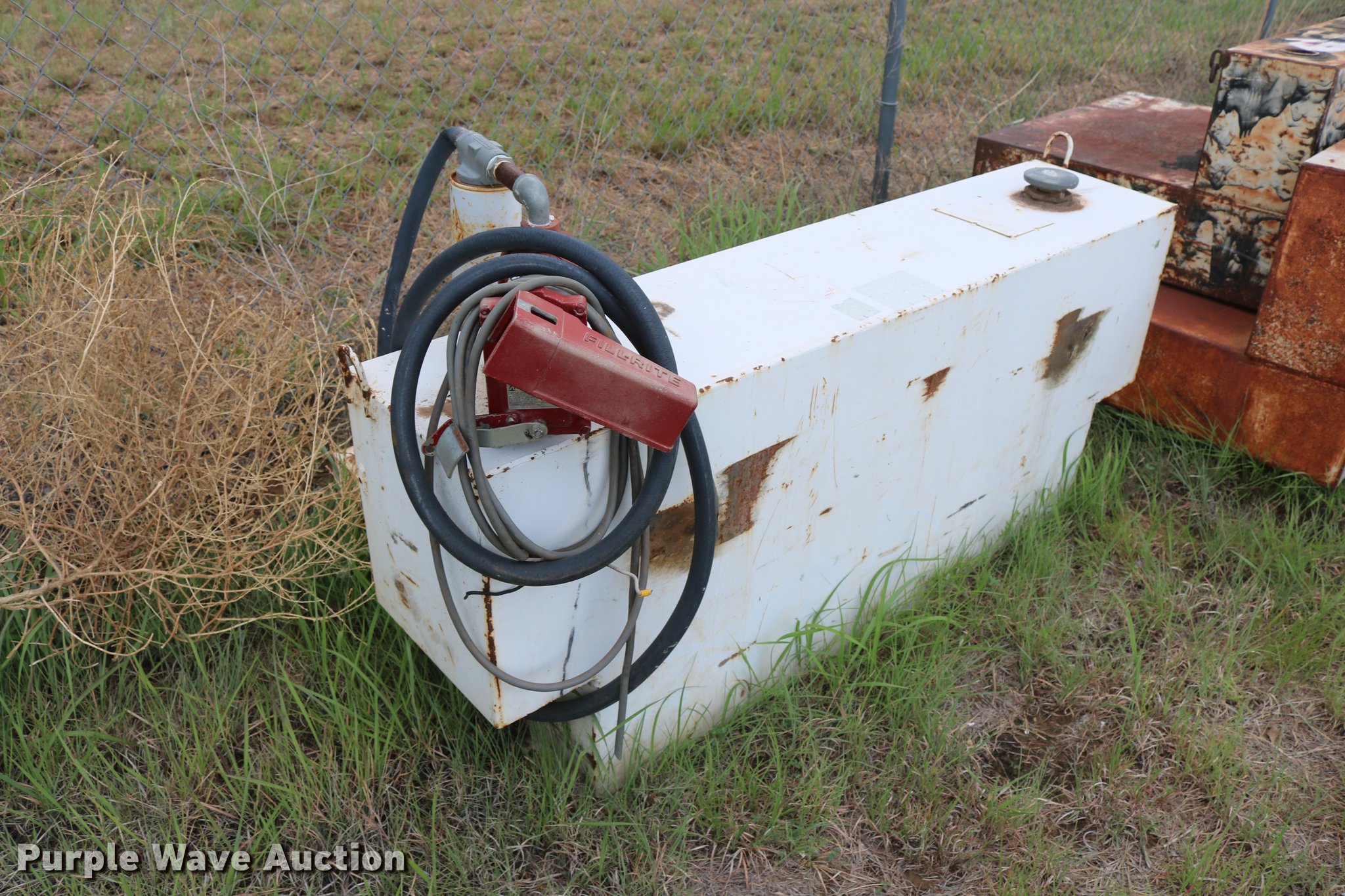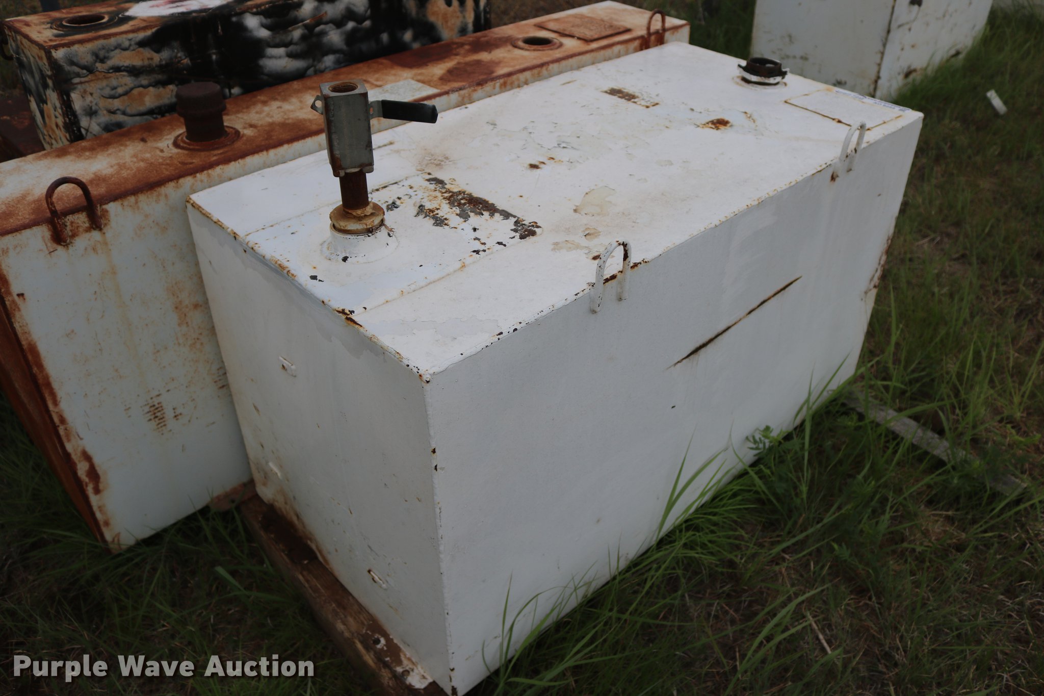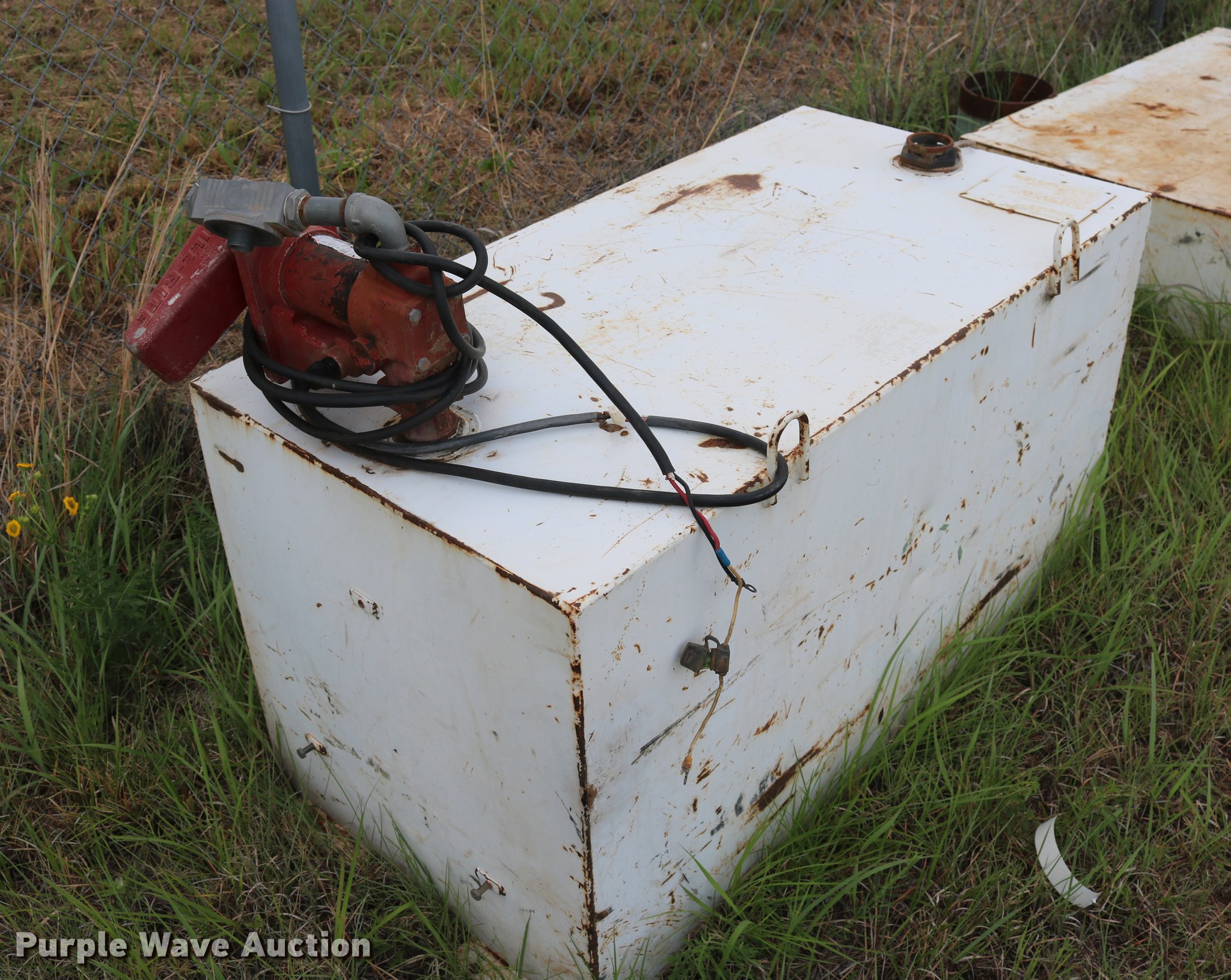 Purple Wave is selling a used Fuel and Lube in Oklahoma. This item is a (5) fuel tanks with the following: (2) 100 gallon tanks, One Fillrite 12V pump, 57 gallon fuel tank, 105 gallon fuel tank, 100 gallon fuel tank, Fill Rite 12V pump