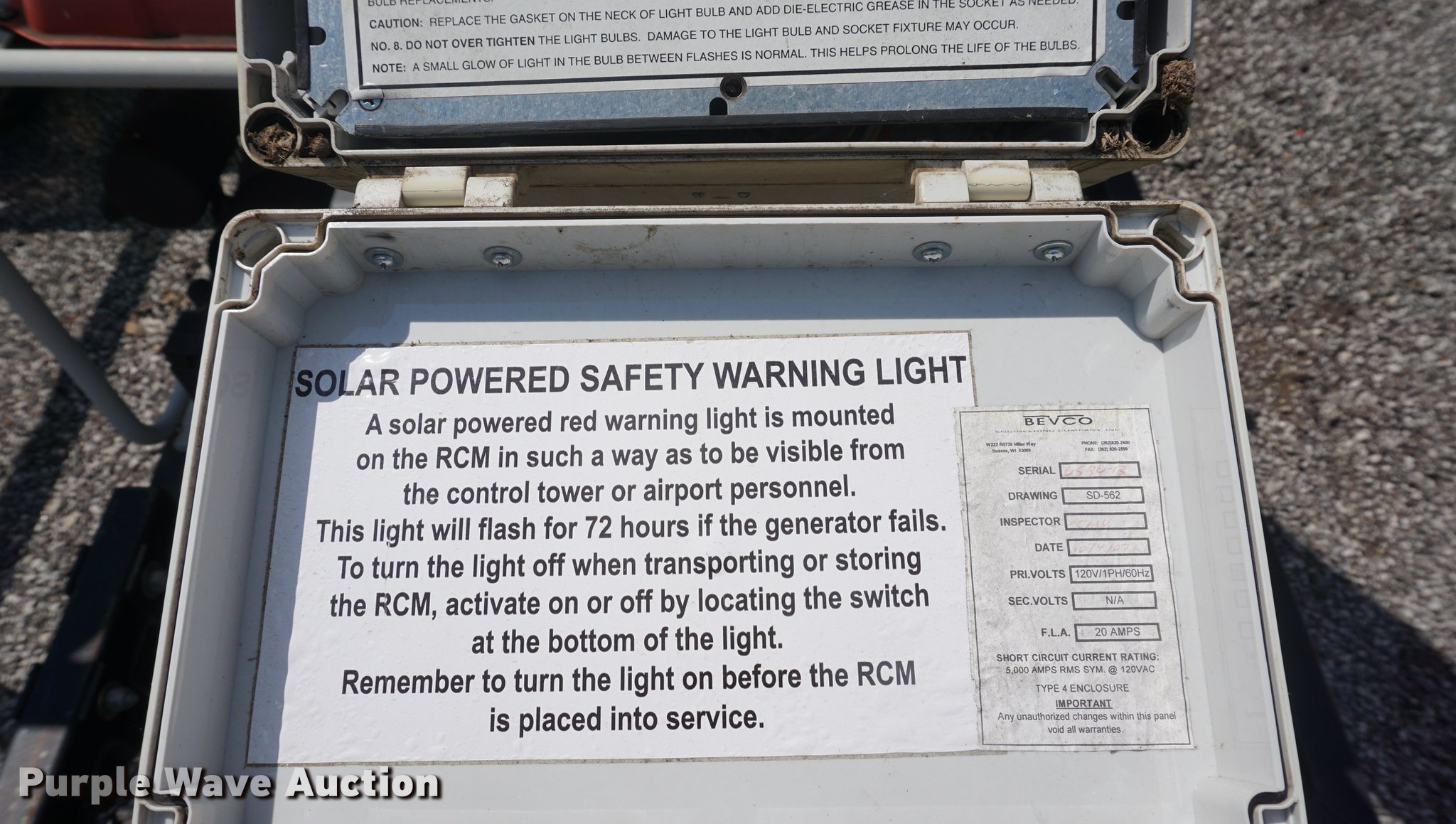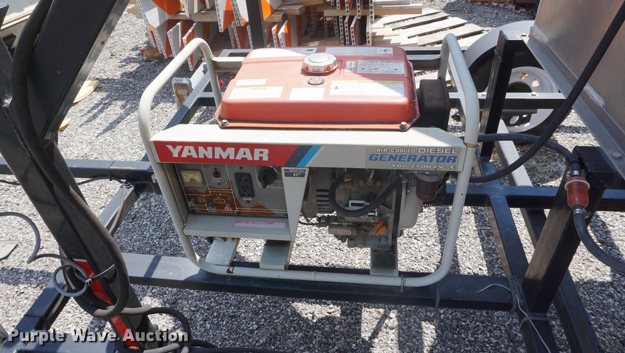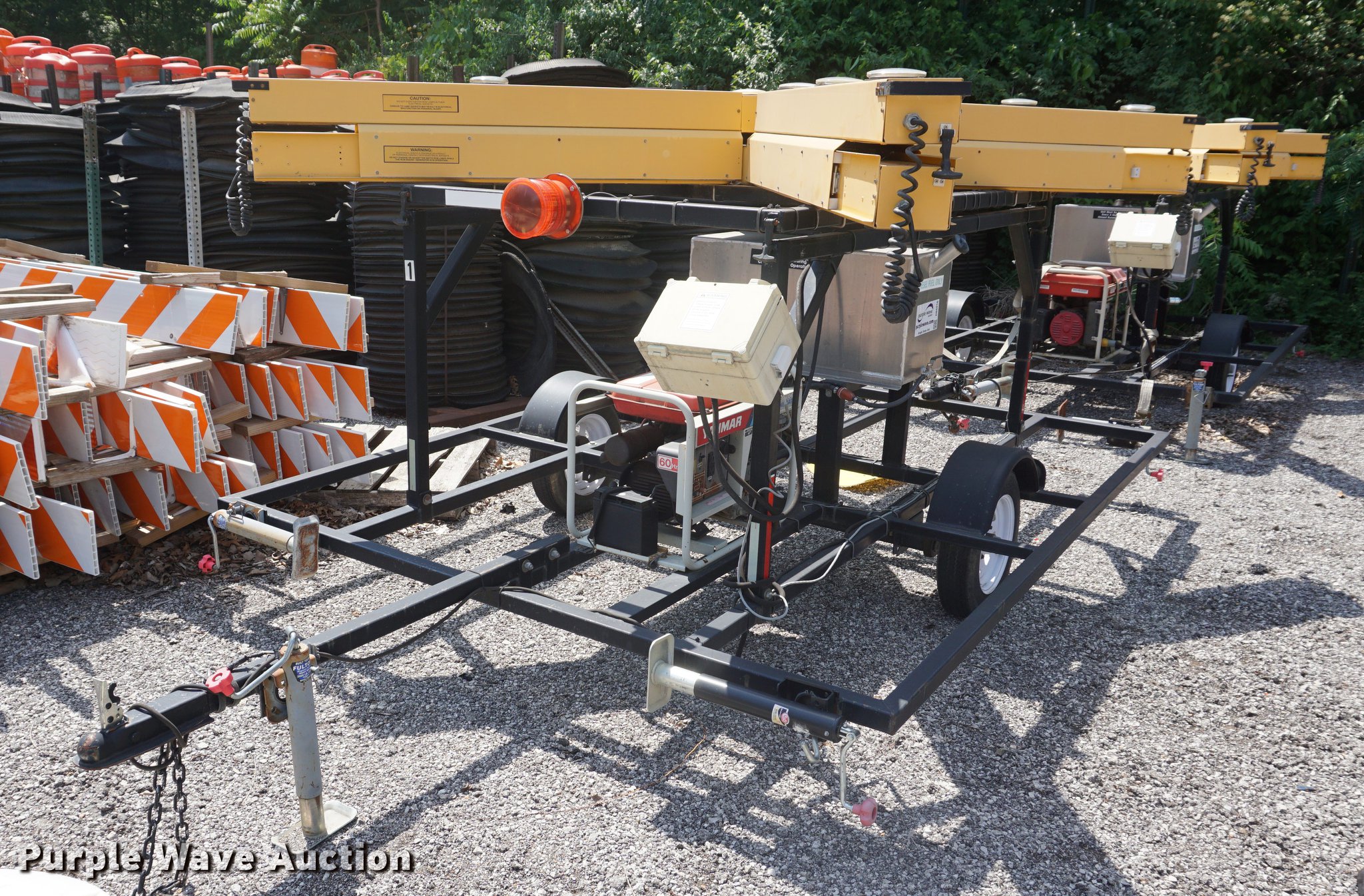 Purple Wave is selling a used Road Safety Equip. in Kansas. This item is a Sherwin runway light closure x with the following: Yanmar generator, Diesel engine, 2,700 watts, Battery dead, 2" ball hitch, 4.80-12 tires, Some lights need replaced