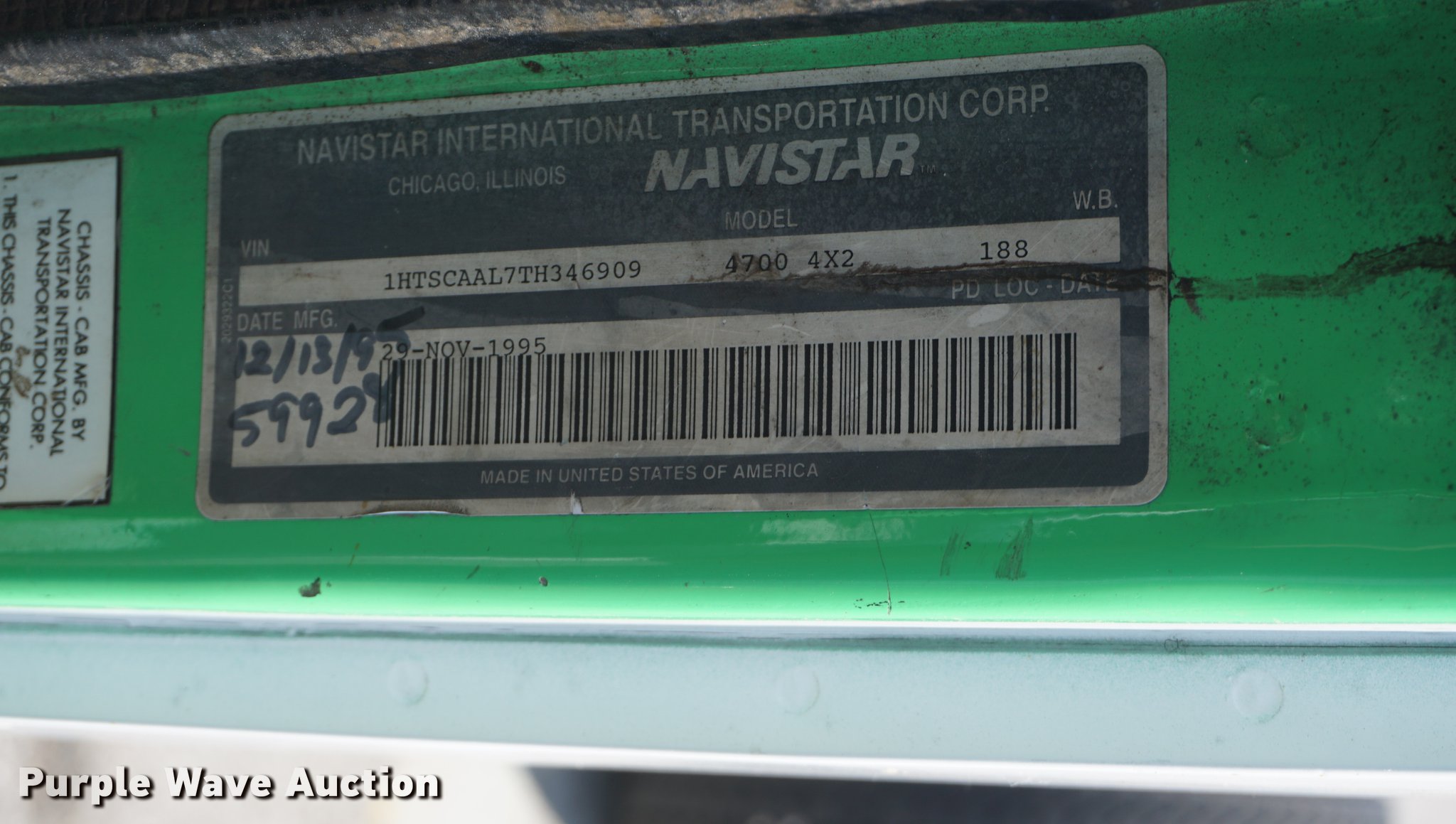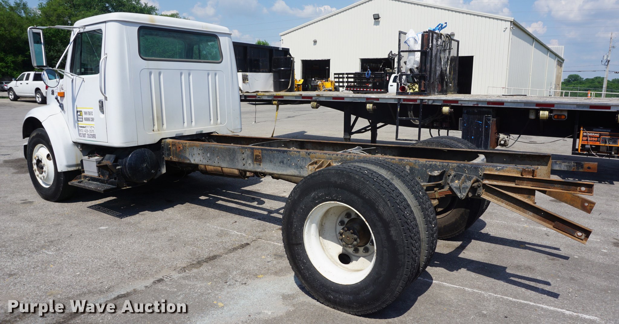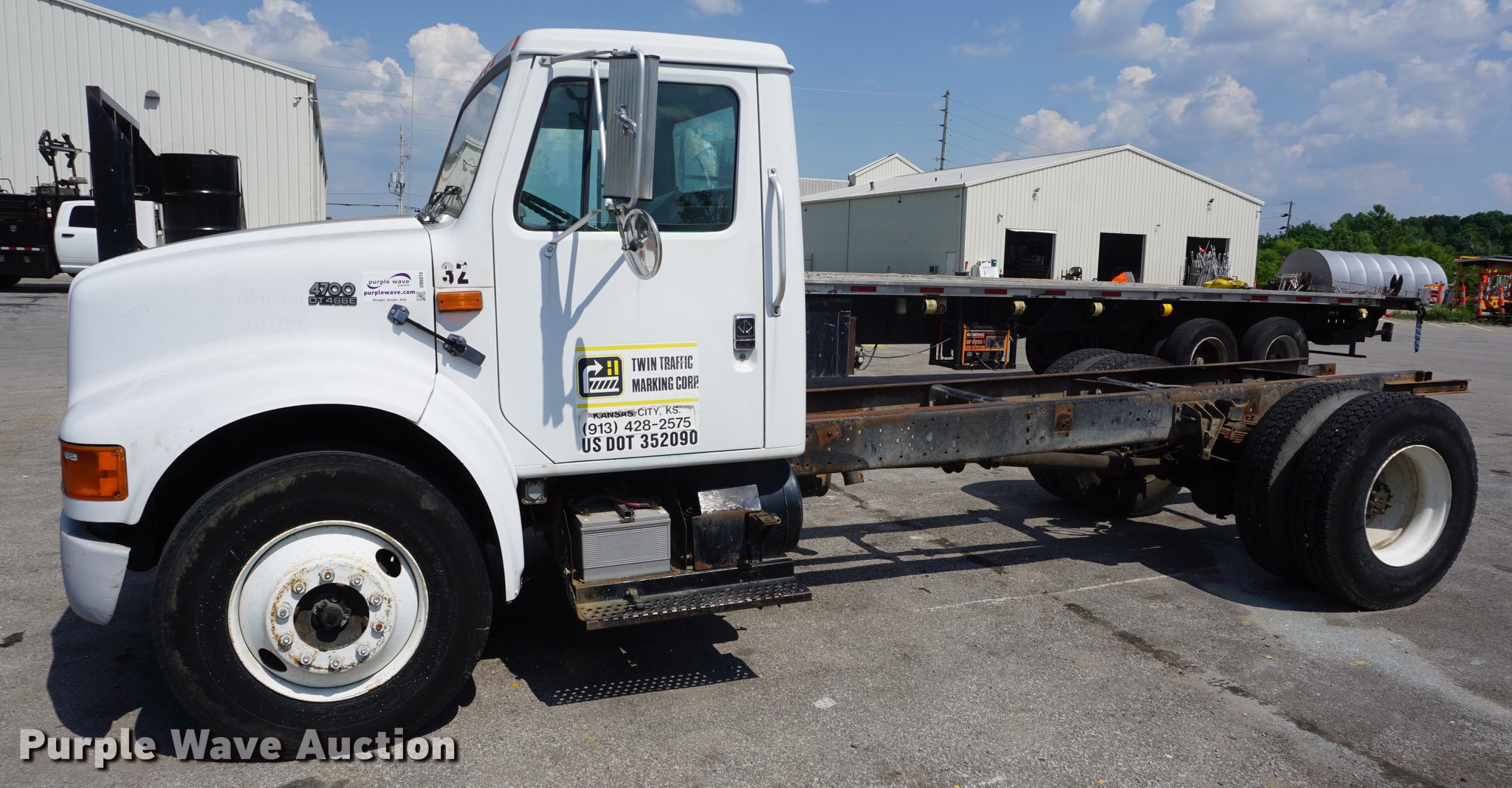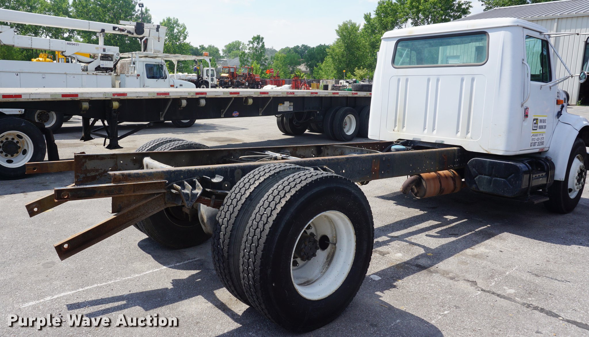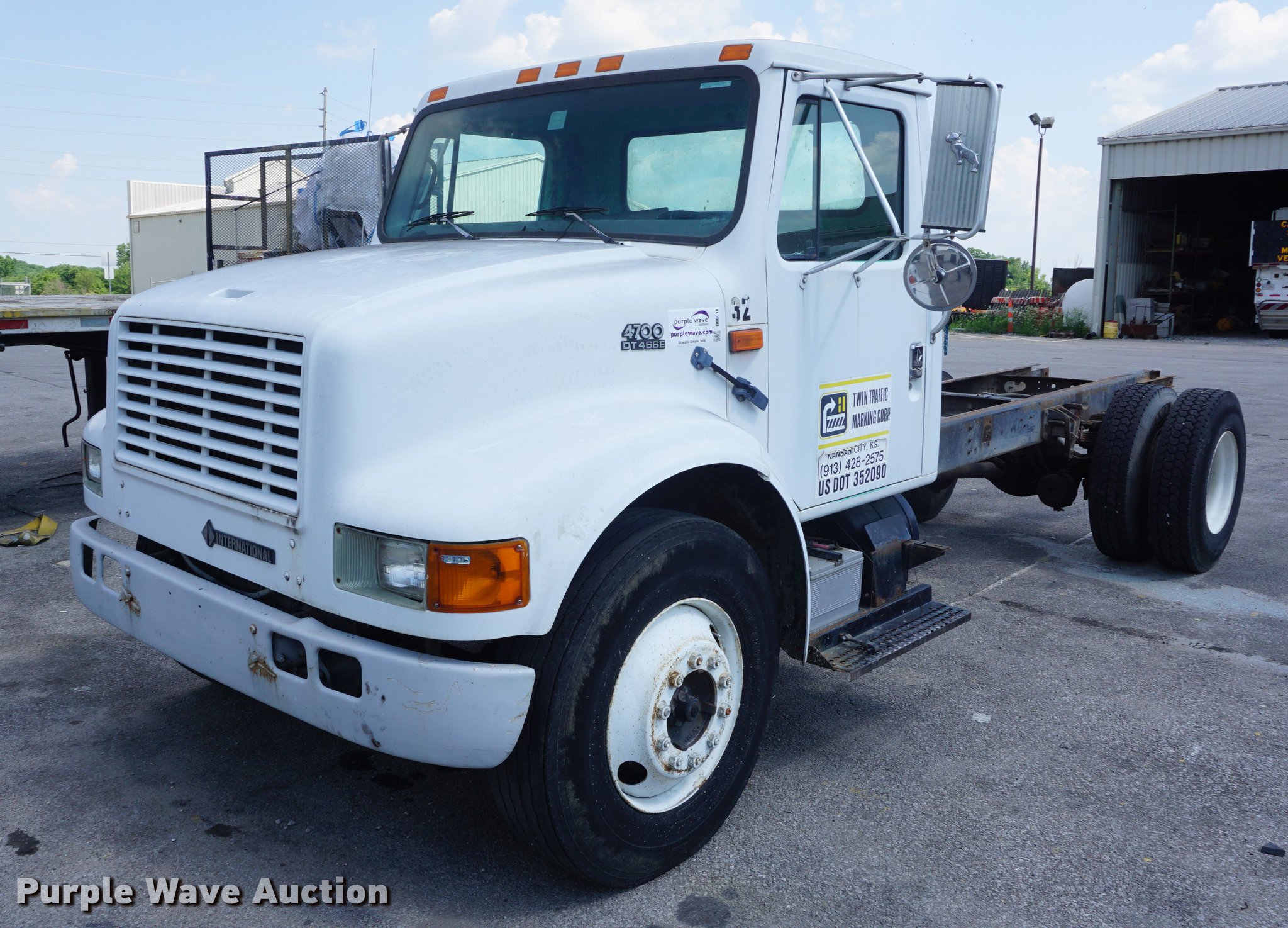 Purple Wave is selling a used Truck Chassis in Kansas. This item is a 1996 International 4700 truck cab and chassis with the following: 285,423 miles on odometer, International DT466 7.6L Lt turbo diesel engine, Automatic transmission, Single axle, AC and heat, Cruise, AM/FM, Single fuel tank, 159" from rear of cab to rear of frame, Spring suspension, Air brakes, 11R22.5 tires, Non-operational AC