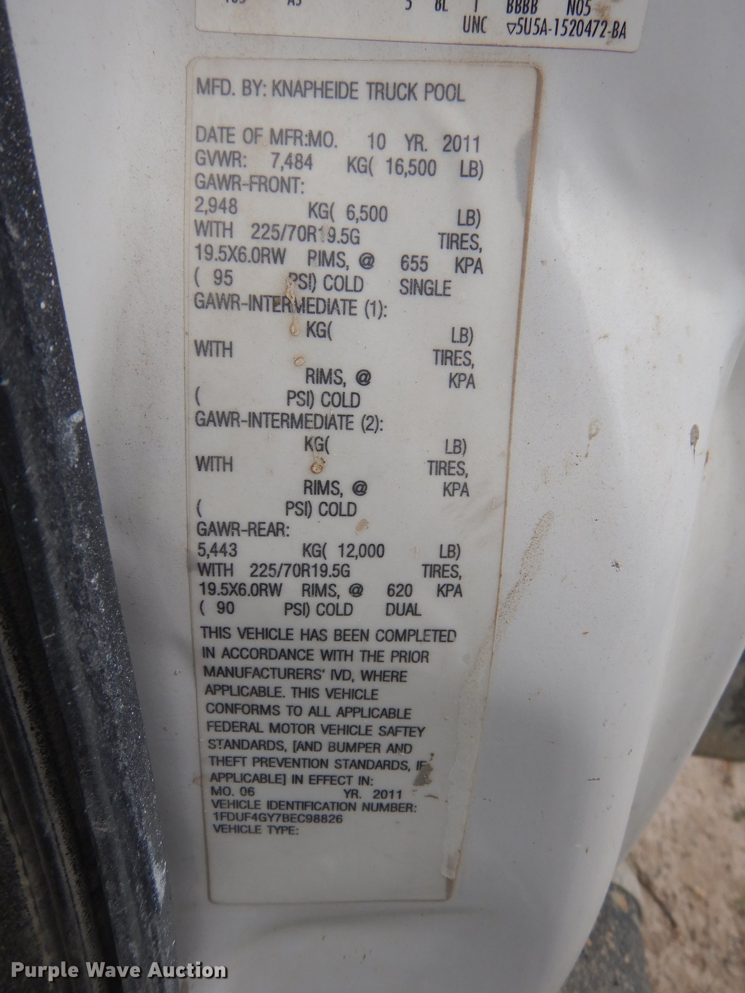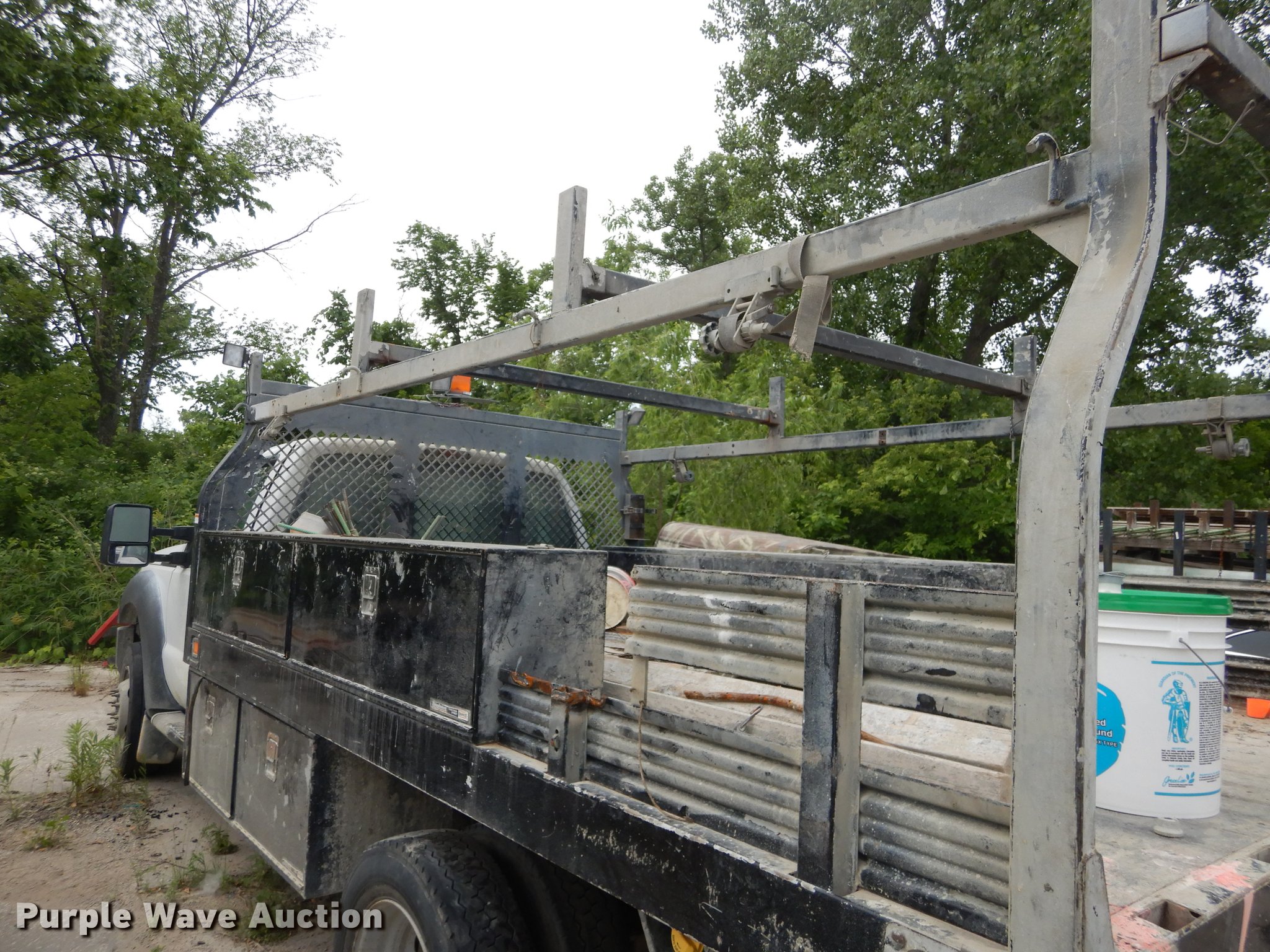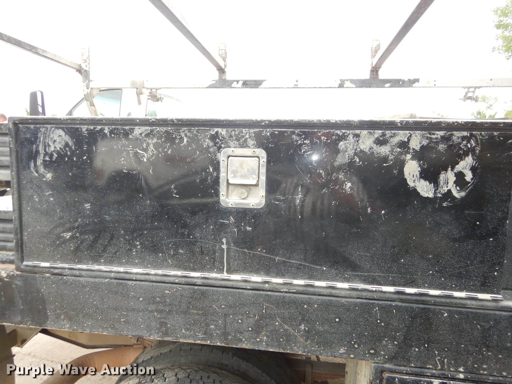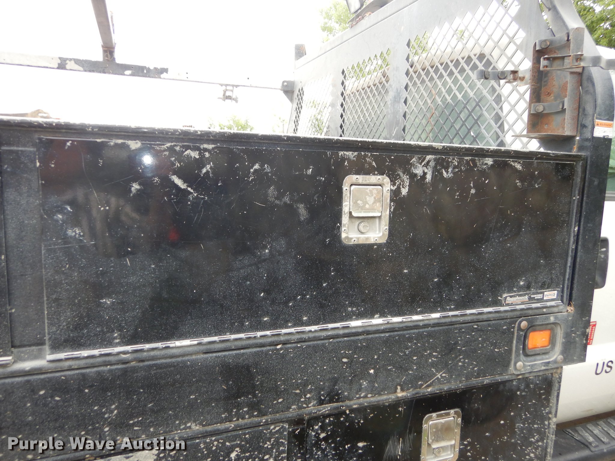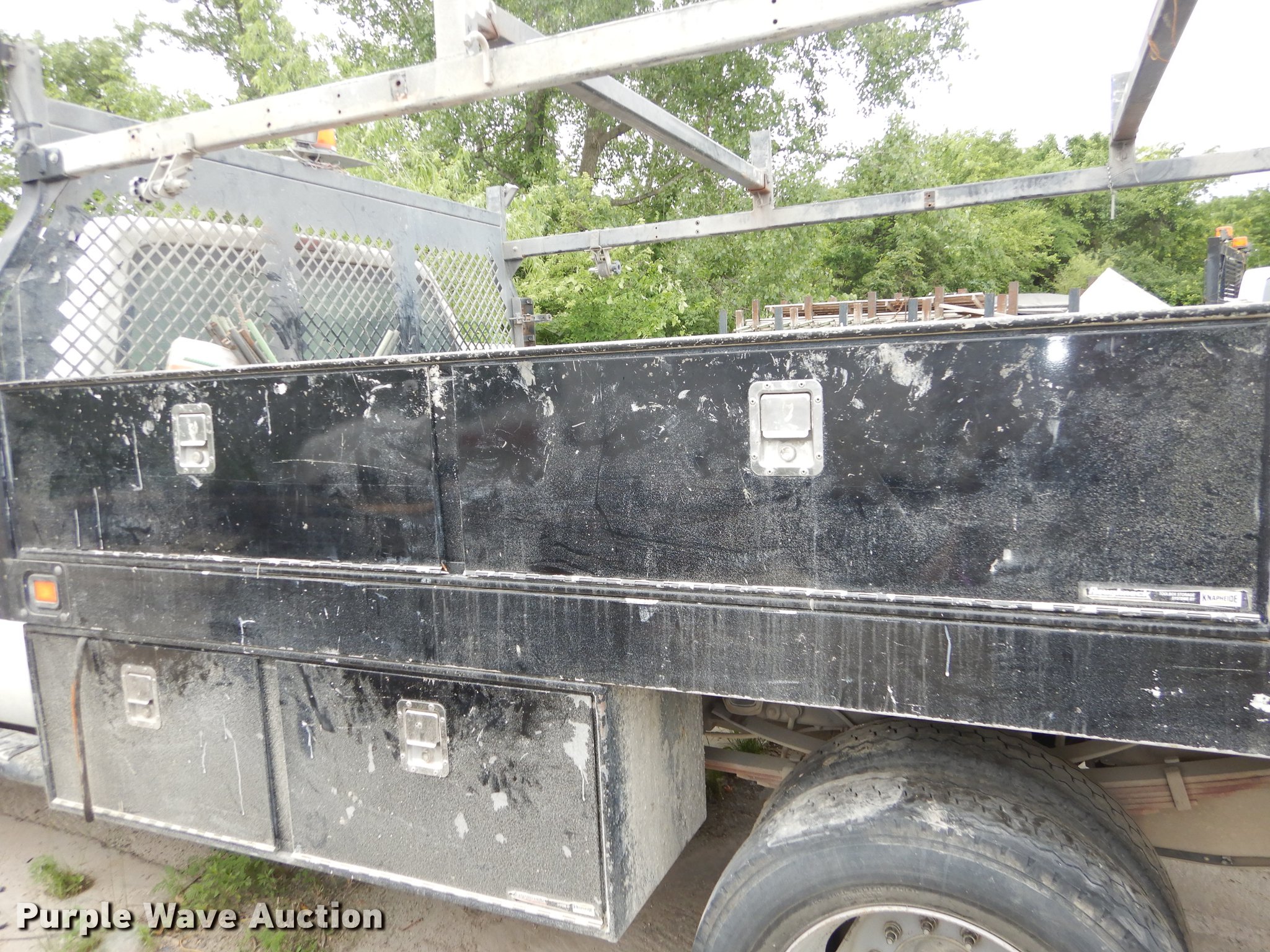 Purple Wave is selling a used Flat Bed Truck in Kansas. This item is a 2011 Ford F450 Super Duty XL flatbed truck with the following: Unknown miles on odometer, 6.8L V10 SOHC 30V gas engine, Automatic transmission, AC and heat, Tilt, Cruise, AM/FM/CD, Vinyl interior, Front tow hook, Beacon light, Work light, Knapheide flatbed, 148"L x 95"W, 16" removable sides, (4) toolboxes, Utility rack, Receiver hitch, Trailer wiring, 225/70R19.5 tires, Non-operational engine, Contents not included