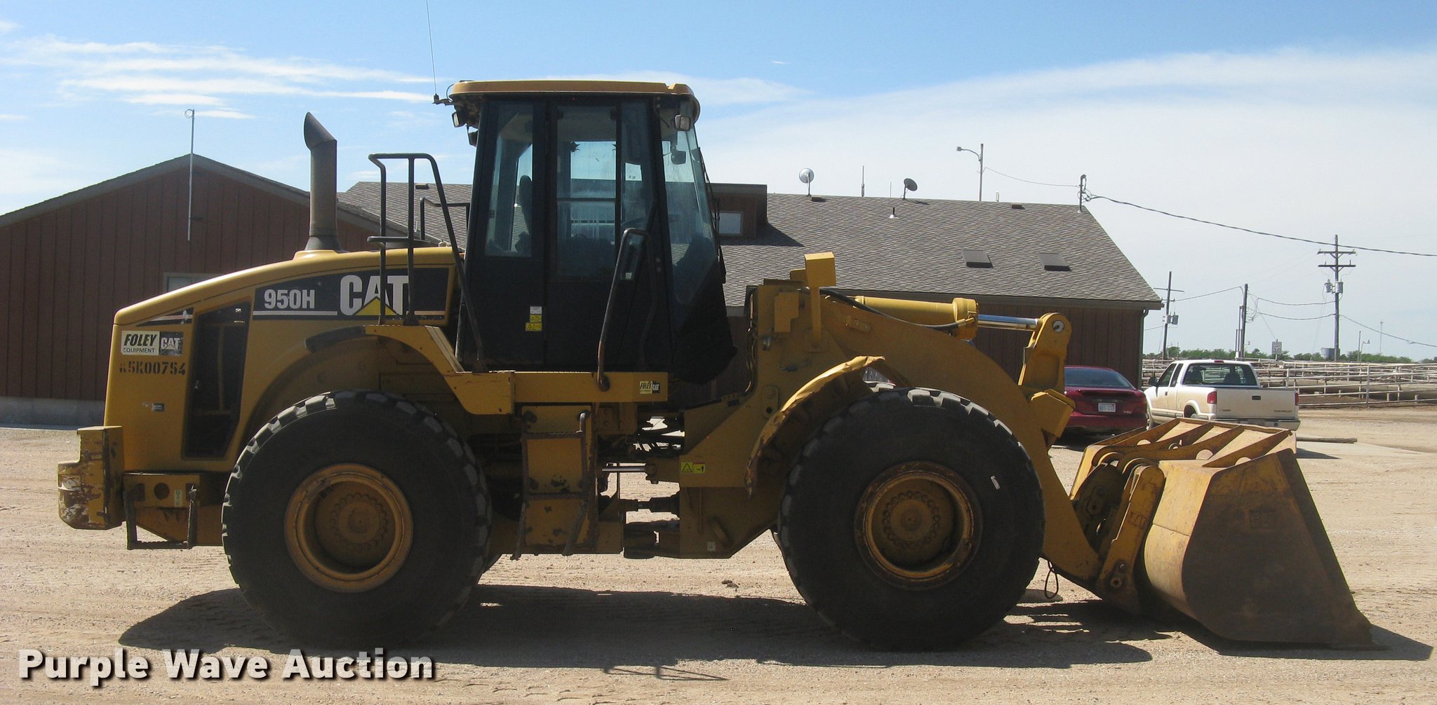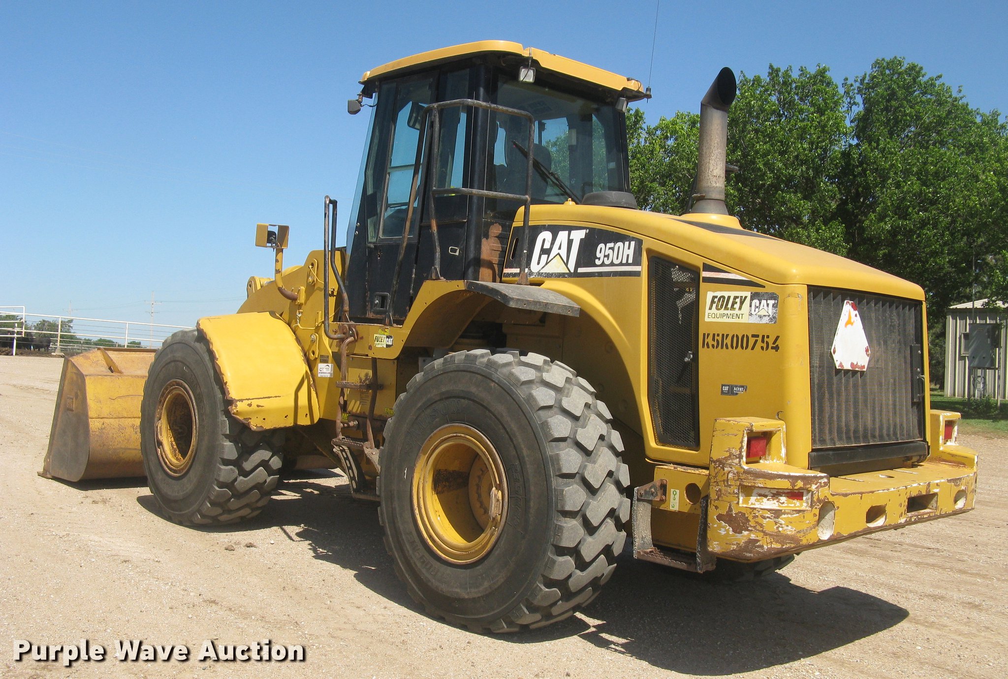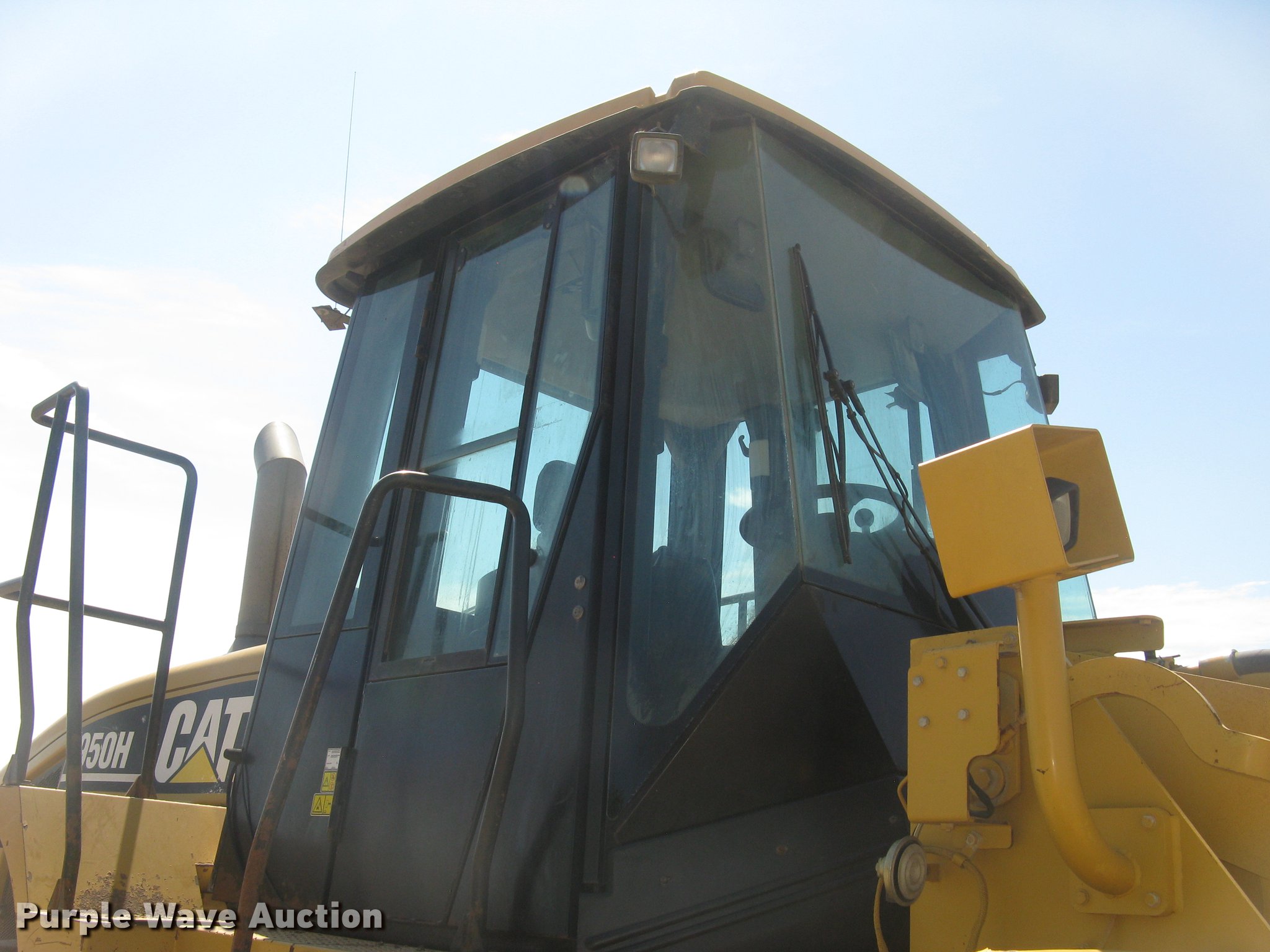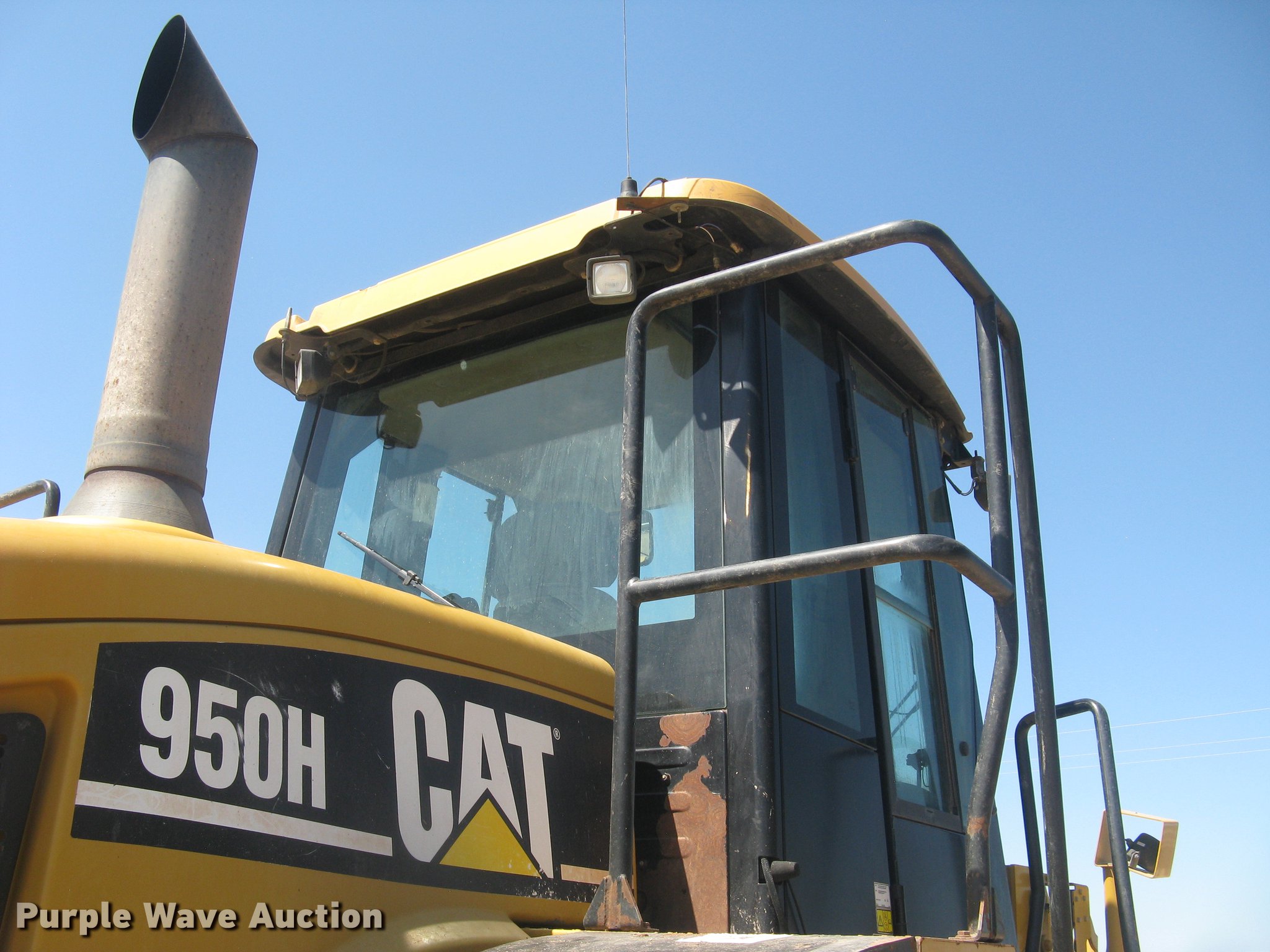 Purple Wave is selling a used Wheel Loader in Kansas. This item is a 2006 Caterpillar 950H wheel loader with the following: 14,421 hours on meter, Caterpillar six cylinder turbo diesel engine, Powershift transmission, 4F-4R gears, EROPS, AC and heat, AM/FM, Tilt steering wheel, Air suspension seat, Two-lever bucket controls, Wipers, Front and rear work lights, Backup alarm, Block heater, Caterpillar 114"W general purpose bucket, Bolt-on cutting edge, Self-leveling, Hydraulic quick coupler, Counterweights, Samson GLR09-M3 23.5R25 tires, Serial CAT0950HLK5K00754
