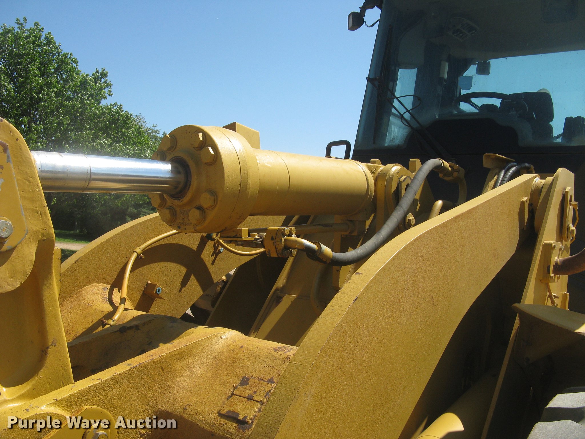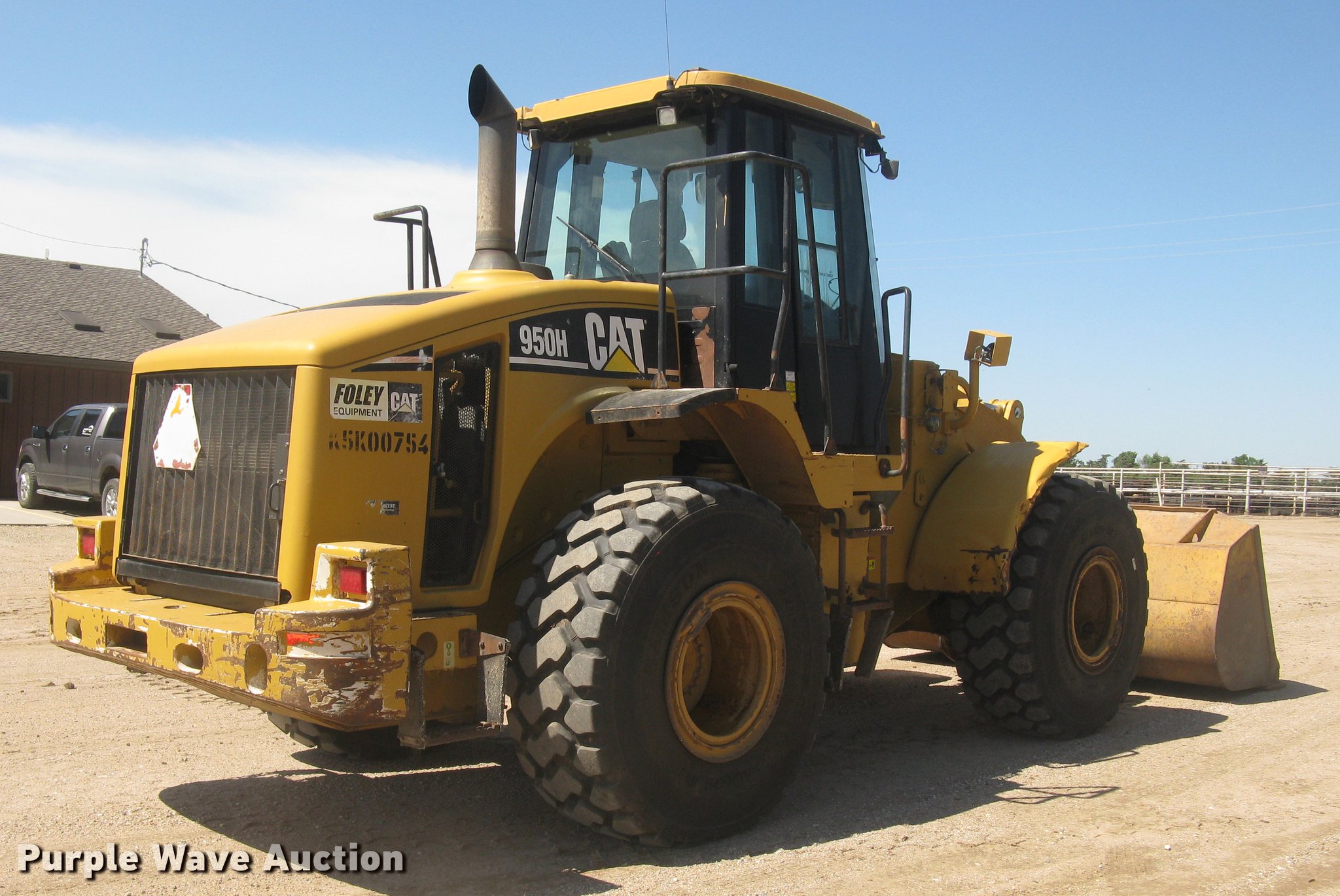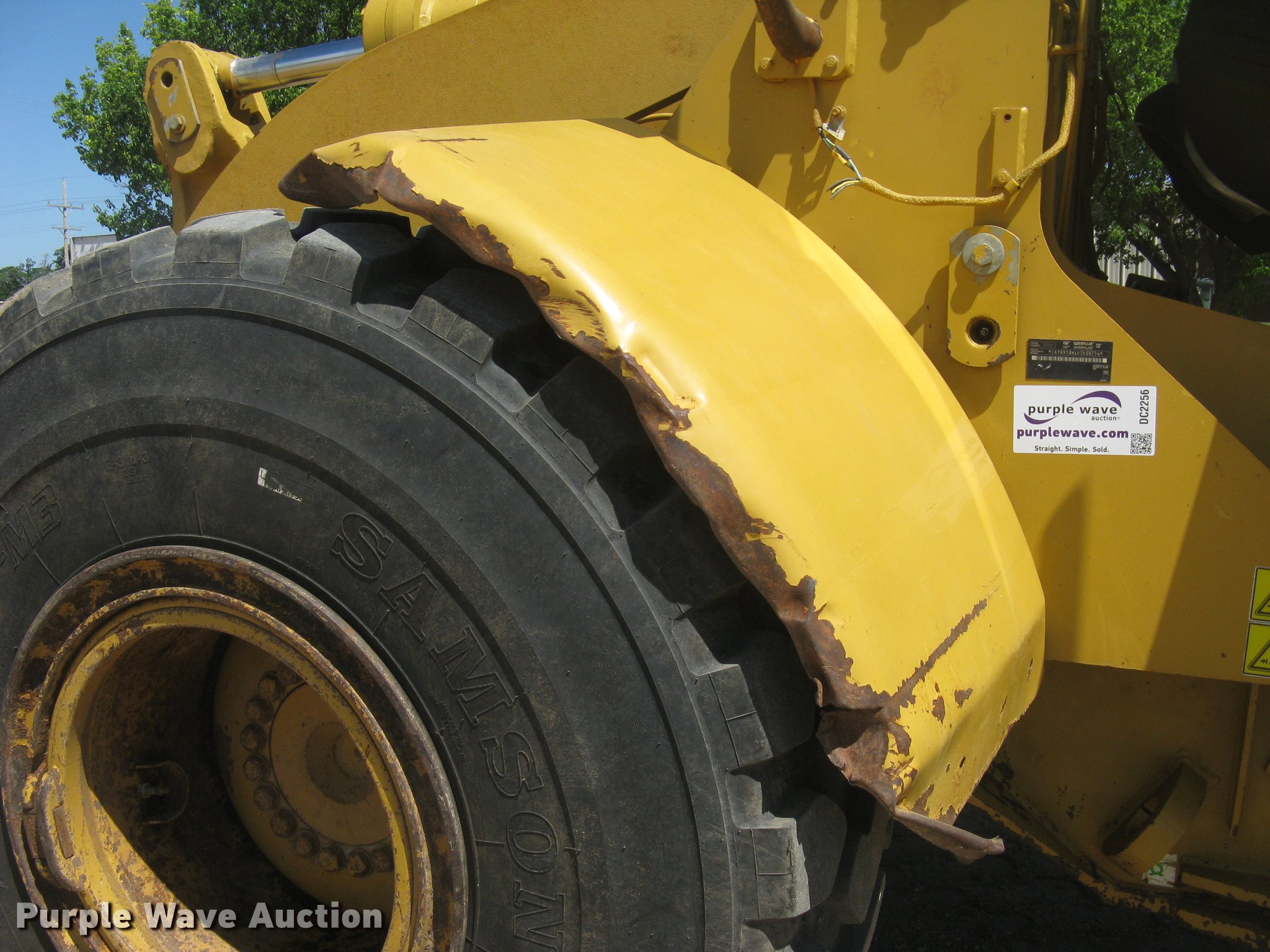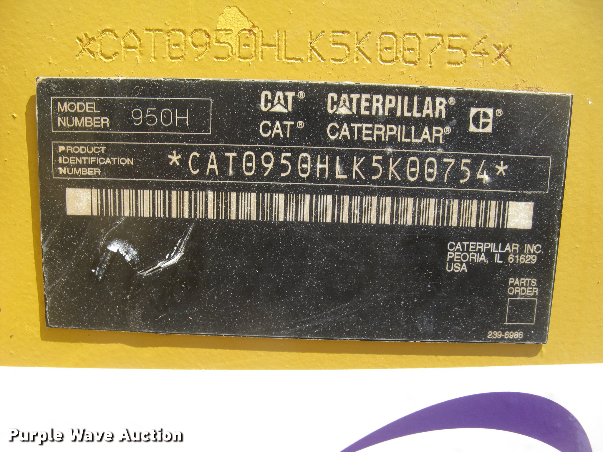 Purple Wave is selling a used Wheel Loader in Kansas. This item is a 2006 Caterpillar 950H wheel loader with the following: 14,421 hours on meter, Caterpillar six cylinder turbo diesel engine, Powershift transmission, 4F-4R gears, EROPS, AC and heat, AM/FM, Tilt steering wheel, Air suspension seat, Two-lever bucket controls, Wipers, Front and rear work lights, Backup alarm, Block heater, Caterpillar 114"W general purpose bucket, Bolt-on cutting edge, Self-leveling, Hydraulic quick coupler, Counterweights, Samson GLR09-M3 23.5R25 tires, Serial CAT0950HLK5K00754