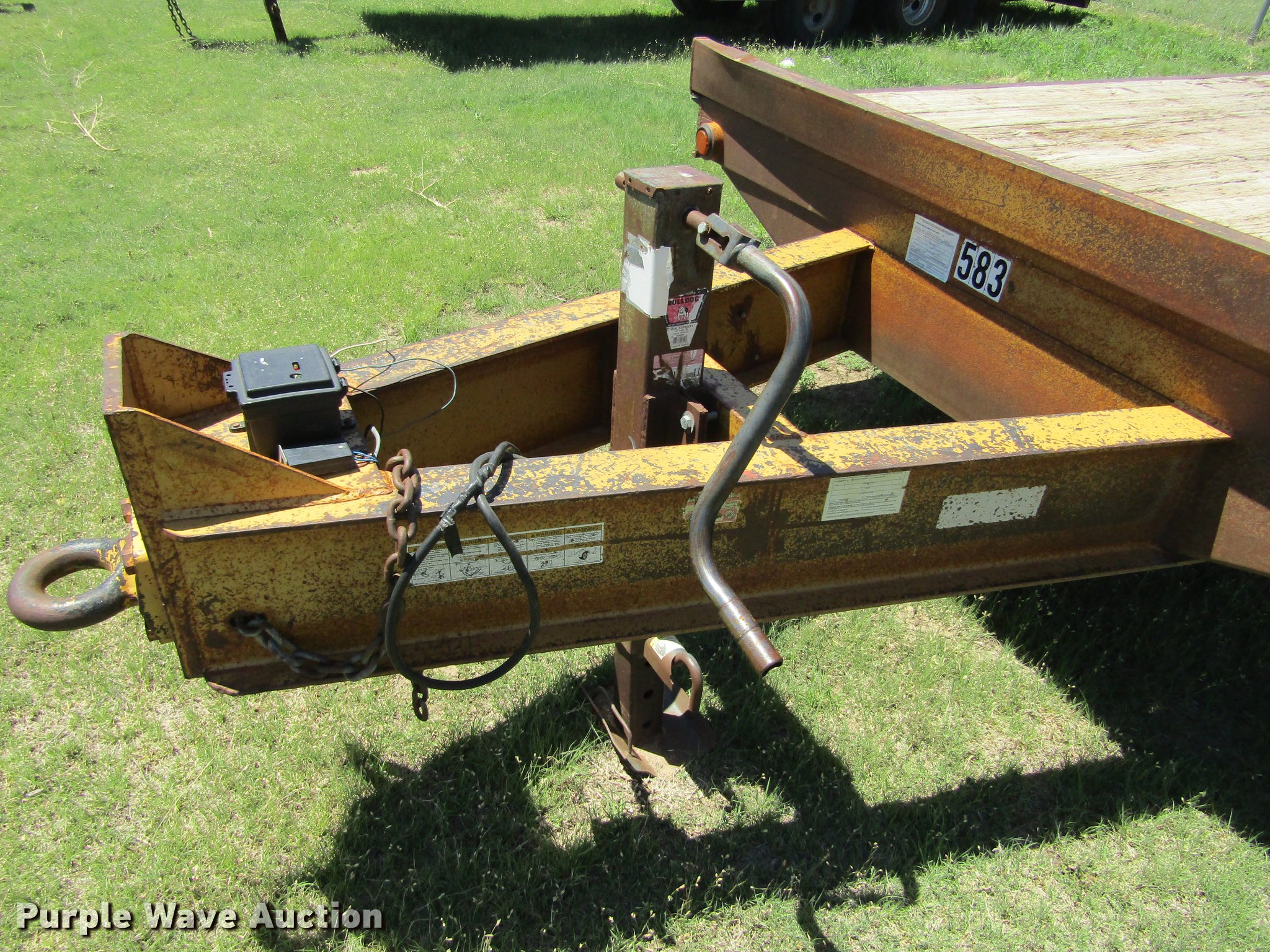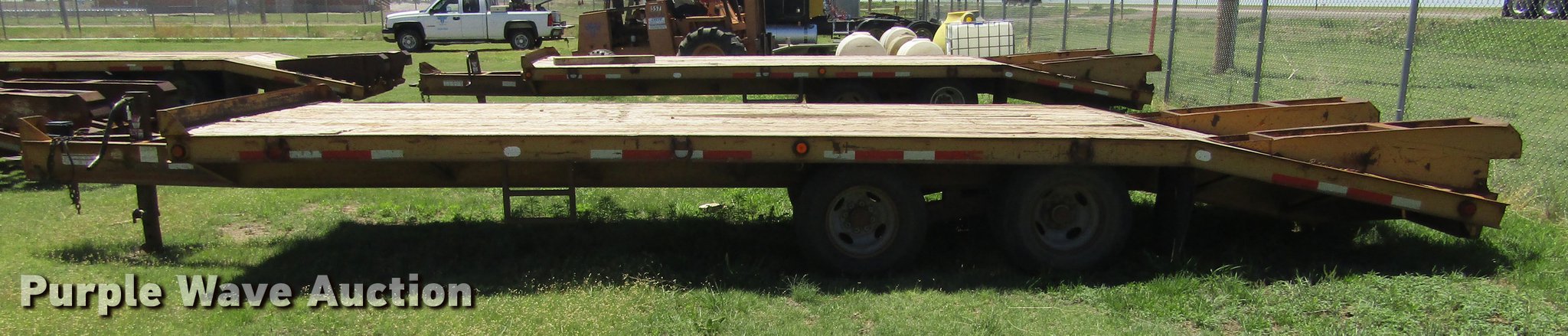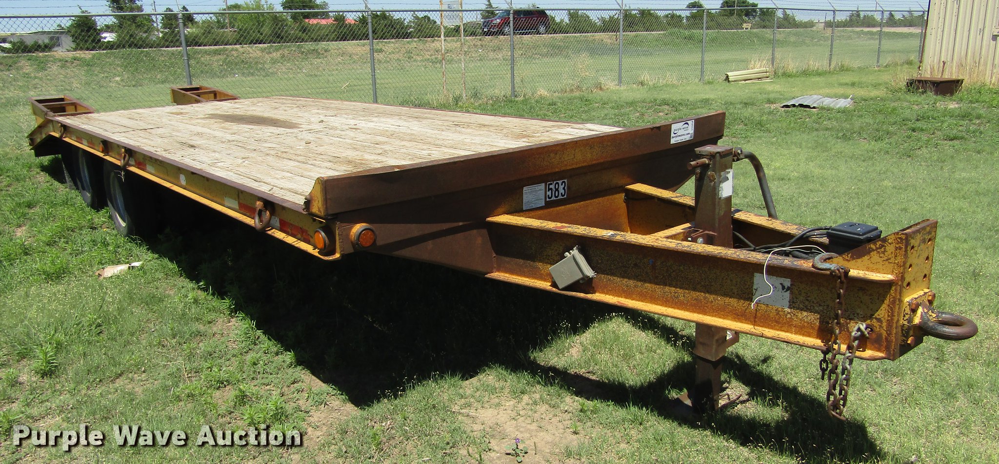 Purple Wave is selling a used Equip. Trailer in Kansas. This item is a 2006 Belshe equipment trailer with the following: 30' overall length, 19'L x 94"W wood deck, 6'L beavertail, 5'L ramps, D-ring tie downs, Pintle hitch, Single leg landing gear, Spring suspension, Electric brakes, Tandem axle, Steel wheels, 7.50R16 tires, ST235/85R16 tires, Unit# 583
