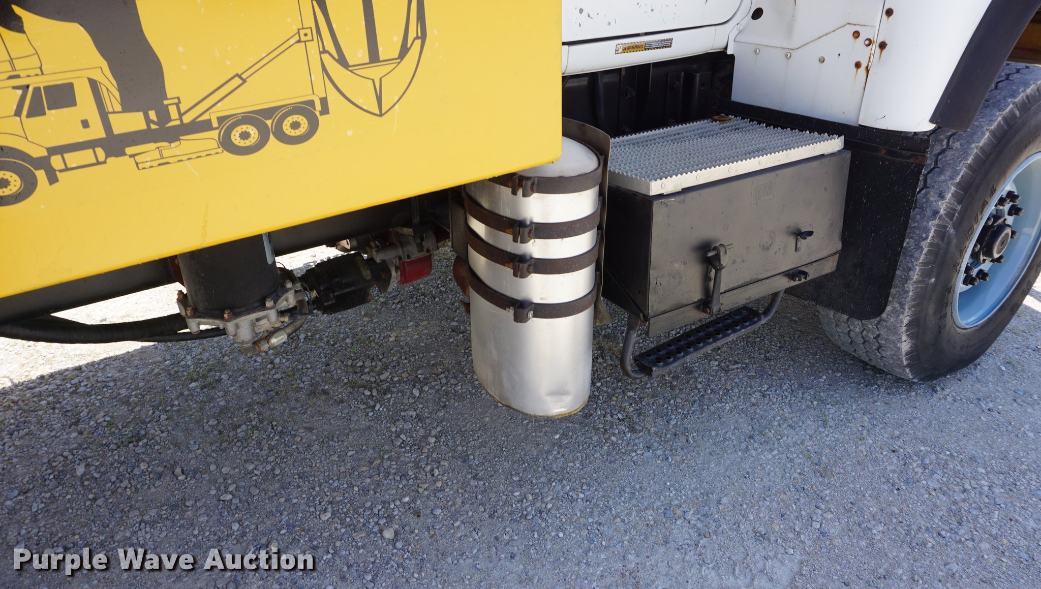1998 Mack DM690S truck with Big John tree spade. 127,939 miles on odometer, 8,626 hours on meter, Mack EM7 12.0L L6 turbo diesel engine 300 HP, Maxitorque seven speed manual transmission, Tandem axle, Inter-axle differential lock, AC and heat, AM/FM, Air suspension seat, PTO, Big John 90B tree spade 90"W x 60"D root ball capacity, 10" to 12" tree trunk diameter, Serial 412, 400 gallon water tank, Camelback suspension, Air brakes, 385/65R22.5 front tires, 11R22.5 rear tires. Kansas title. 1M2B209C3WM022345. Spring Hill, KS 66083