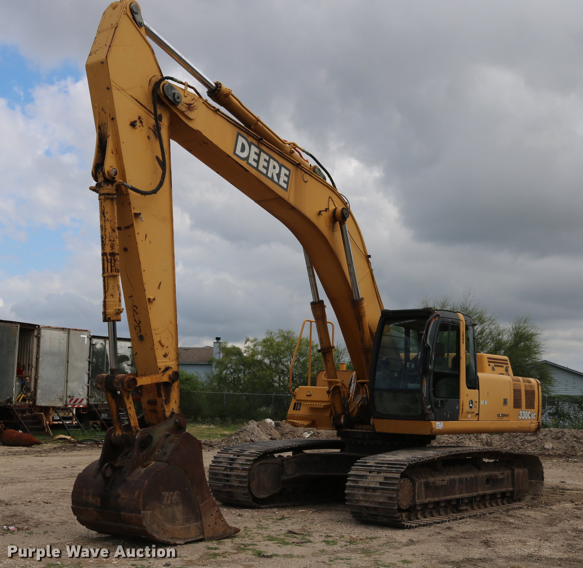 Purple Wave is selling a used Hydraulic Excavator in Texas. This item is a 2006 John Deere 330C LC excavator with the following: 6,076 hours on meter, John Deere 6081H 8.4L six cylinder1 turbo diesel engine, 246 HP, Serial SE6081H3900500, Hydrostatic transmission, Straight travel, EROPS, AC and heat, AM/FM, Air suspension seat, Front work lights, Travel alarm, Standard boom, 13' stick length, 47"W bucket, (5) bolt-on teeth, 32"W steel triple grouser track pads, Serial FF3206X804722, Unit# 927058