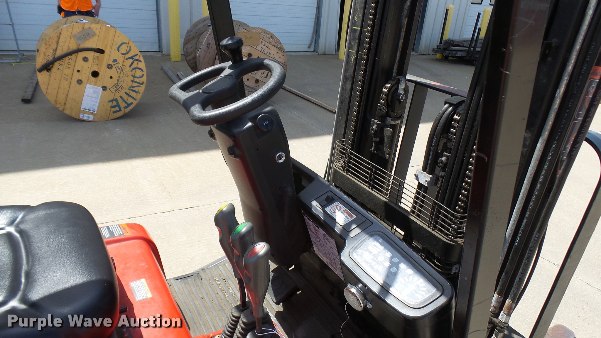 Purple Wave is selling a used Warehouse Forklift in Missouri. This item is a Raymond 440-C35 forklift with the following: 2,711 hours on meter, 48V operation, 1F-1R gears, OROPS, Work lights, Backup alarm, 3,500 lbs maximum lift capacity, 180" maximum lift height, 42" fork length, Side shift, Mast tilt, Charger, 18 x 7 x 12 solid front tires, 16 x 6 x 10.5 solid rear tires, Serial 440-07-10261, Unit# 10