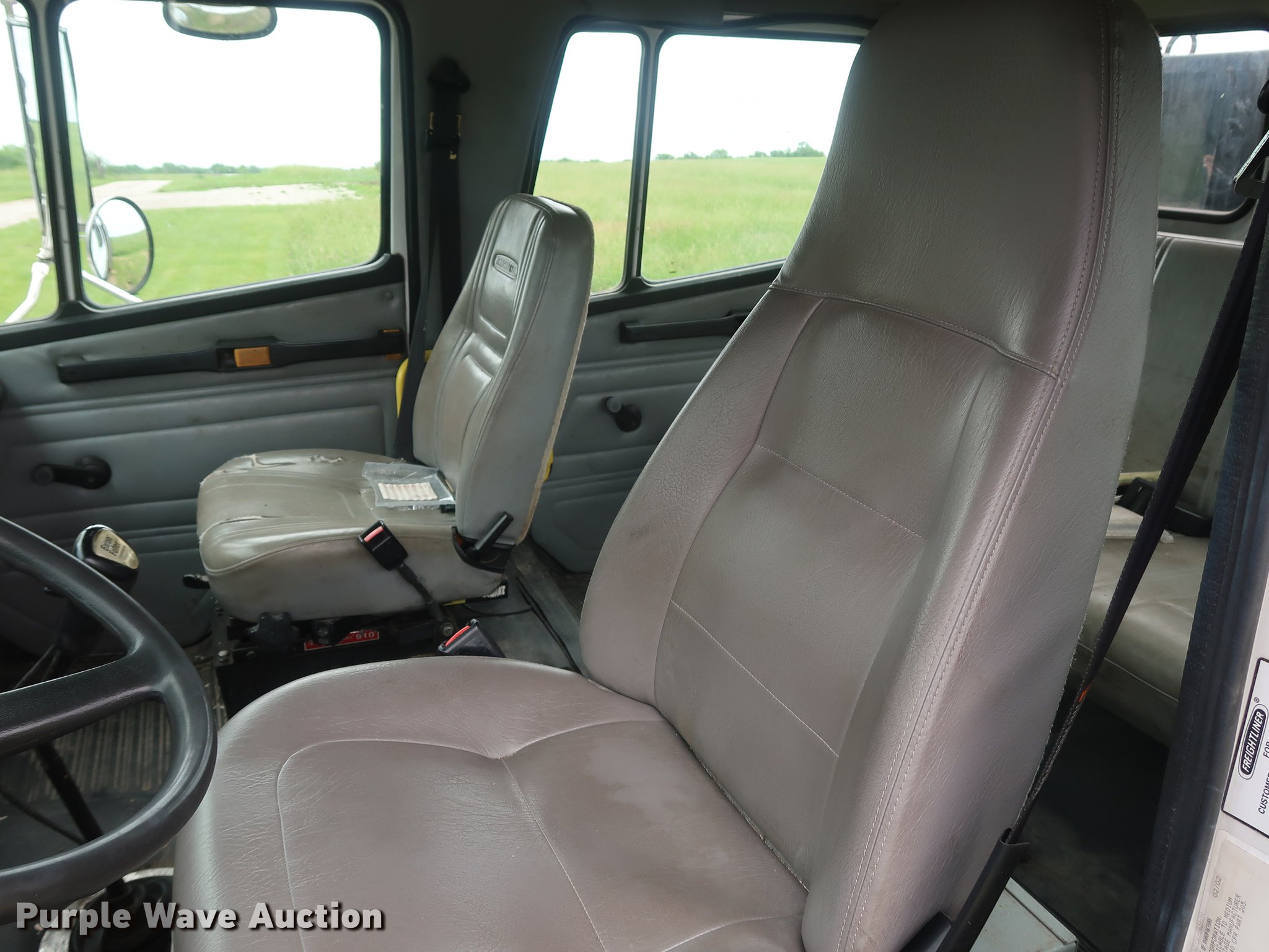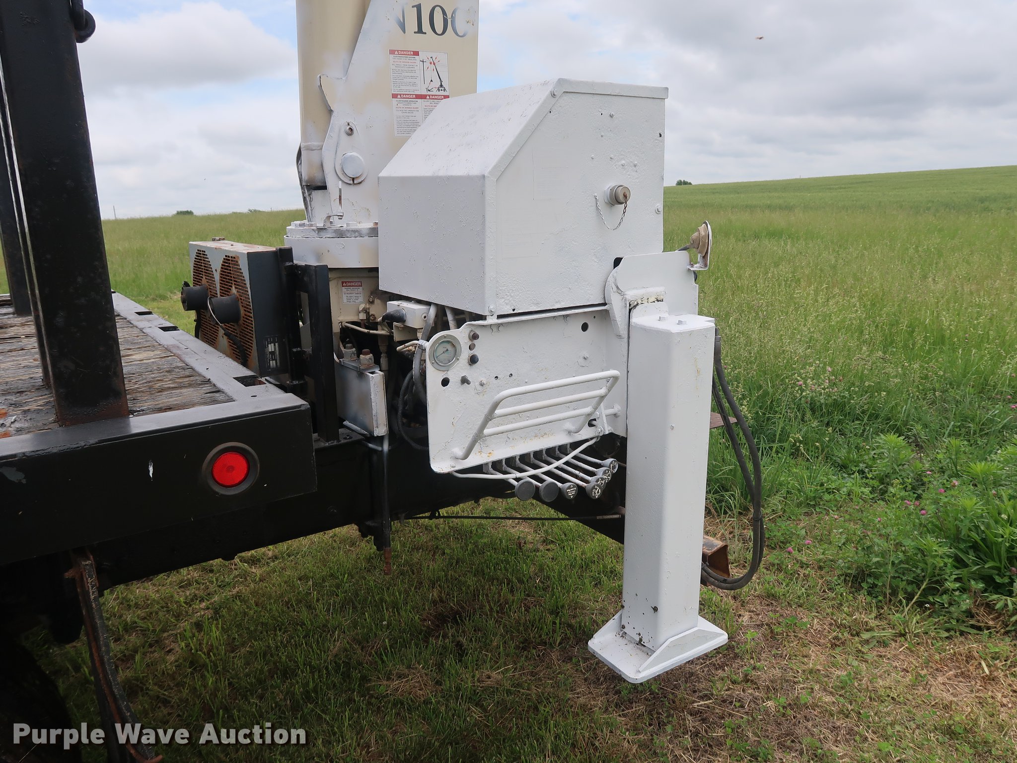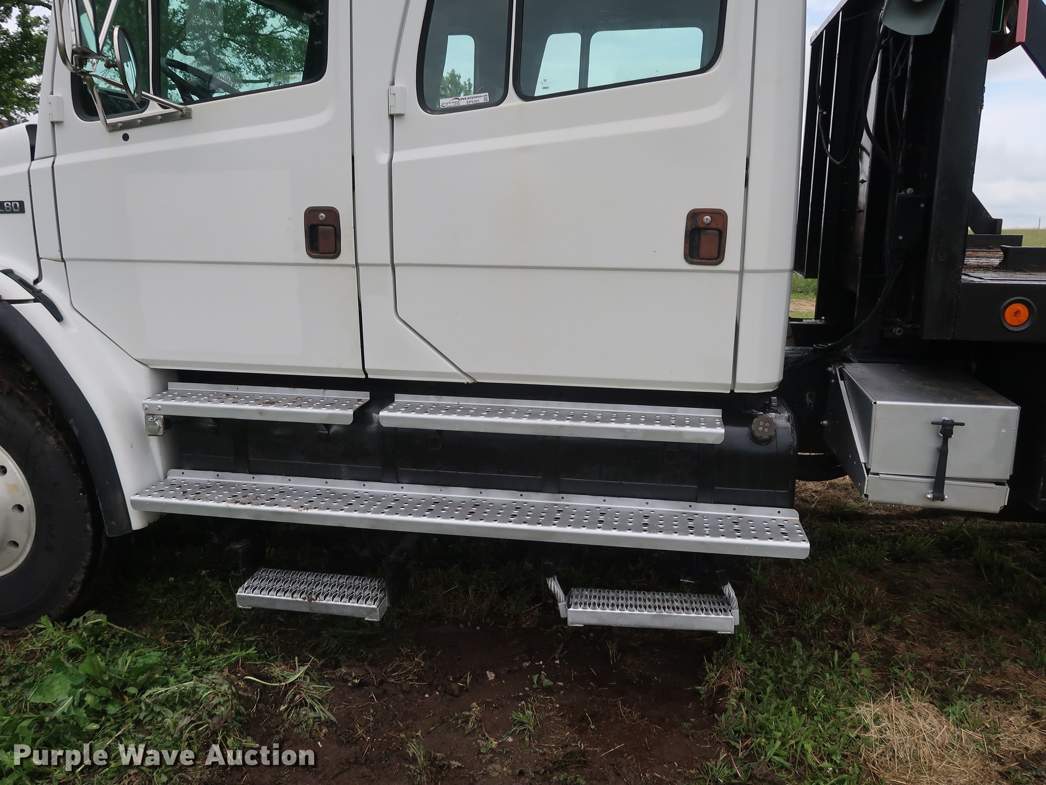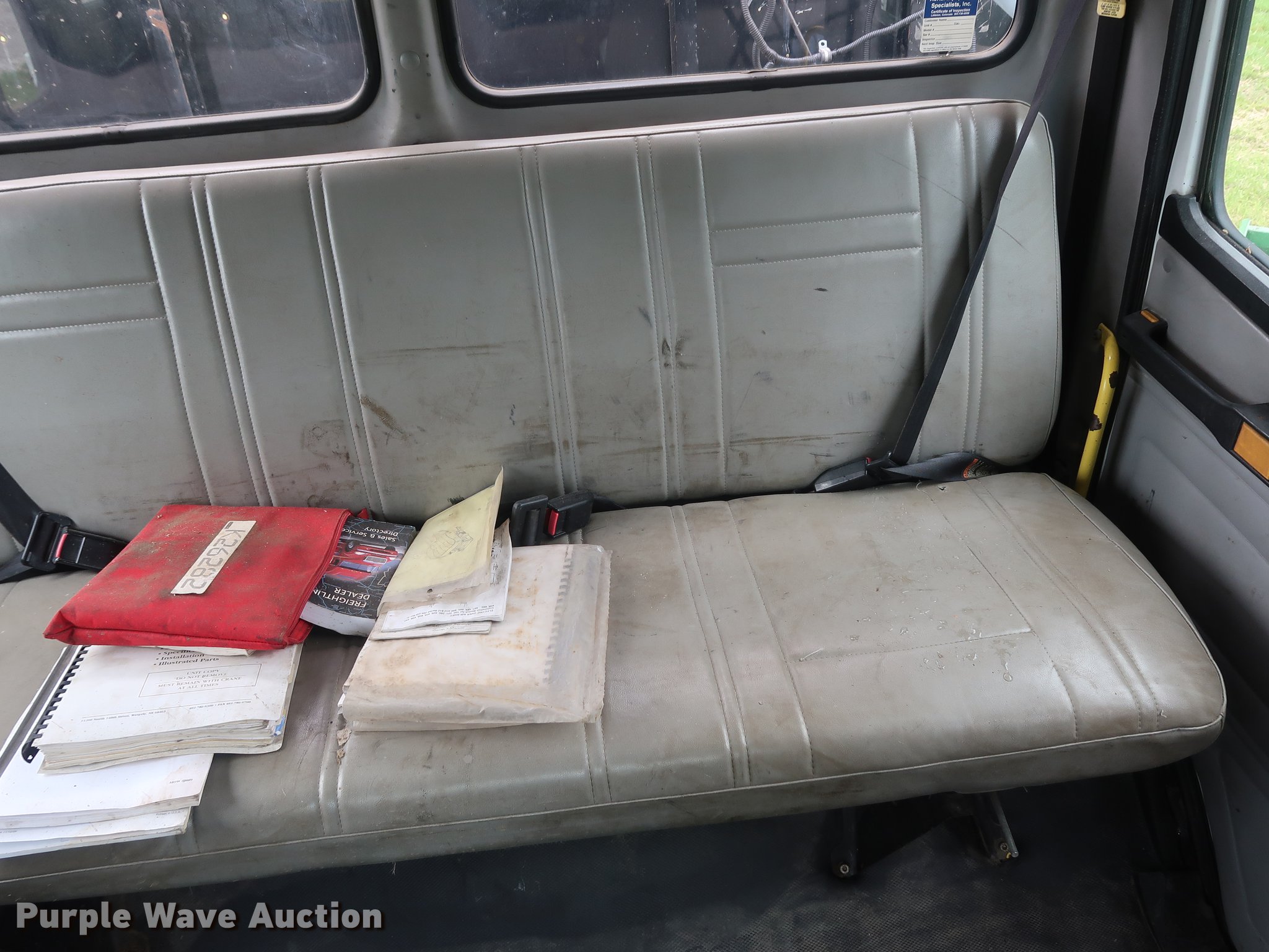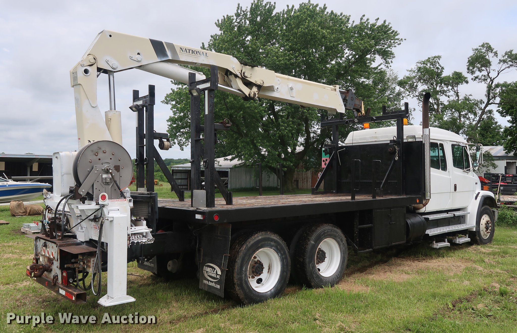 Purple Wave is selling a used Crane Truck in Missouri. This item is a 2002 Freightliner FL80 Crew Cab crane truck with the following: 177,142 miles on odometer, Caterpillar 3126 7.2L L6 turbo diesel engine, Serial CKM40050, Eaton Fuller 10 speed manual transmission, Tandem axle, Heat, Cruise, AM/FM, PTO, 16'L x 8'W flatbed, National N100 crane, Auxiliary hydraulics, Hydraulic outriggers, Toolbox, Single exhaust stack, Spring suspension, Air brakes, 315/80R22.5 front tires, 11R22.5 rear tires
