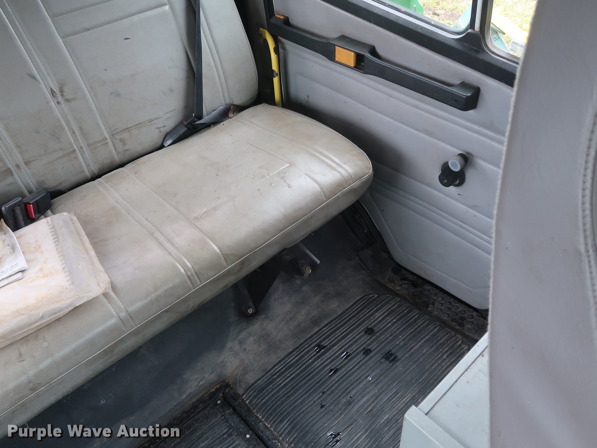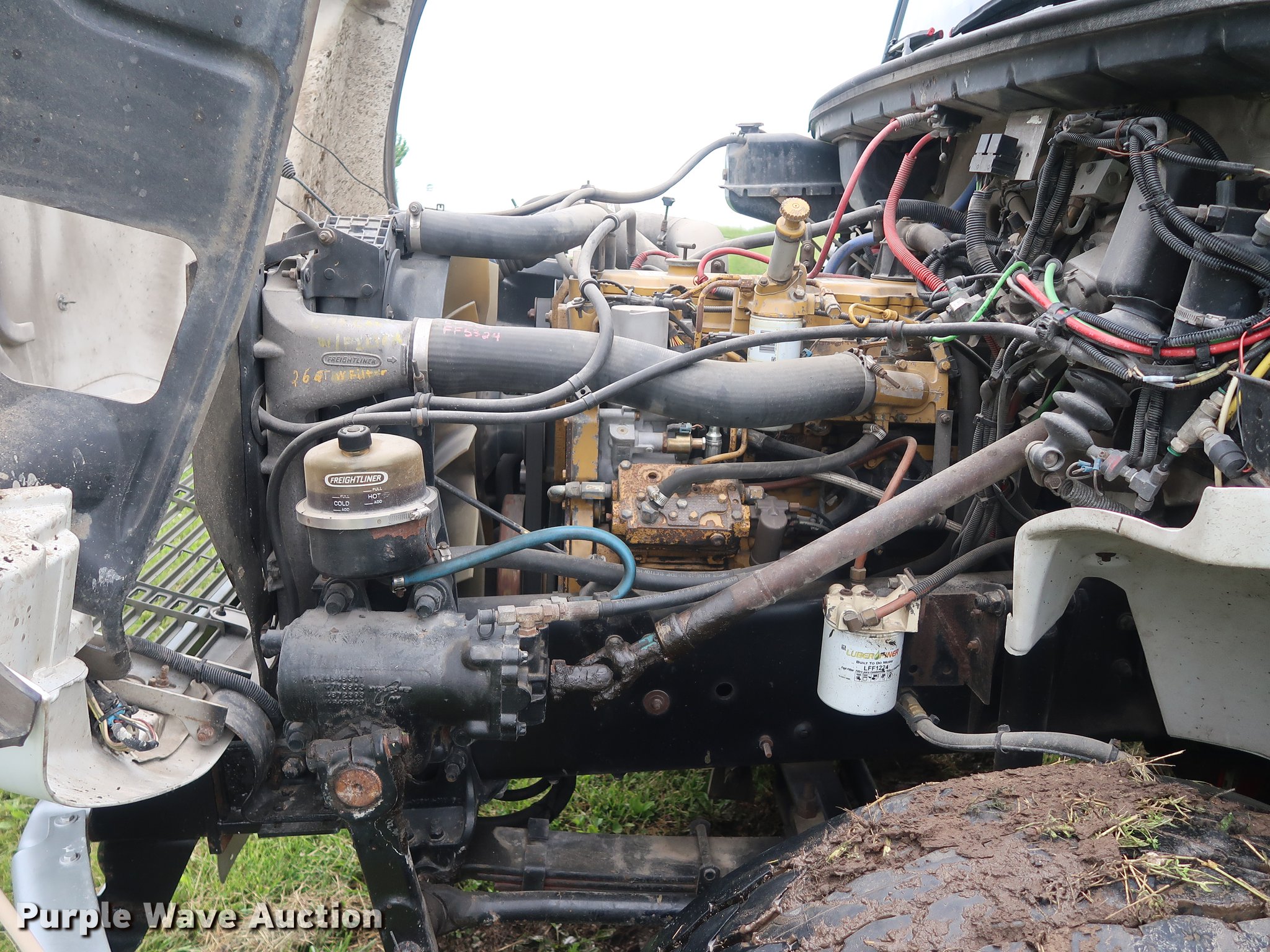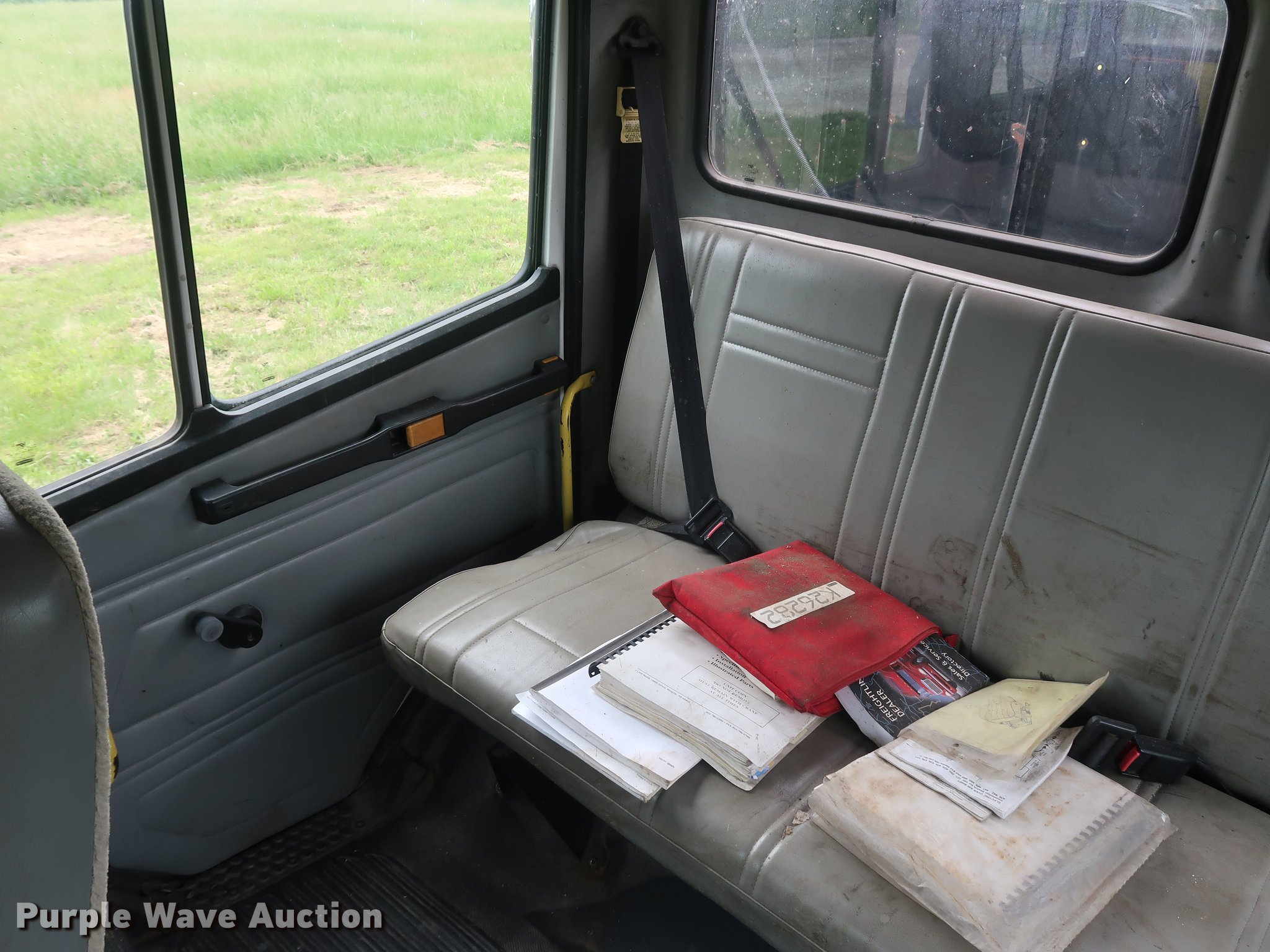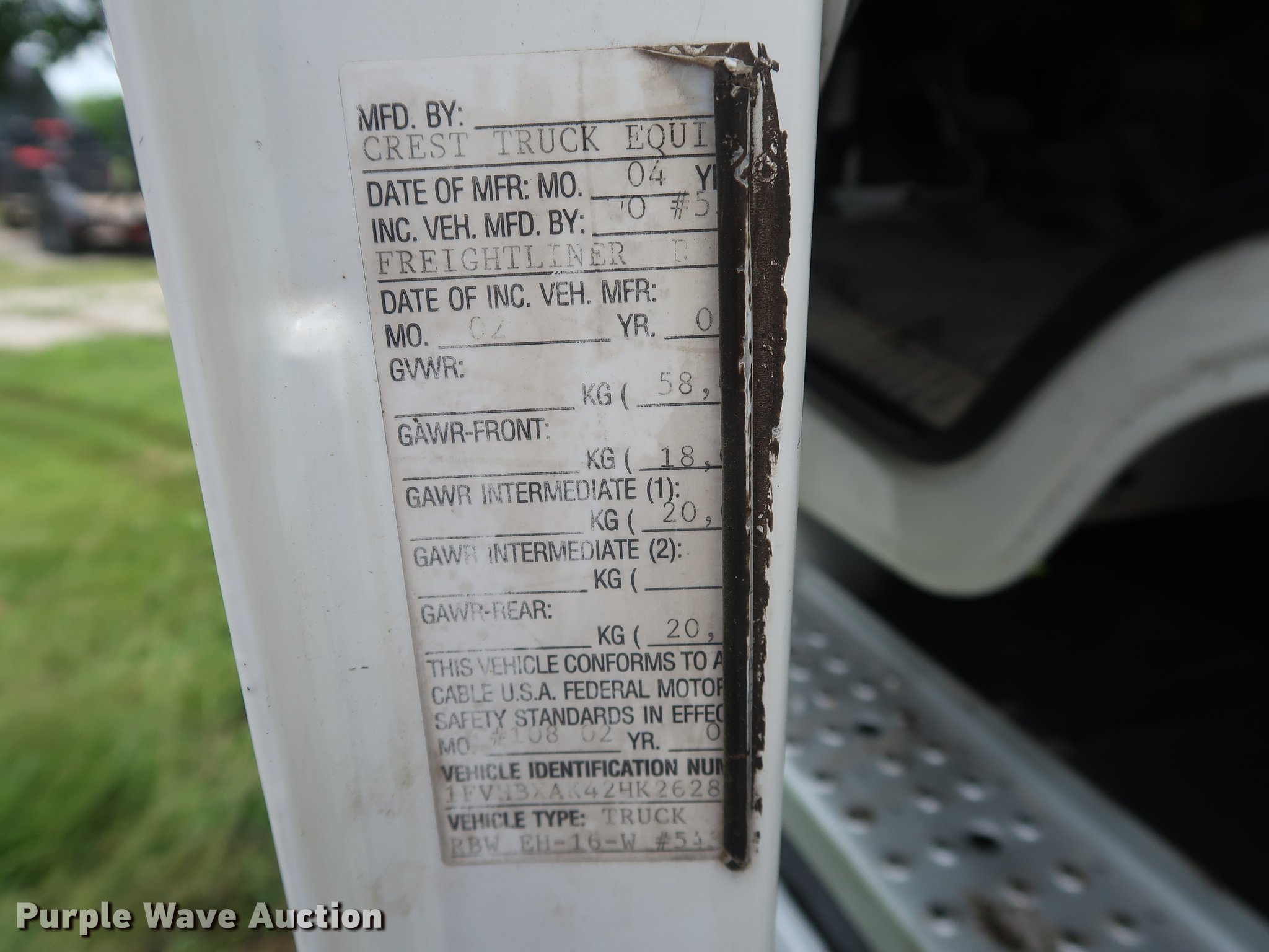 Purple Wave is selling a used Crane Truck in Missouri. This item is a 2002 Freightliner FL80 Crew Cab crane truck with the following: 177,142 miles on odometer, Caterpillar 3126 7.2L L6 turbo diesel engine, Serial CKM40050, Eaton Fuller 10 speed manual transmission, Tandem axle, Heat, Cruise, AM/FM, PTO, 16'L x 8'W flatbed, National N100 crane, Auxiliary hydraulics, Hydraulic outriggers, Toolbox, Single exhaust stack, Spring suspension, Air brakes, 315/80R22.5 front tires, 11R22.5 rear tires