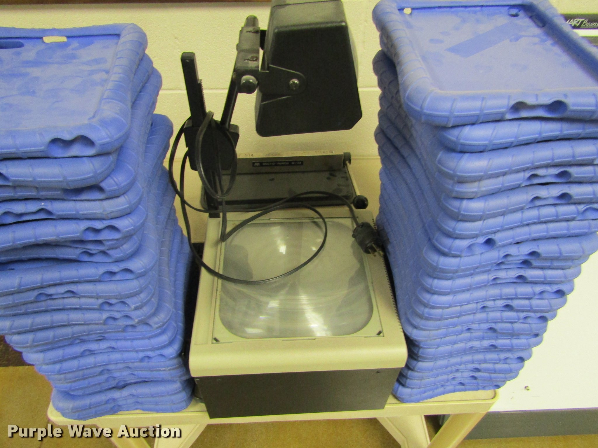 Purple Wave is selling a used Electronics in Kansas. This item is a Electronics with the following: (2) Smart boards, (43) iPad 2 M-Edge cases, Overhead projector, Three hole punch, Cart