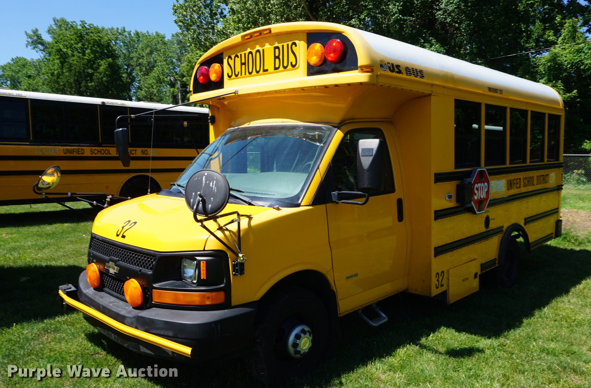 2006 Chevrolet Express 3500 Cargo bus. 136,819 miles on odometer, 6.6L V8 OHV 32V turbo diesel engine, Automatic transmission, Single axle, AC and ehat, AM/FM, 15 passenger capacity, Braun NL9171B wheel chair lift Serial B5-04089, Single wheel chair tie-down area, Ceiling, front, rear, and side emergency exits, Stop sign, Spring suspension, Hydraulic brakes, 225/75R16 tires, GVWR 12,300 lbs, Power steering leak, Unit# 32. Kansas title. Seller is a government entity who will be assigning and distributing the title. Please contact the seller for distribution questions. 1GBJG312361269795. Turner Unified Schools USD 202. 1312 S 55th St. Kansas City, KS 66106