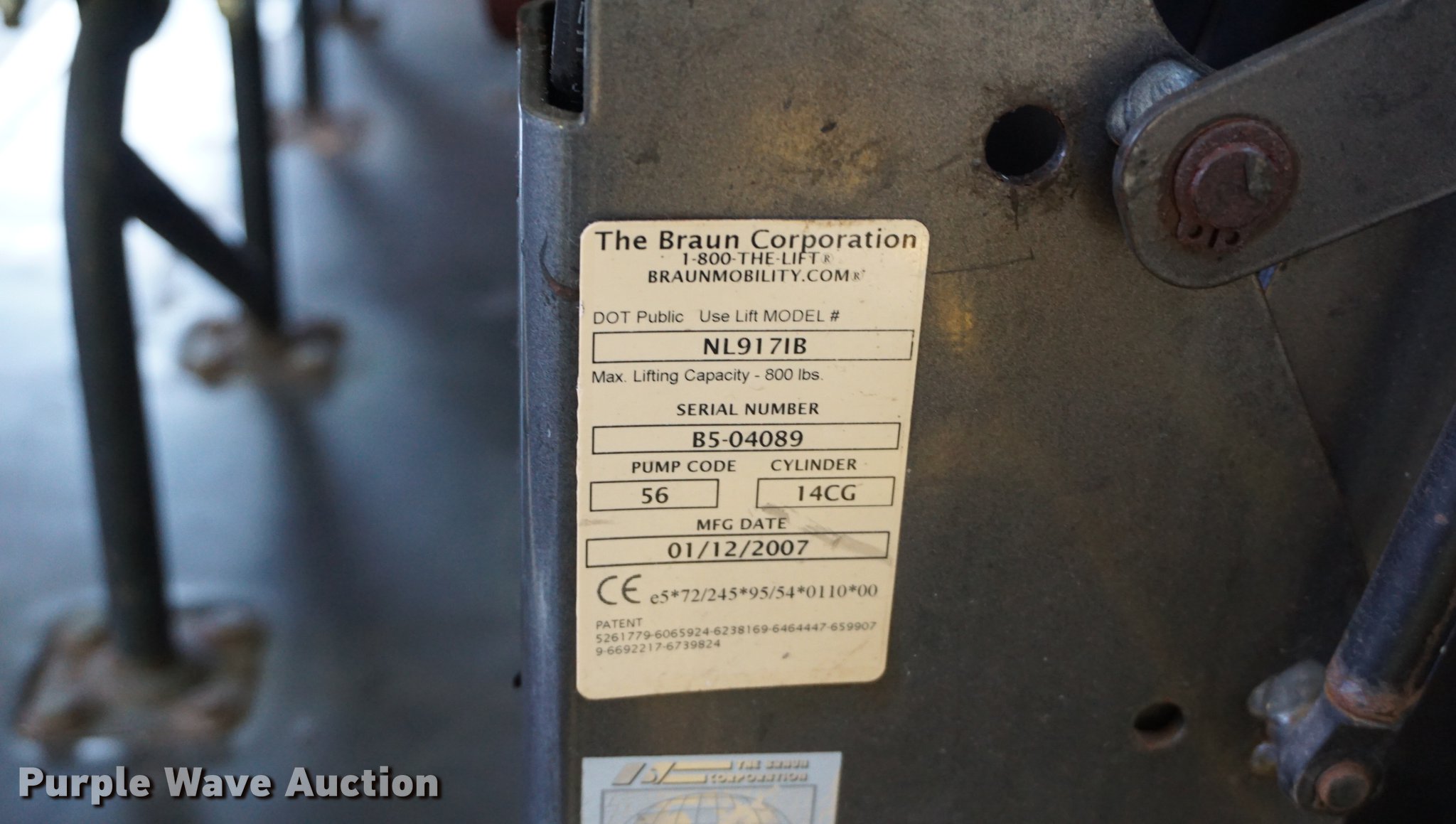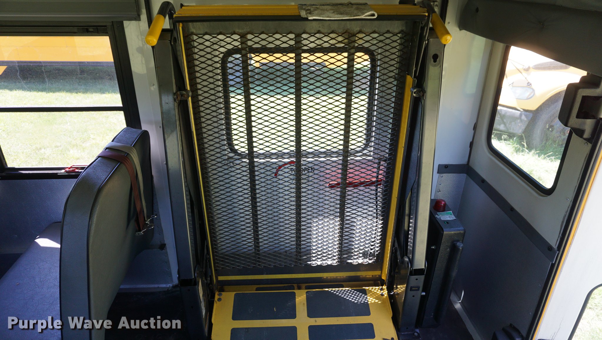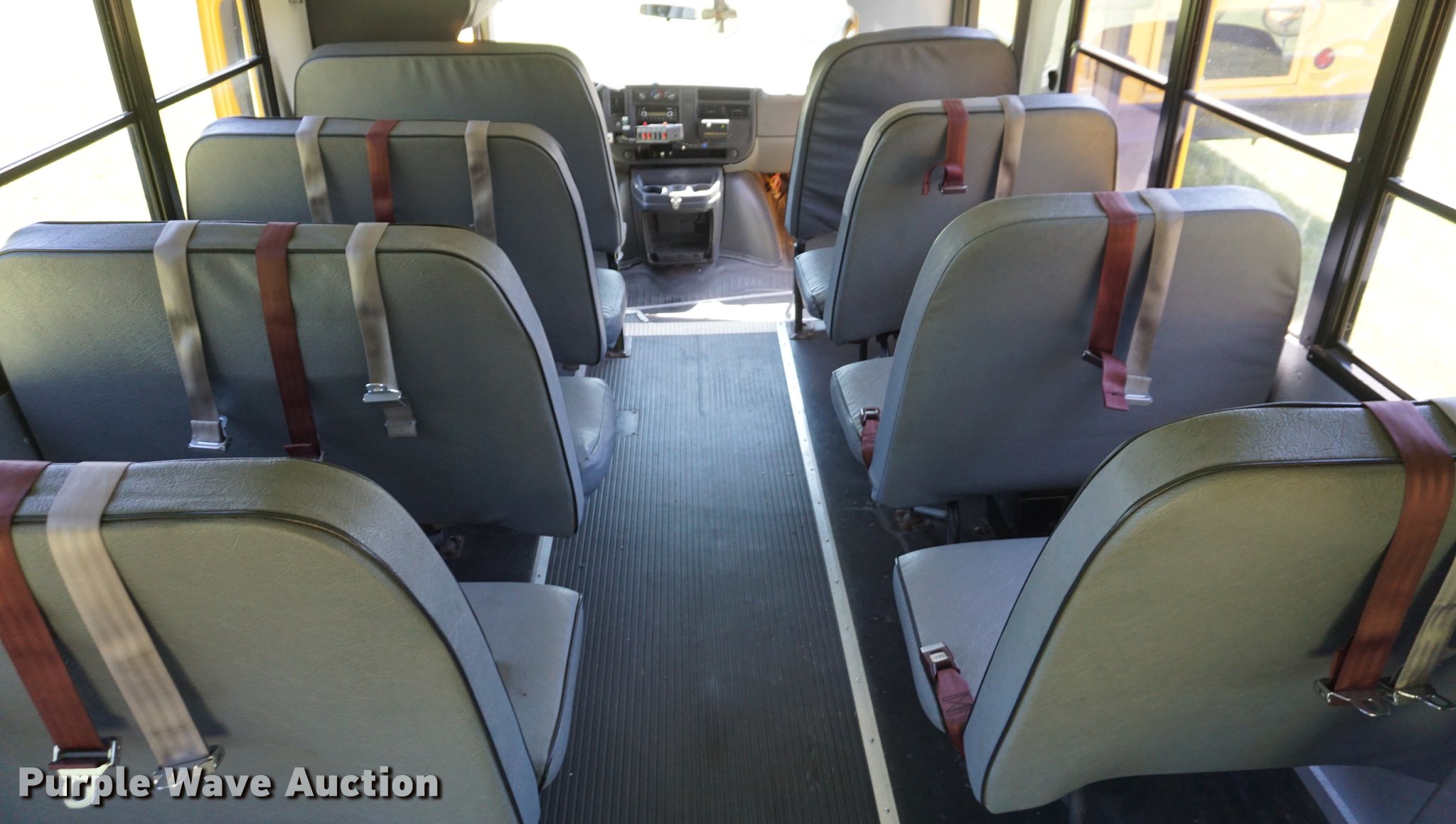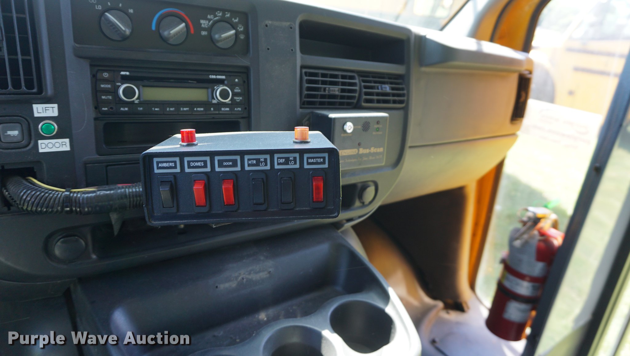 Purple Wave is selling a used Bus in Kansas. This item is a 2006 Chevrolet Express 3500 Cargo bus with the following: 136,819 miles on odometer, 6.6L V8 OHV 32V turbo diesel engine, Automatic transmission, Single axle, AC and ehat, AM/FM, 15 passenger capacity, Braun NL9171B wheel chair lift, Serial B5-04089, Single wheel chair tie-down area, Ceiling, front, rear, and side emergency exits, Stop sign, Spring suspension, Hydraulic brakes, 225/75R16 tires, GVWR 12,300 lbs, Power steering leak, Unit# 32