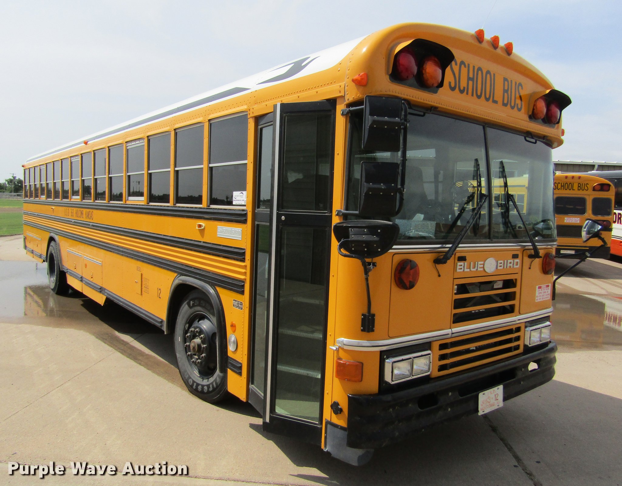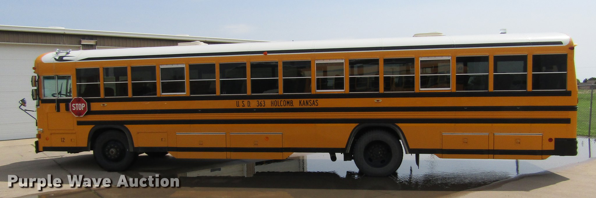 Purple Wave is selling a used Bus in Kansas. This item is a 1997 Blue Bird All American school bus with the following: 145,790 miles on odometer, 4,694 hours on meter, Cummins ISC 8.3L L6 turbo diesel engine, Automatic transmission, Single axle, Heat, AM/FM/cassette, Air suspension seat, 48 passenger capacity, Ceiling, rear, and side emergency exits, Emergency door alarms, Lighted stop sign, Underside luggage storage, Front and rear tow hooks, Air suspension, Air brakes, 11R22.5 tires, GVWR 36,200 lbs, Weak batteries, may need to be replaced, Two-way radio not included, will be removed prior to auction, Decals will be painted over, Unit# 12