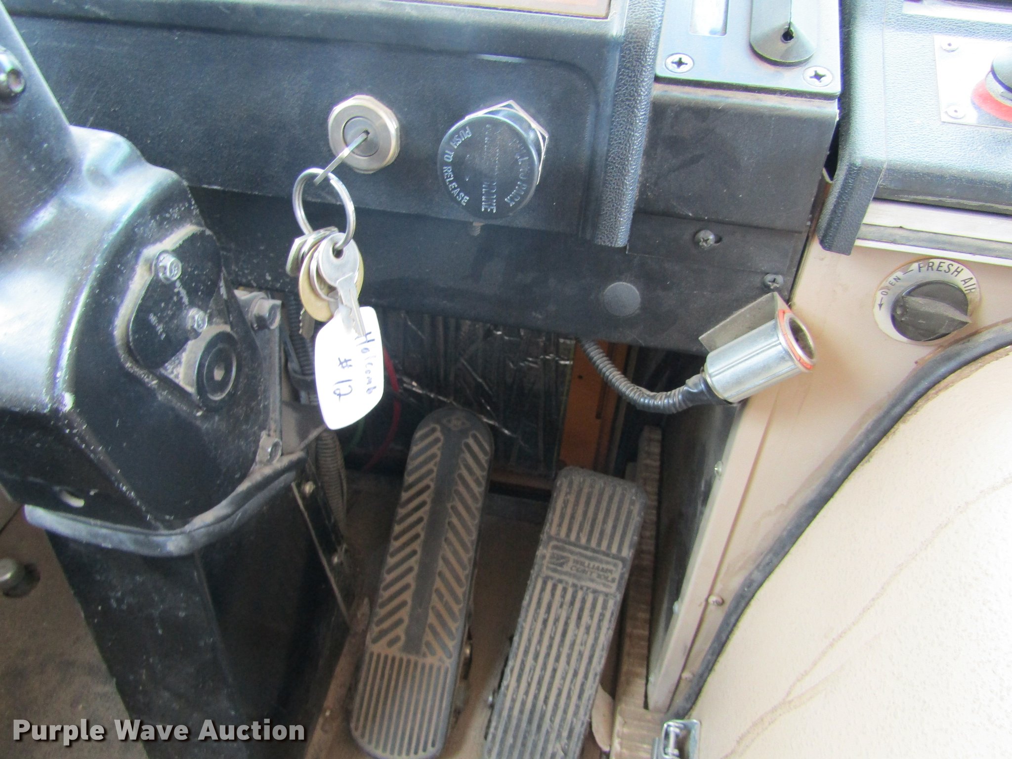 1997 Blue Bird All American school bus. 145,790 miles on odometer, 4,694 hours on meter, Cummins ISC 8.3L L6 turbo diesel engine, Automatic transmission, Single axle, Heat, AM/FM/cassette, Air suspension seat, 48 passenger capacity, Ceiling, rear, and side emergency exits, Emergency door alarms, Lighted stop sign, Underside luggage storage, Front and rear tow hooks, Air suspension, Air brakes, 11R22.5 tires, GVWR 36,200 lbs, Weak batteries, may need to be replaced, Two-way radio not included, will be removed prior to auction, Decals will be painted over, Unit# 12. Kansas title. 1BABMC7A2VF076170. USD 363 Holcomb. 305 Wiley St. Holcomb, KS 67851