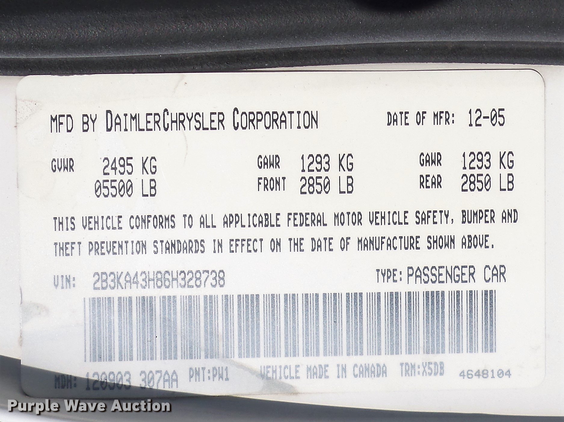 Purple Wave is selling a used Passenger Vehicle in Illinois. This item is a 2006 Dodge Charger with the following: 74,874 miles on odometer, 5.7L V8 OHV 16V gas engine, Automatic transmission, AC and heat, Tilt, Cruise, AM/FM/CD, Power windows, locks, mirrors, and seat, Cloth interior