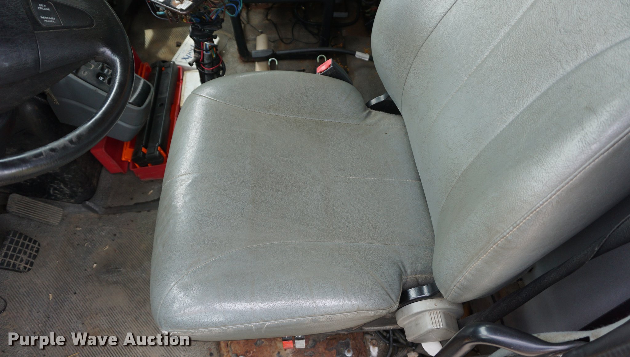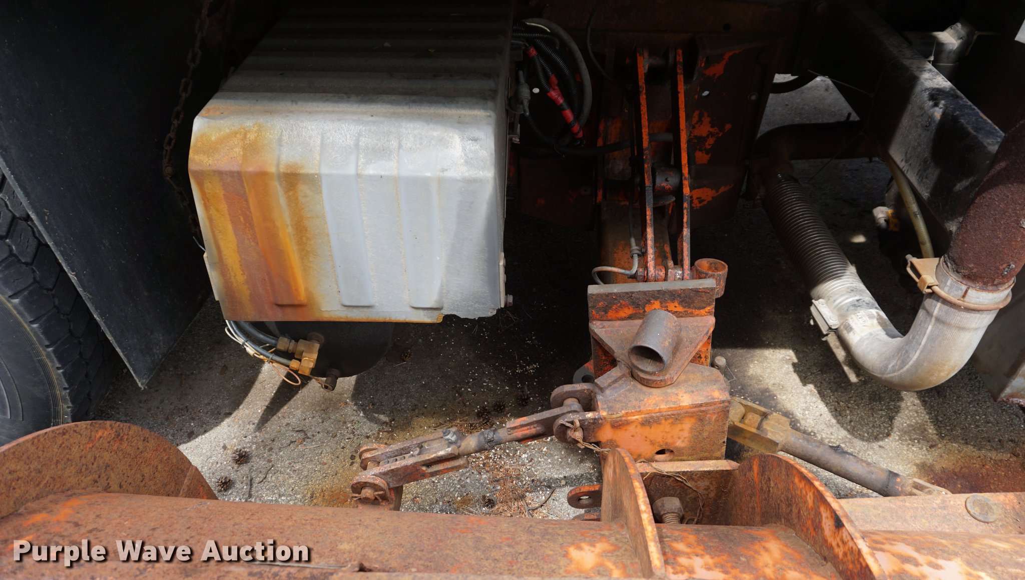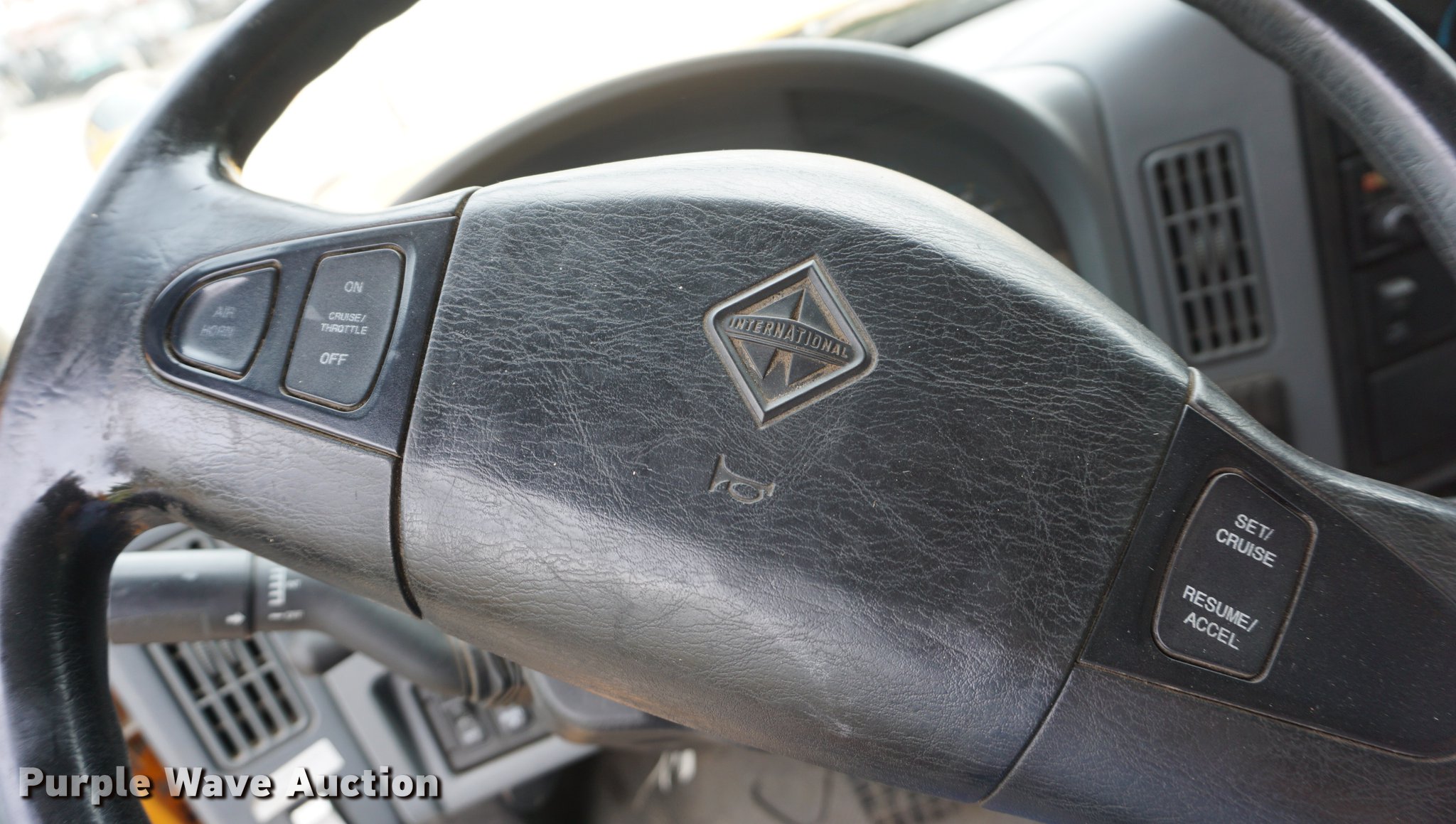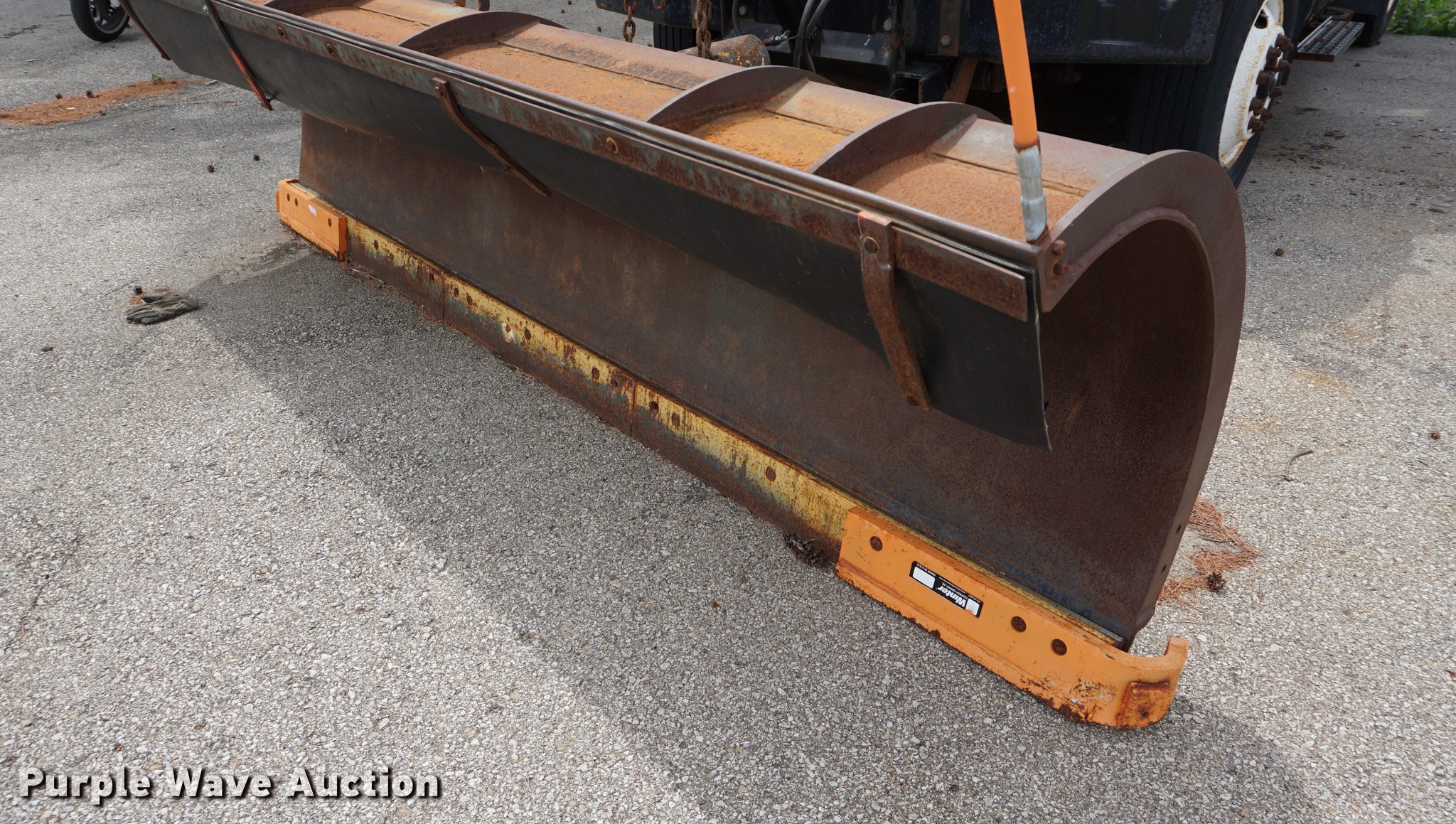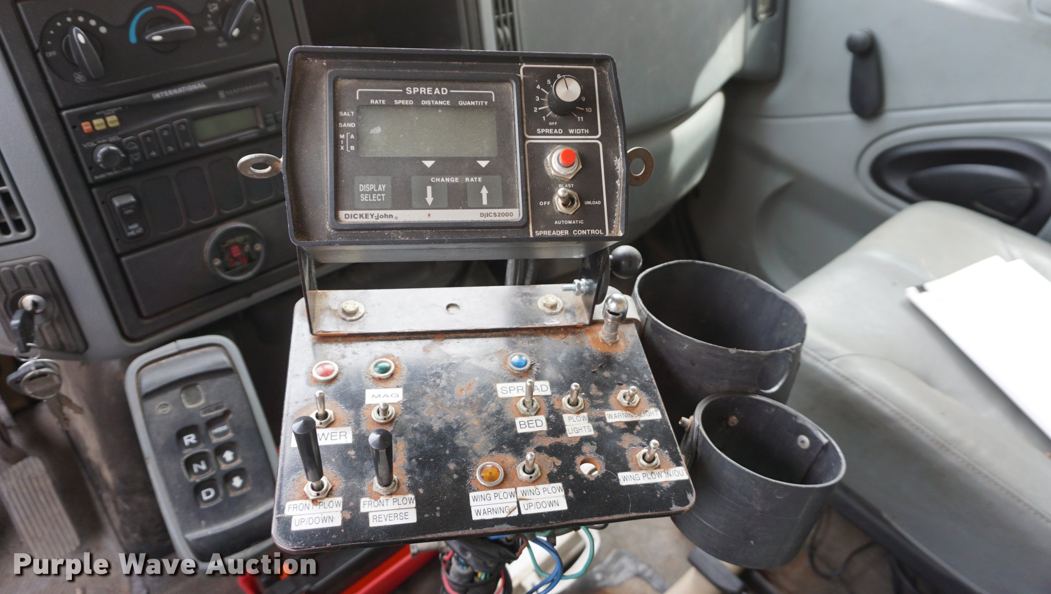 Purple Wave is selling a used Construction Dump Truck in Kansas. This item is a 2002 International 7400 dump truck with the following: 52,800 miles on odometer, 3,875 hours on meter, International DT530 8.7L L6 turbo diesel engine, Allison automatic transmission, Single axle, AC and heat, AM/FM, Heated mirrors, Air suspension seat, PTO, 10'L x 95"W steel dump bed, 34" side height, 9" side board height, 32" conveyor chain in bed, Single ram hoist, Air operated end gate, Viking 11'W plow, Coats 8'W wing plow, Stainless steel magnesium tank, Single spinner, Spring suspension, Air brakes, 11R22.5 tires, GVWR 36,220 lbs, FAWR 13,220 lbs, RAWR 23,000 lbs, Dead battery, Unit# 8129