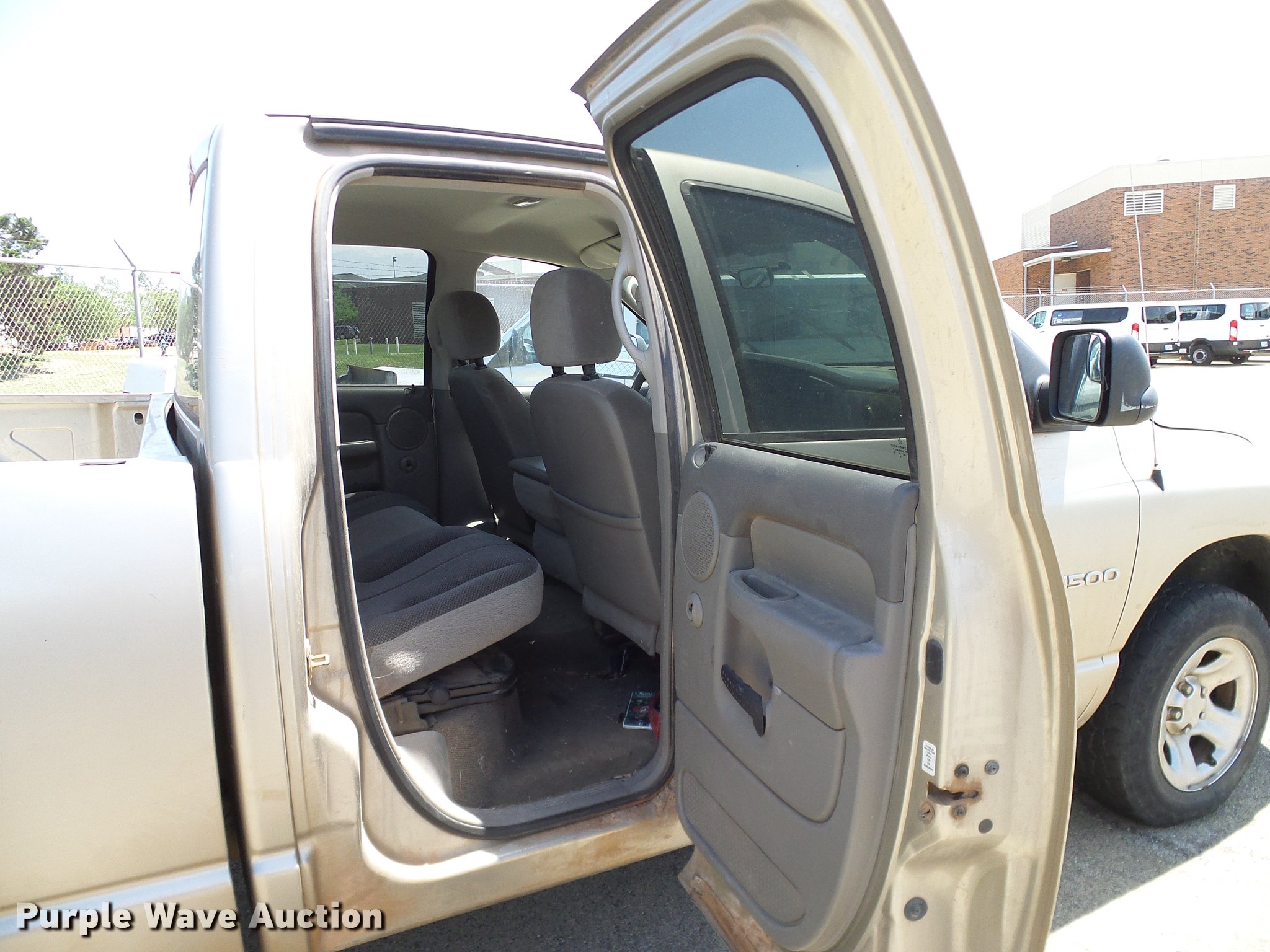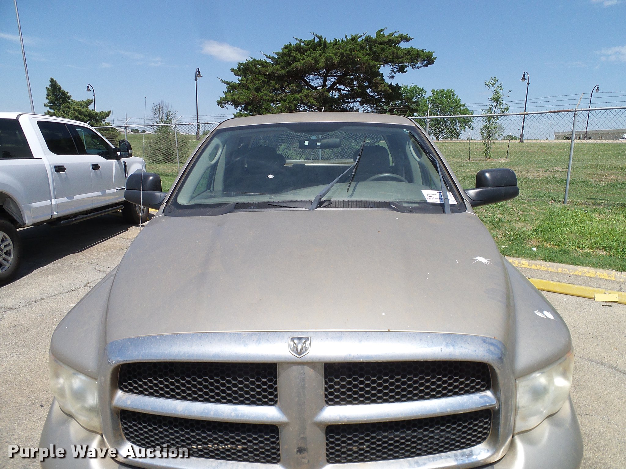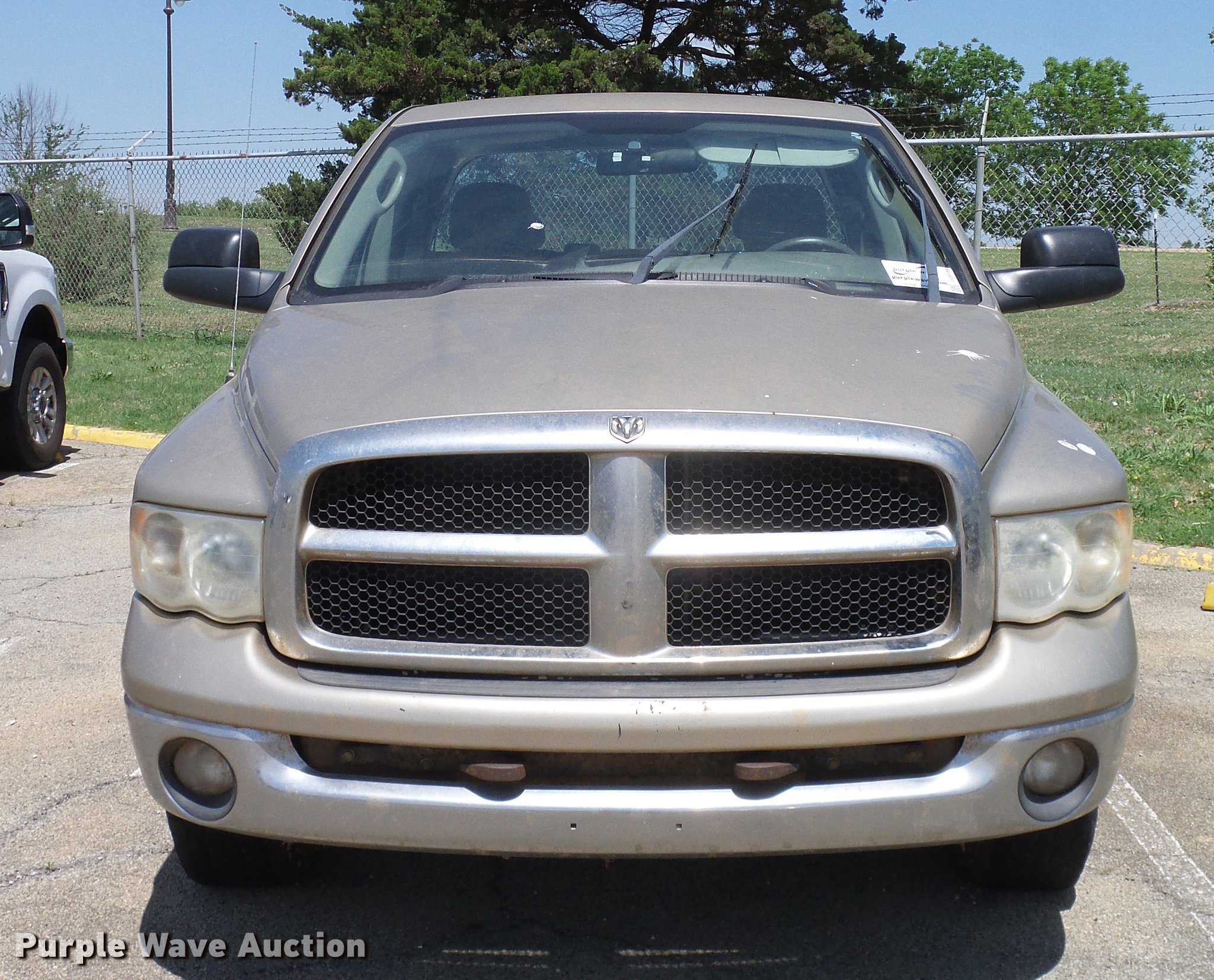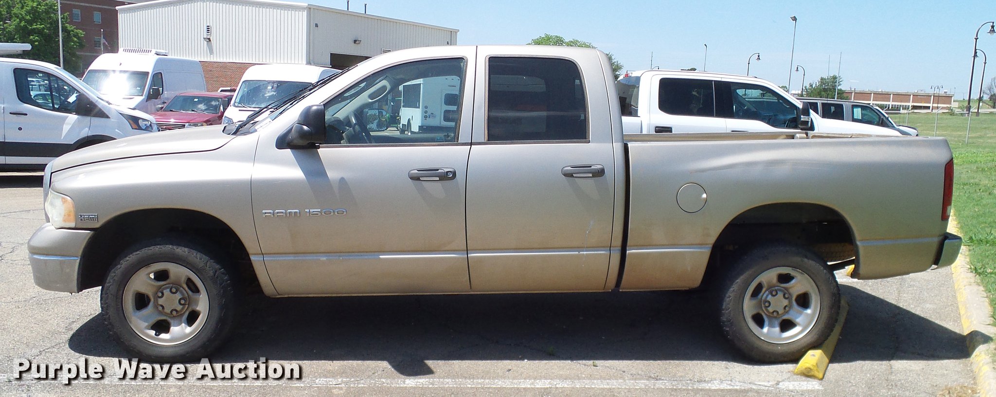 Purple Wave is selling a used 1/2 Ton Pickup or Van in Oklahoma. This item is a 2004 Dodge Ram 1500 Quad Cab pickup truck with the following: 146,472 miles on odometer, 5.7L V8 OHV 16V gas engine, Automatic transmission, Four wheel drive, AC and heat, Tilt, Cruise, AM/FM/CD, Power windows, locks, mirrors, and seat, Cloth interior, Fog lights, Front tow hooks, Receiver hitch, Trailer wiring, Hankook 245/70R17 tires, Dead battery, Sale# 1901-KP, Unit# 360