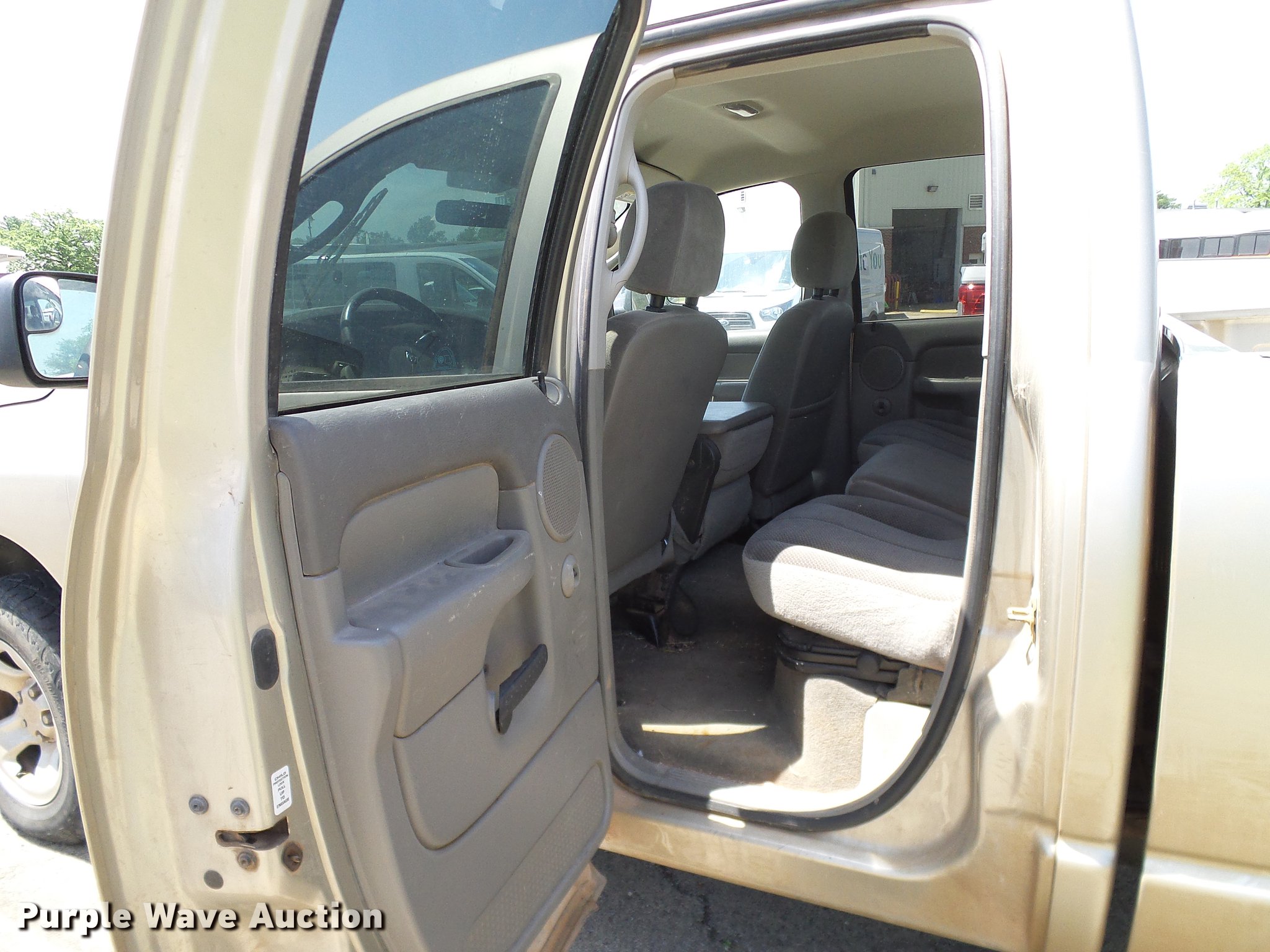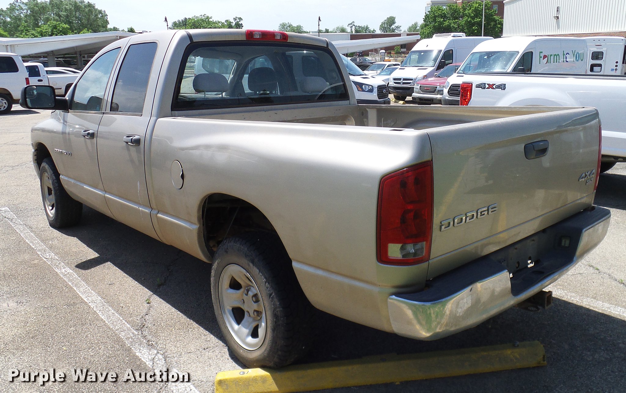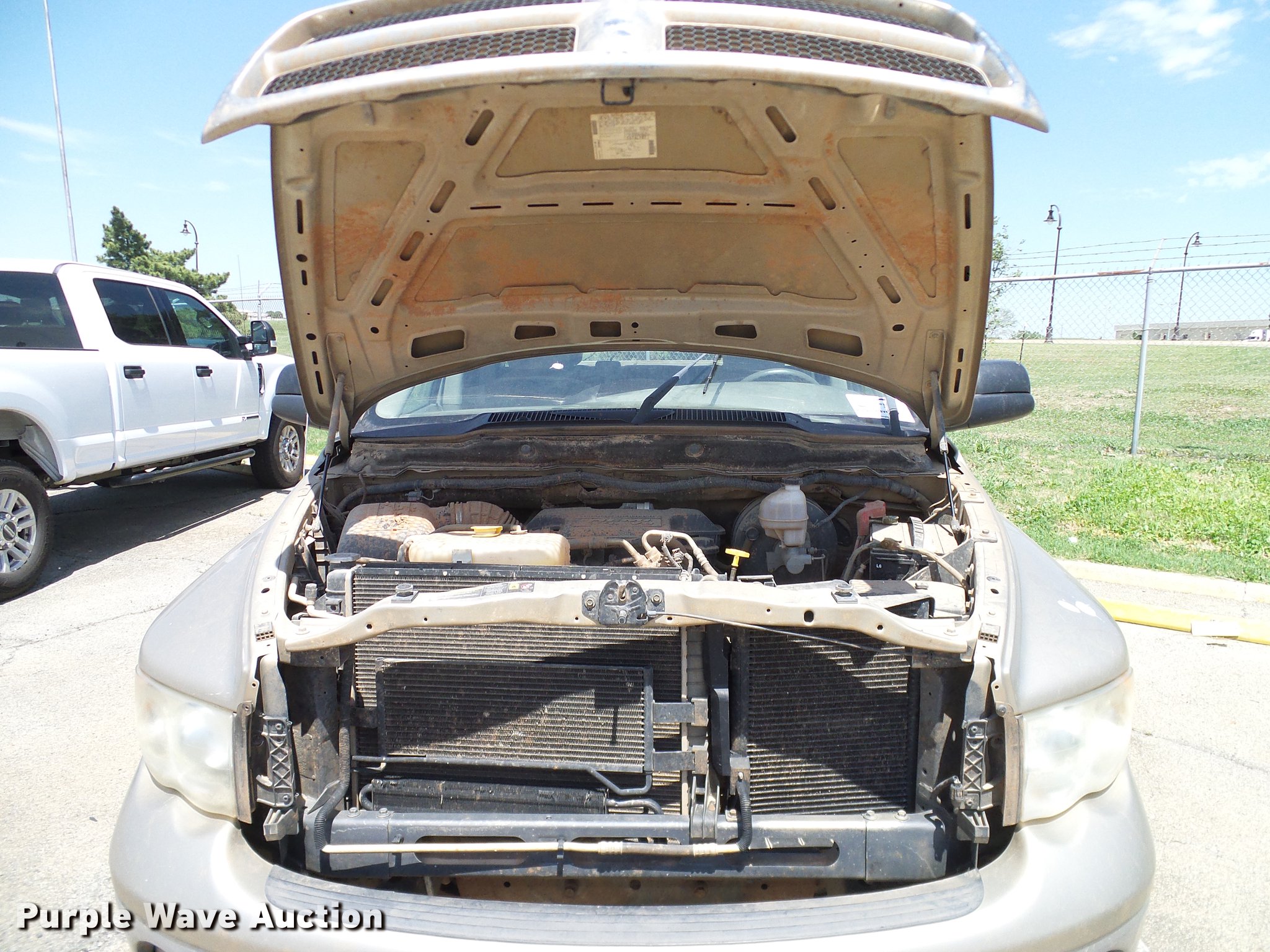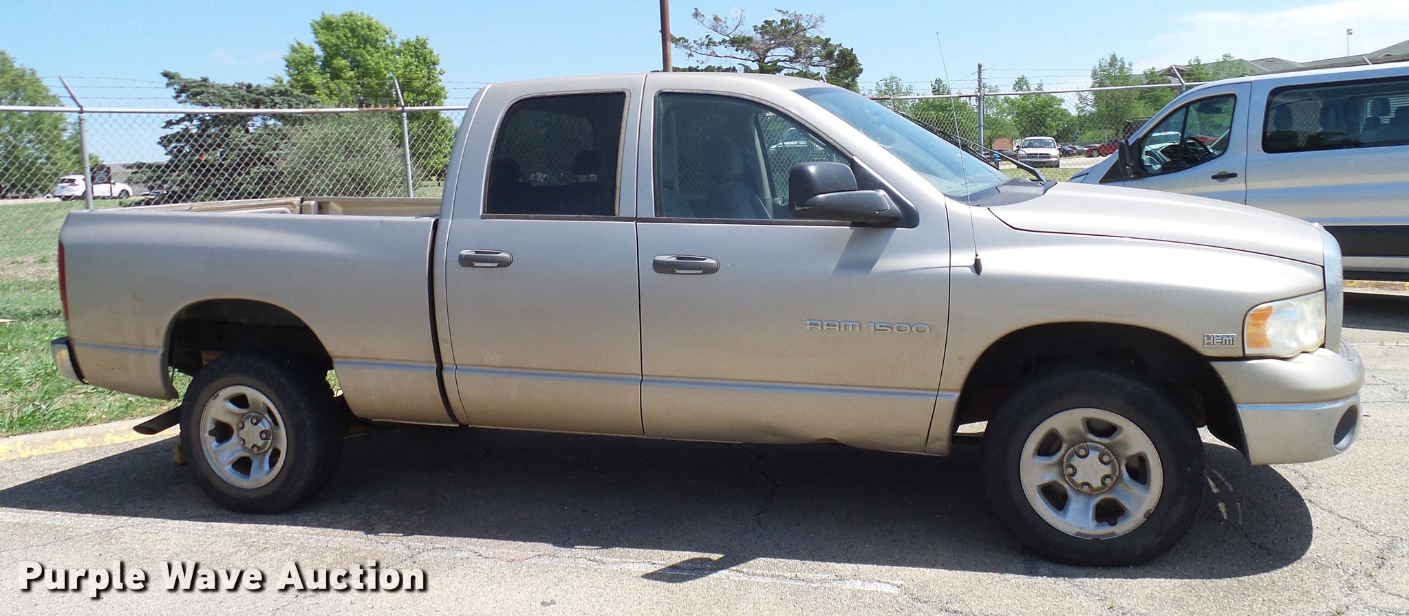 Purple Wave is selling a used 1/2 Ton Pickup or Van in Oklahoma. This item is a 2004 Dodge Ram 1500 Quad Cab pickup truck with the following: 146,472 miles on odometer, 5.7L V8 OHV 16V gas engine, Automatic transmission, Four wheel drive, AC and heat, Tilt, Cruise, AM/FM/CD, Power windows, locks, mirrors, and seat, Cloth interior, Fog lights, Front tow hooks, Receiver hitch, Trailer wiring, Hankook 245/70R17 tires, Dead battery, Sale# 1901-KP, Unit# 360