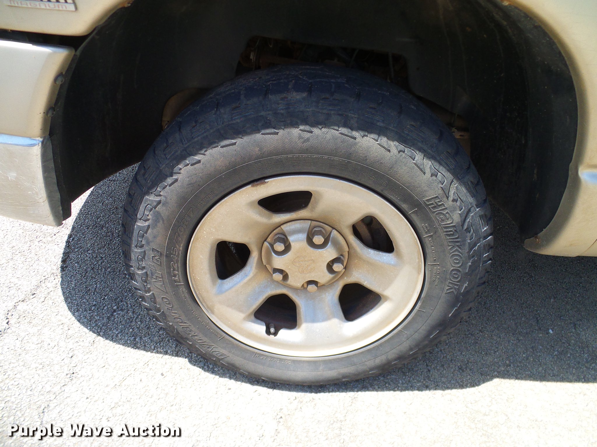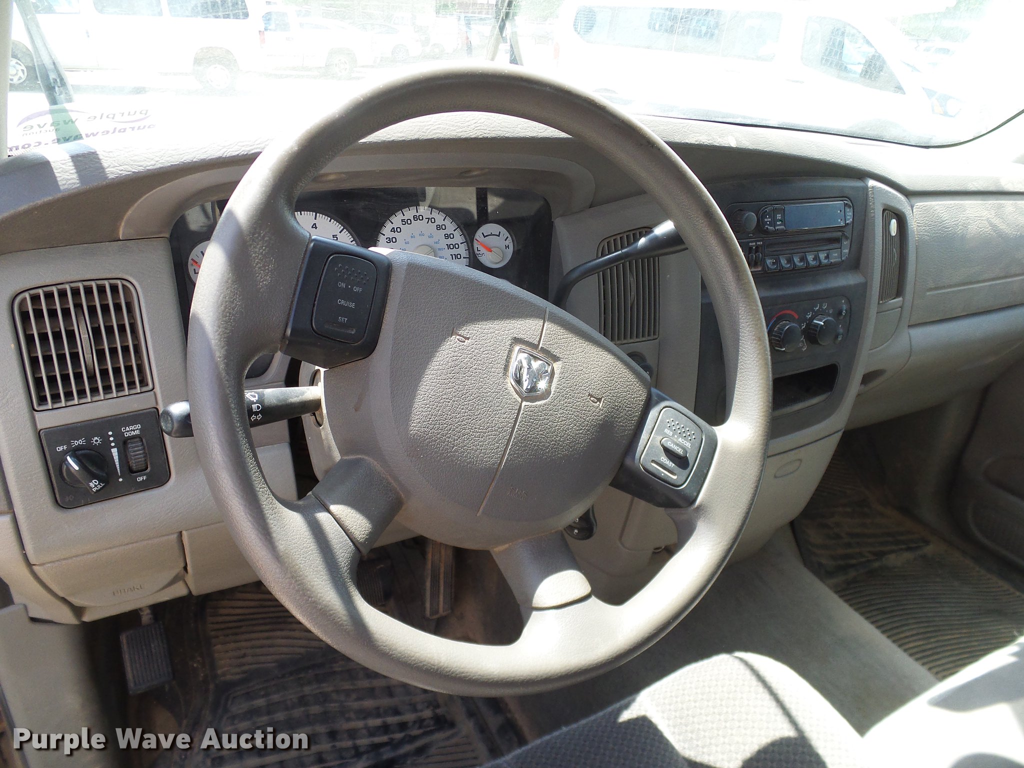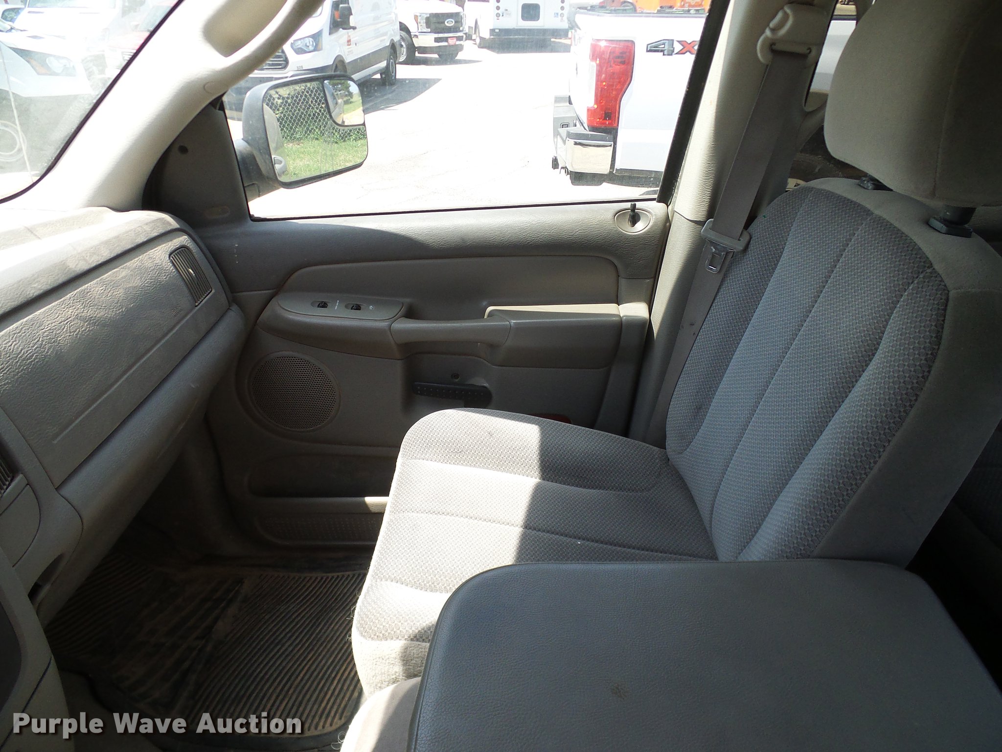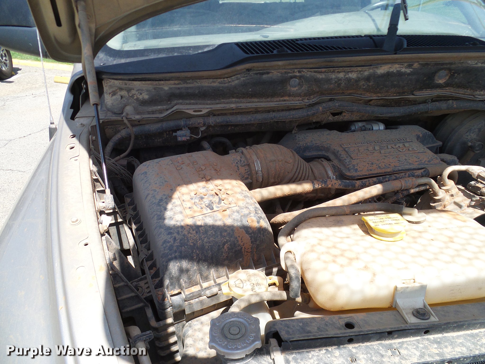 Purple Wave is selling a used 1/2 Ton Pickup or Van in Oklahoma. This item is a 2004 Dodge Ram 1500 Quad Cab pickup truck with the following: 146,472 miles on odometer, 5.7L V8 OHV 16V gas engine, Automatic transmission, Four wheel drive, AC and heat, Tilt, Cruise, AM/FM/CD, Power windows, locks, mirrors, and seat, Cloth interior, Fog lights, Front tow hooks, Receiver hitch, Trailer wiring, Hankook 245/70R17 tires, Dead battery, Sale# 1901-KP, Unit# 360