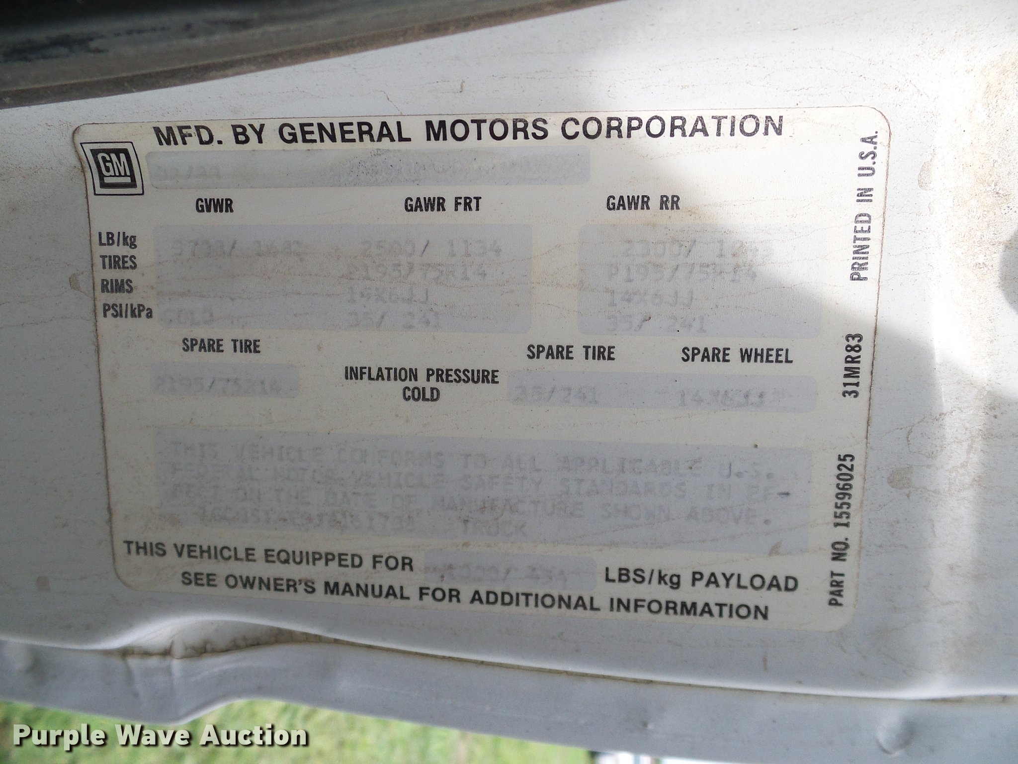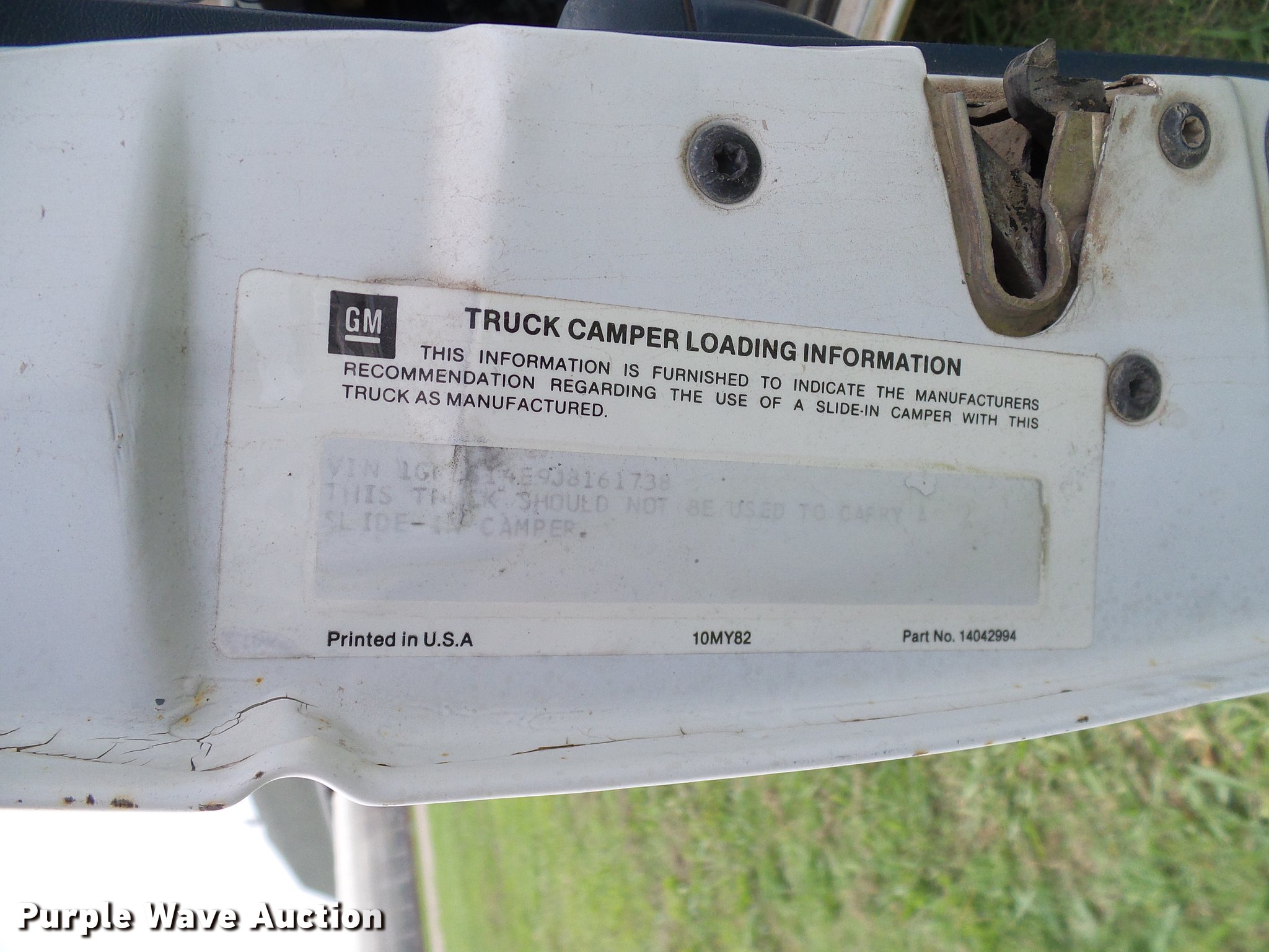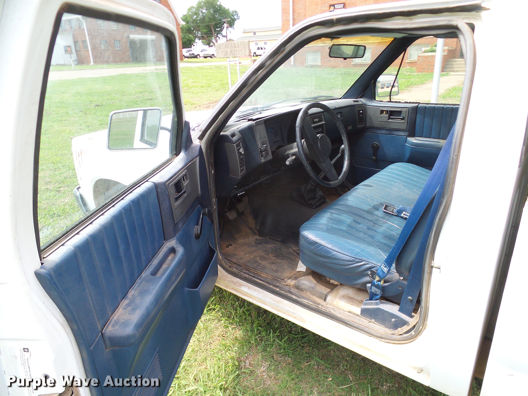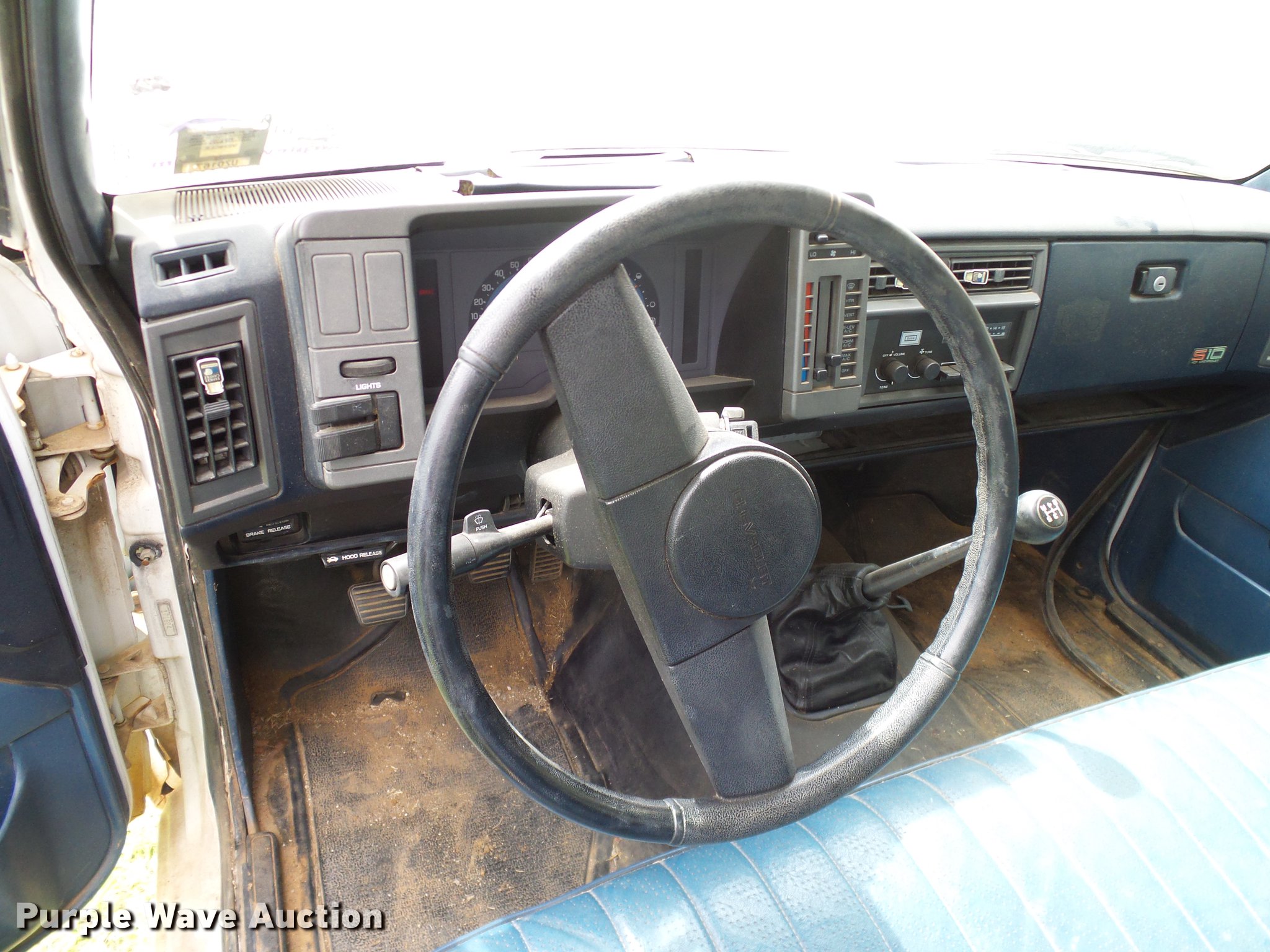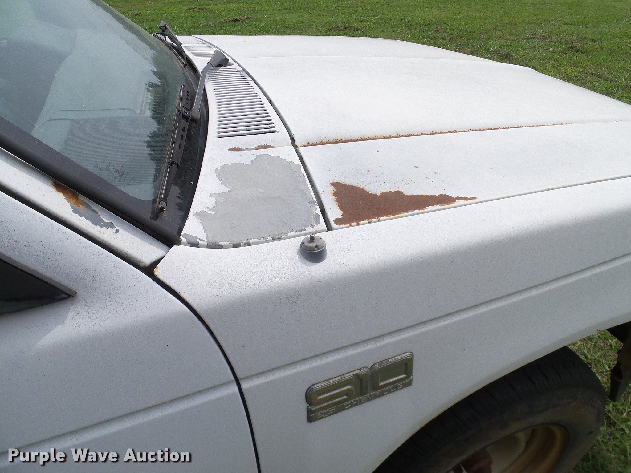 Purple Wave is selling a used Compact Pickup or Van in Oklahoma. This item is a 1988 Chevrolet S10 pickup truck with the following: 131,901 miles on odometer, 2.5L L4 OHV 8V gas engine, Five speed manual transmission, AC and heat, Cruise, AM/FM, Vinyl interior, Topper, Door struts broken, 195/75R14 tires, Sale# 1903-KP, Unit# 491