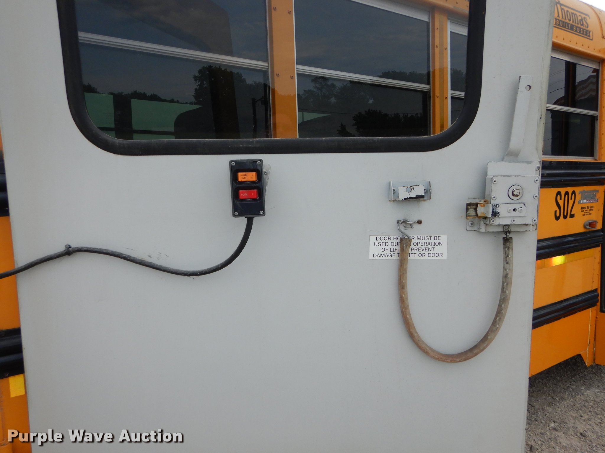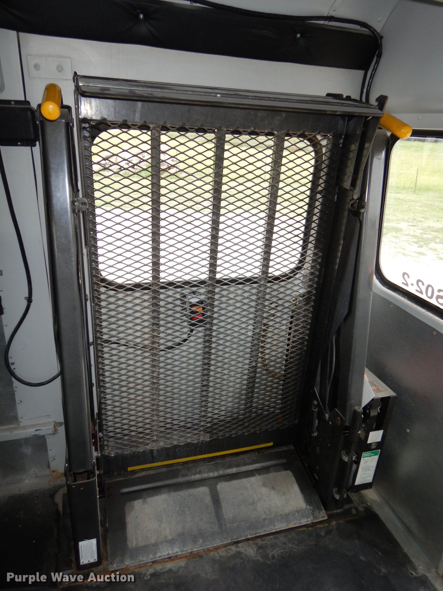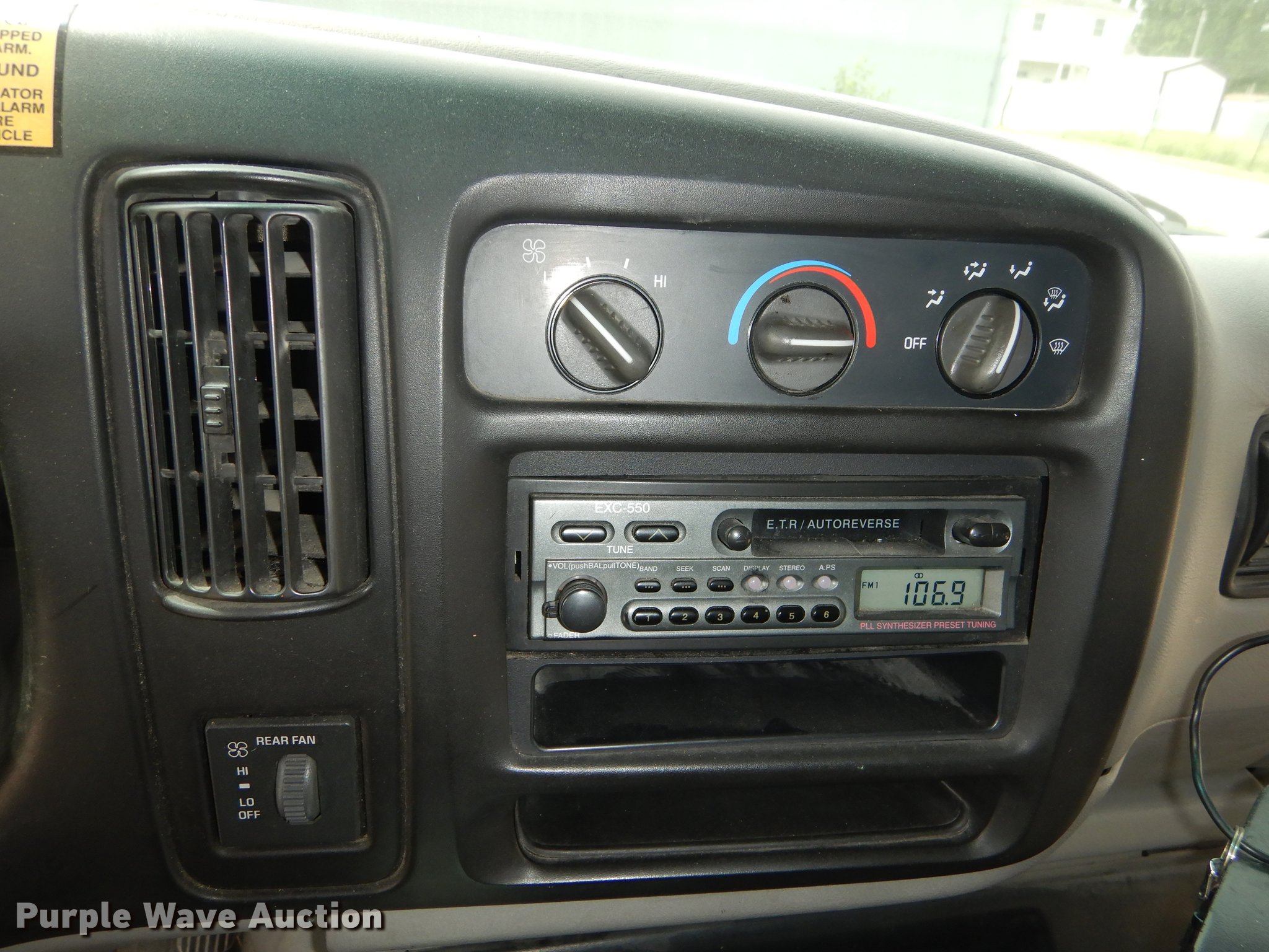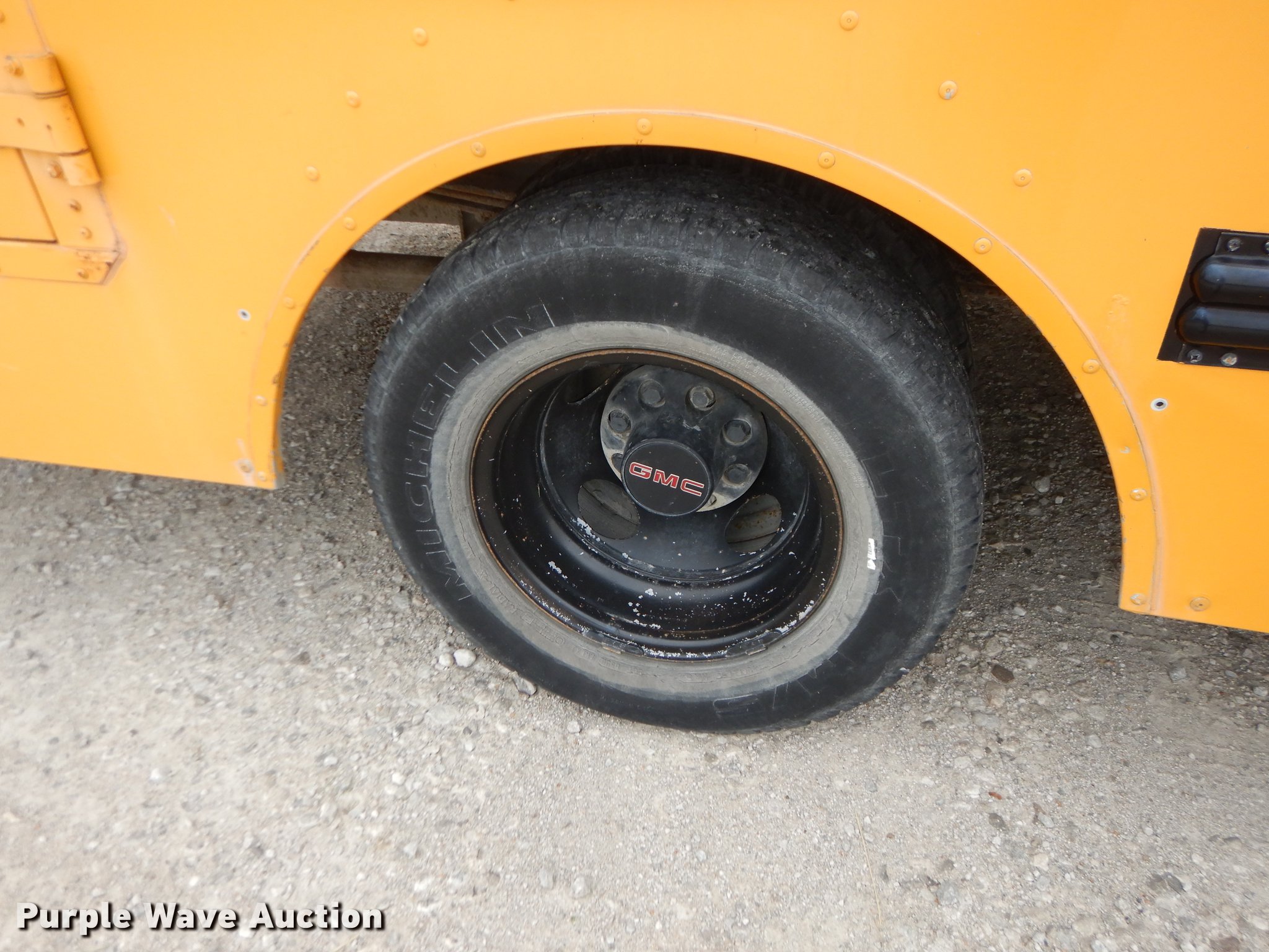 Purple Wave is selling a used Bus in Kansas. This item is a 2002 GMC Savana G3500 Cargo Thomas school bus with the following: 98,109 miles on odometer, 5.7L V8 OHV 16V gas engine, Automatic transmission, Single axle, Heat, Rear AC, AM/FM, Heated mirrors, Vinyl interior, 22 passenger capacity, (8) sets of seat belts, Braun L9161B wheelchair lift, Serial 05-00993, (2) wheelchair tie down areas, Ceiling, rear, and side emergency exits, Lighted stop sign, Backup alarm, Rear tow hooks, Spring suspension, Hydraulic brakes, 160" wheelbase, 225/75R16 tires, Non-operational AC, Unit# S02