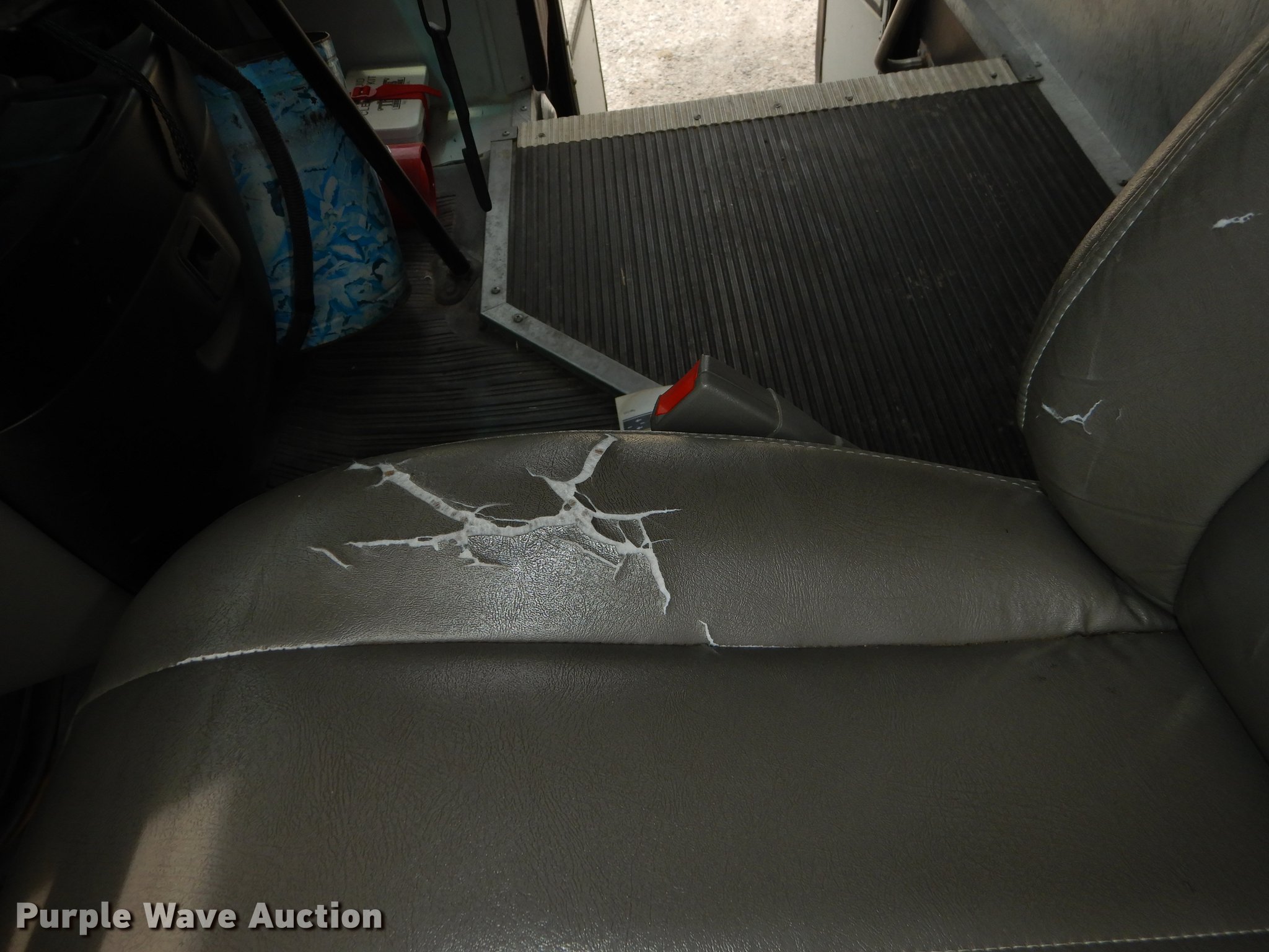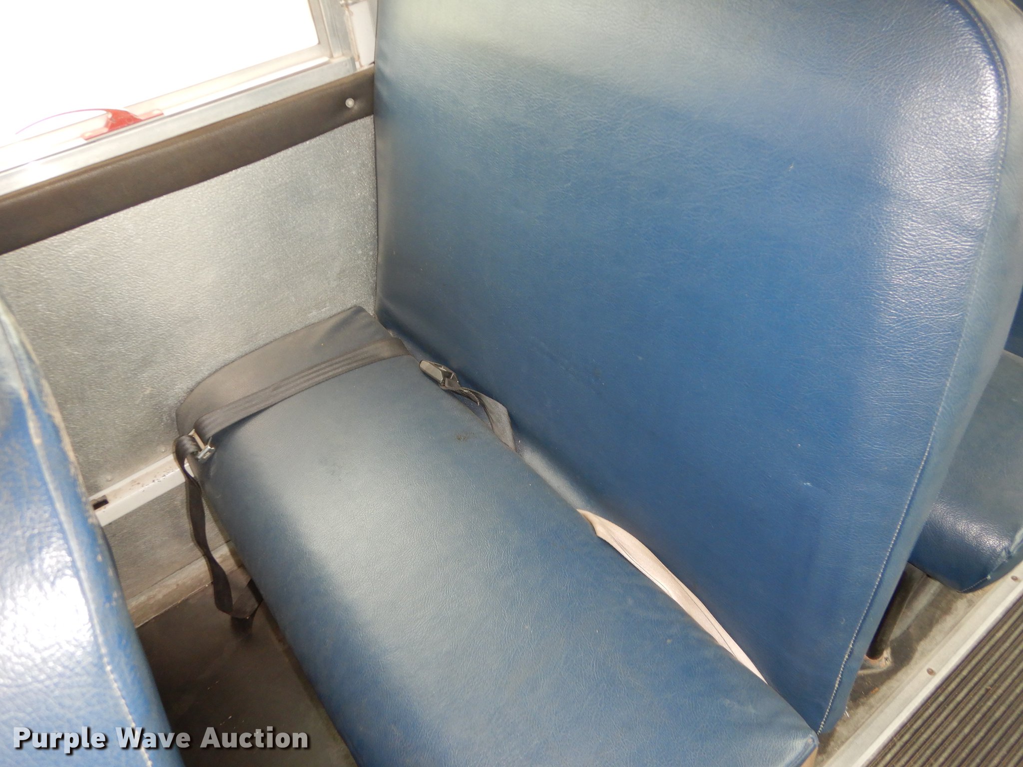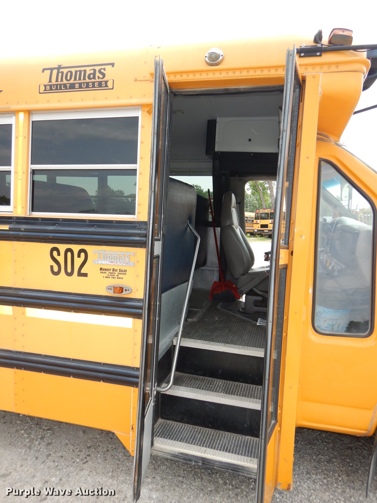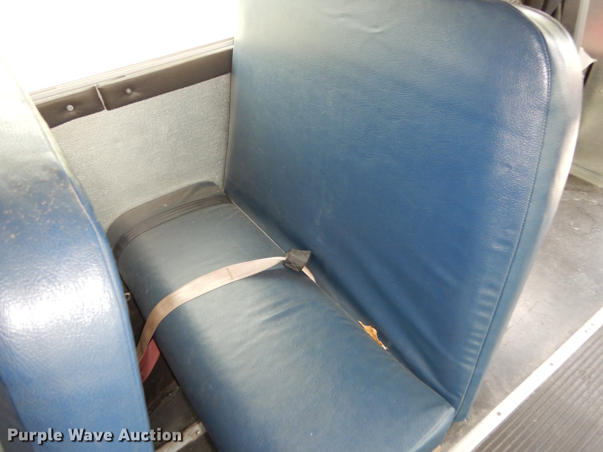 Purple Wave is selling a used Bus in Kansas. This item is a 2002 GMC Savana G3500 Cargo Thomas school bus with the following: 98,109 miles on odometer, 5.7L V8 OHV 16V gas engine, Automatic transmission, Single axle, Heat, Rear AC, AM/FM, Heated mirrors, Vinyl interior, 22 passenger capacity, (8) sets of seat belts, Braun L9161B wheelchair lift, Serial 05-00993, (2) wheelchair tie down areas, Ceiling, rear, and side emergency exits, Lighted stop sign, Backup alarm, Rear tow hooks, Spring suspension, Hydraulic brakes, 160" wheelbase, 225/75R16 tires, Non-operational AC, Unit# S02