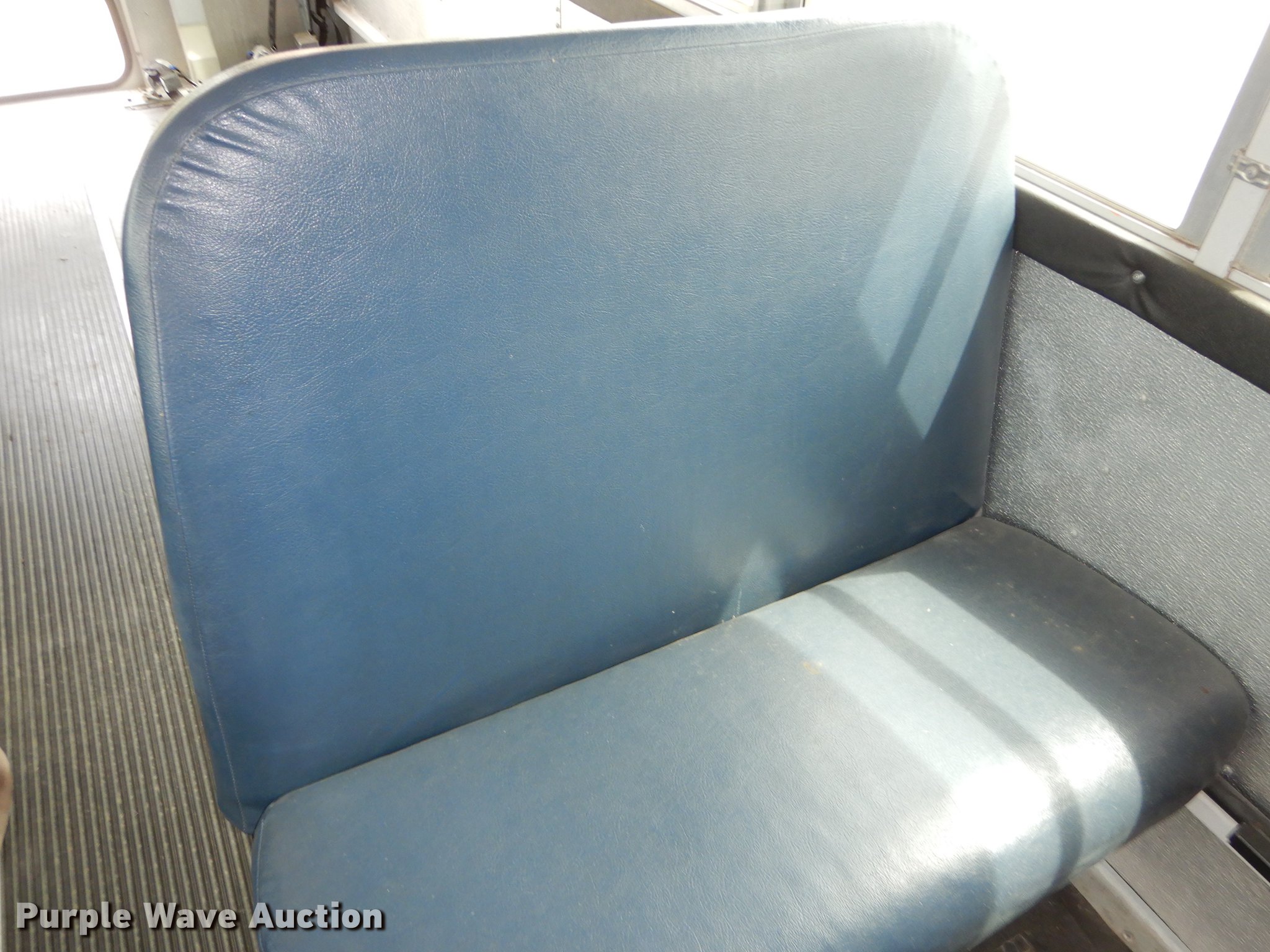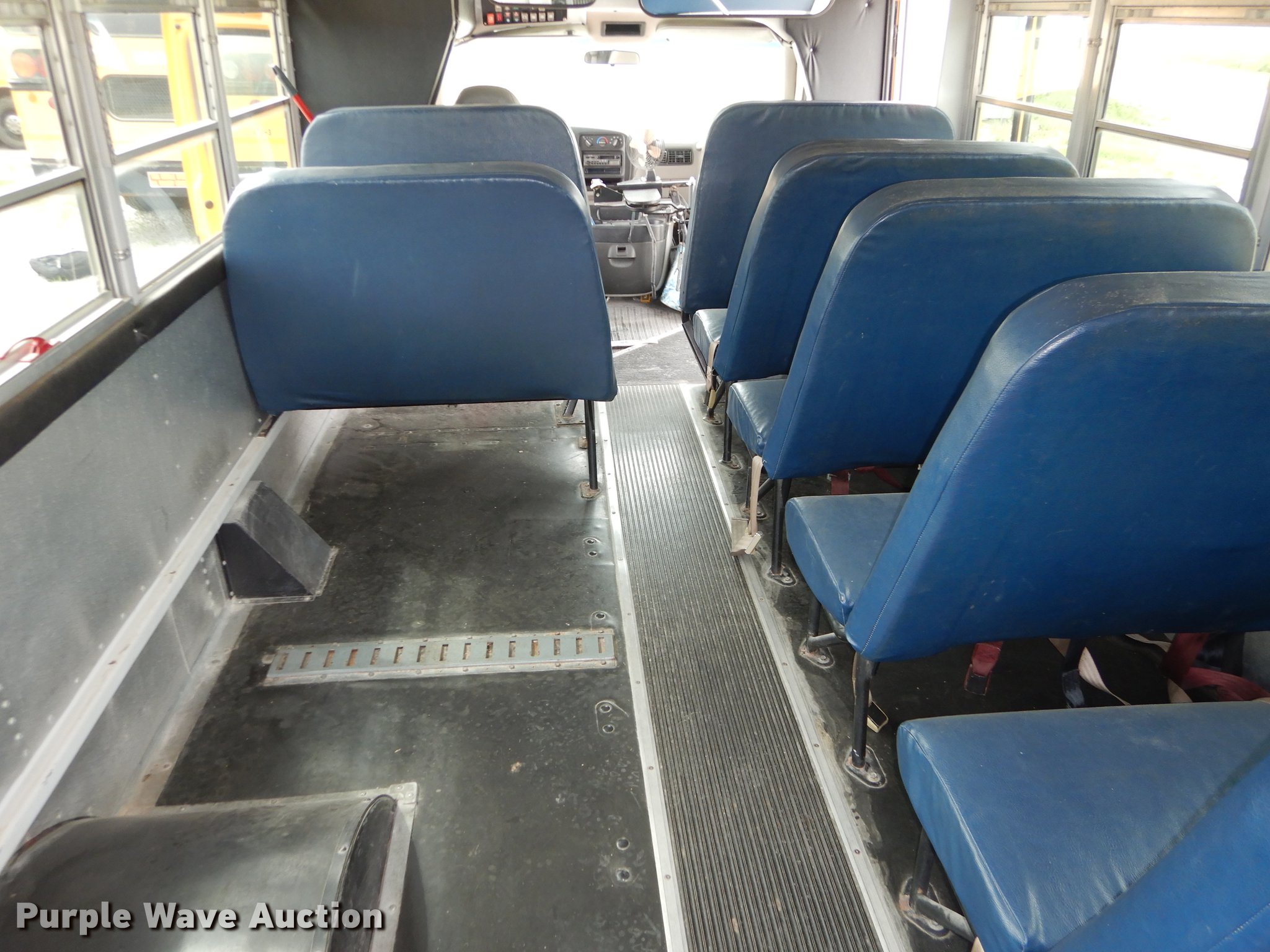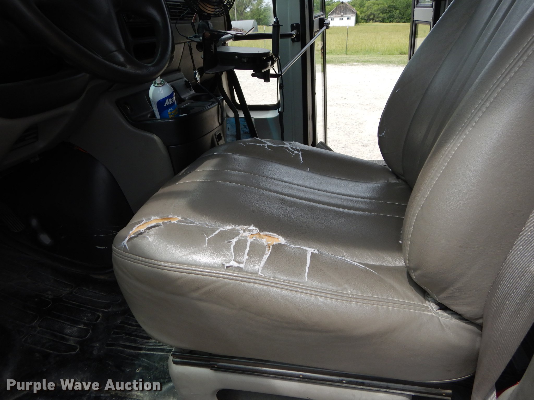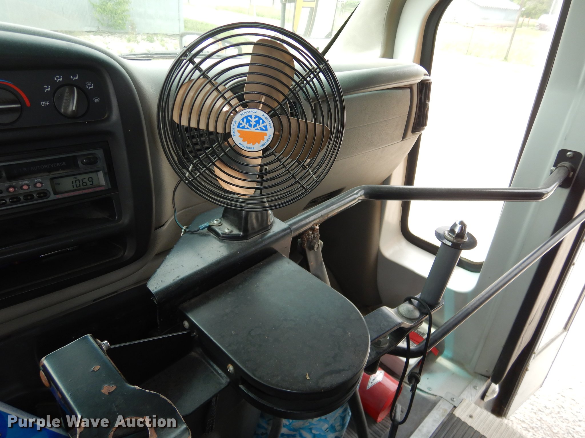 Purple Wave is selling a used Bus in Kansas. This item is a 2002 GMC Savana G3500 Cargo Thomas school bus with the following: 98,109 miles on odometer, 5.7L V8 OHV 16V gas engine, Automatic transmission, Single axle, Heat, Rear AC, AM/FM, Heated mirrors, Vinyl interior, 22 passenger capacity, (8) sets of seat belts, Braun L9161B wheelchair lift, Serial 05-00993, (2) wheelchair tie down areas, Ceiling, rear, and side emergency exits, Lighted stop sign, Backup alarm, Rear tow hooks, Spring suspension, Hydraulic brakes, 160" wheelbase, 225/75R16 tires, Non-operational AC, Unit# S02