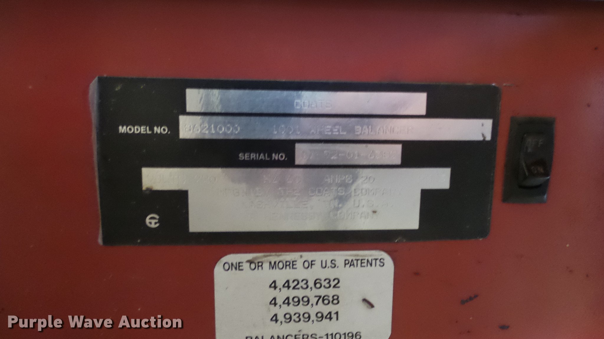 Purple Wave is selling a used Tools in Kansas. This item is a Coats 1001 direct drive tire balancer with the following: Wheel weights not included, Serial 01-92-01-6387