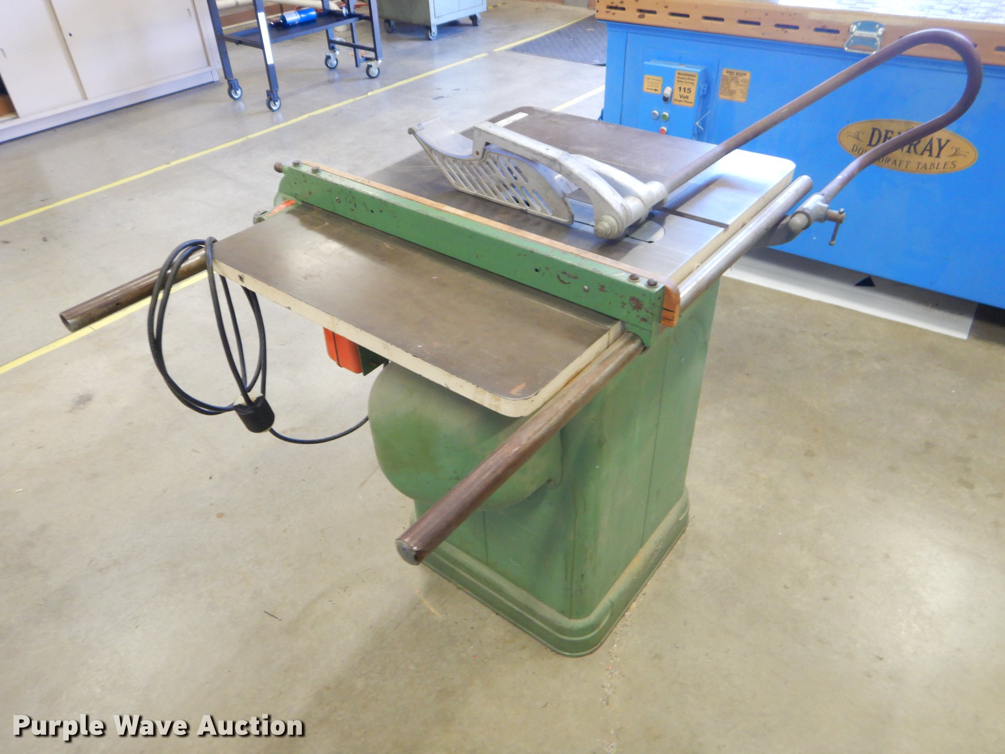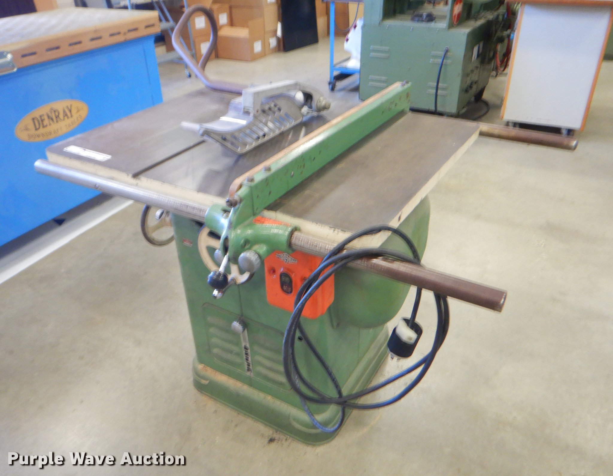 Purple Wave is selling a used Tools in Kansas. This item is a Delta table saw with the following: 46" x 36" x 38", Three phase, Steel construction, Serial 119-5091