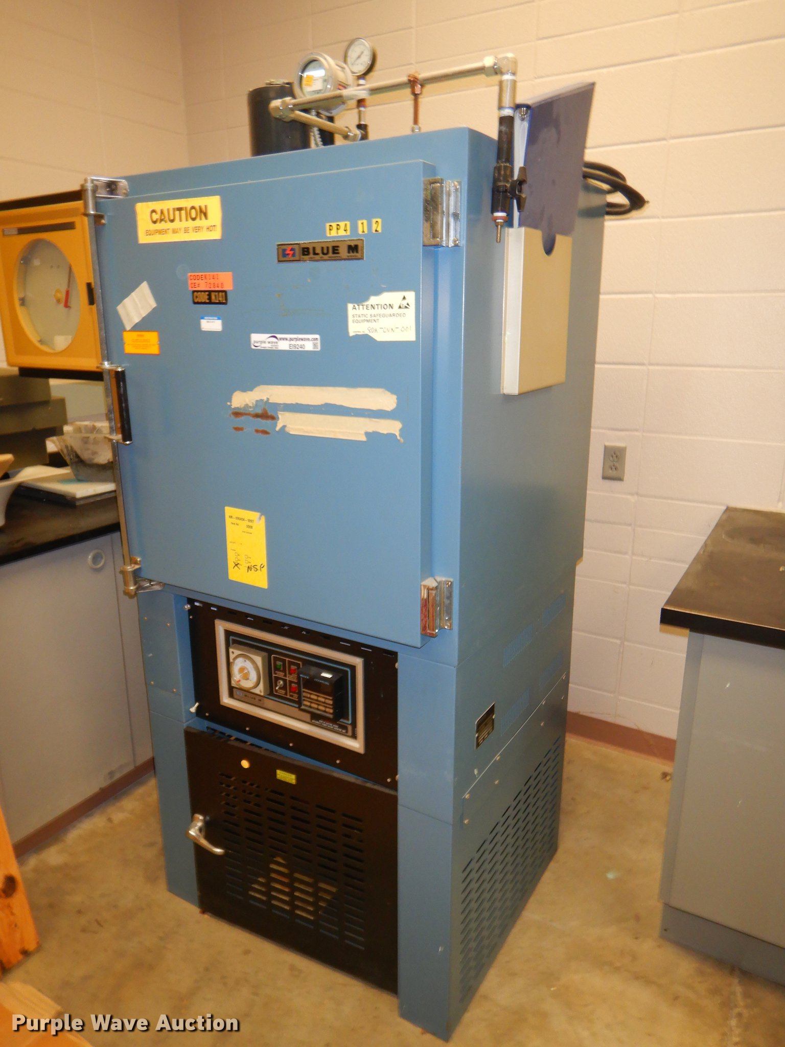 Purple Wave is selling a used Tools in Kansas. This item is a Blue M V0-19C vacuum oven with the following: 33" x 31" x 75", Single phase, 208-240V line voltage, 392 degree Fahrenheit temperature range, Unknown operating condition, Serial V-175