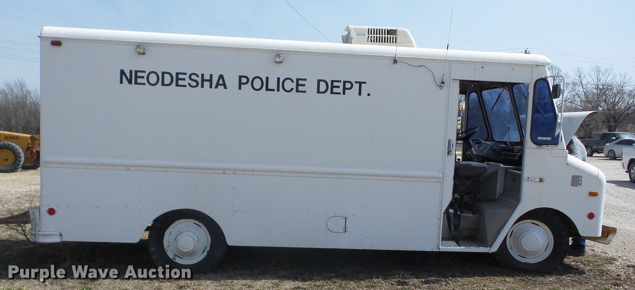 1973 Chevrolet delivery van. 38,930 miles on odometer, 454 C.I.D. eight cylinder gas engine, Four speed manual transmission, Two speed rear end, AC and heat, Olson body, 8-19.5 tires, Battery needs to be replaced. Kansas title. CPT323F109607. City of Neodesha. 1407 N 8th St. Neodesha, KS 66757
