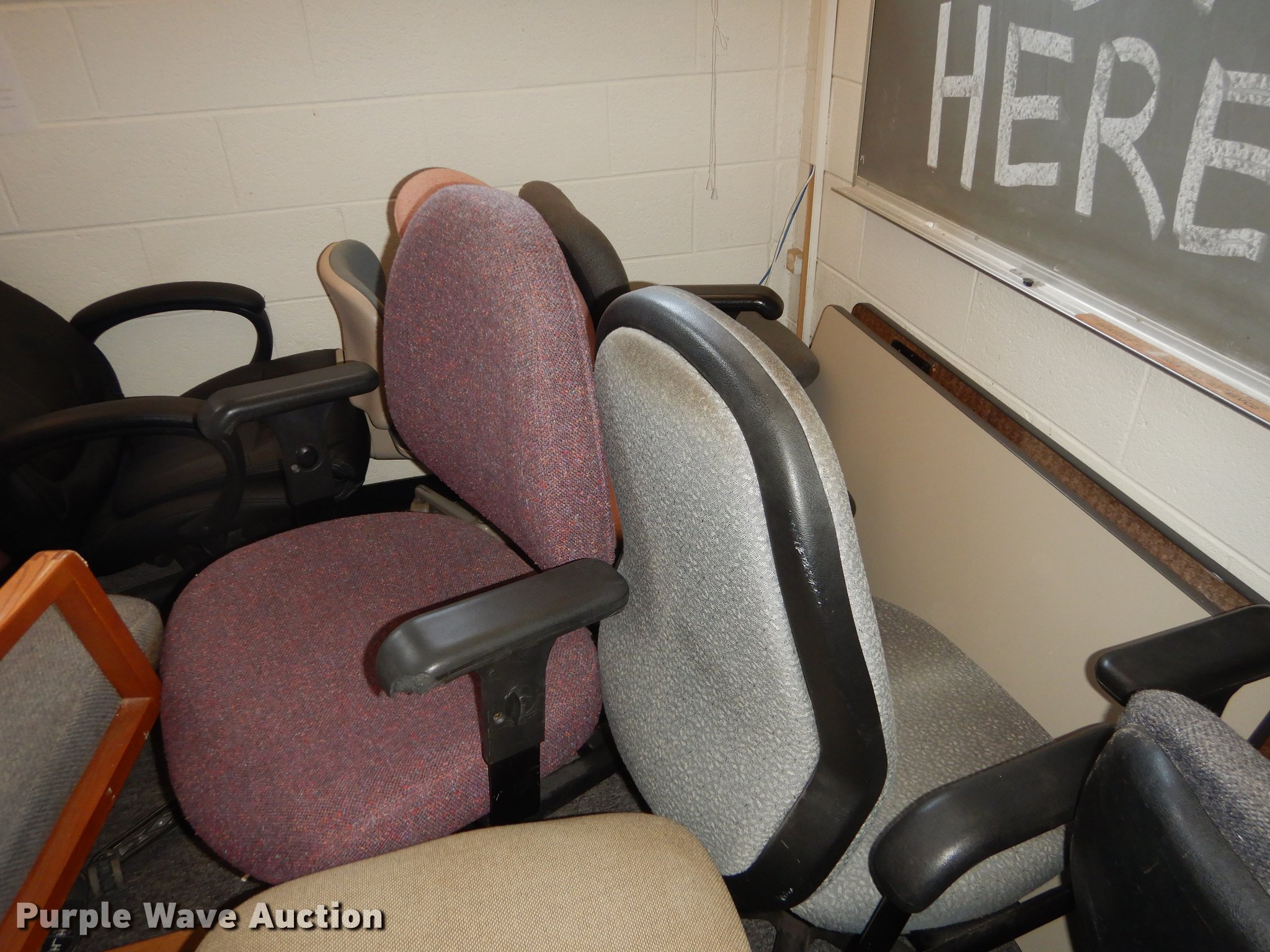 Purple Wave is selling a used Furniture in Kansas. This item is a Approximately 30 chairs with the following: Additional parts, Some damaged