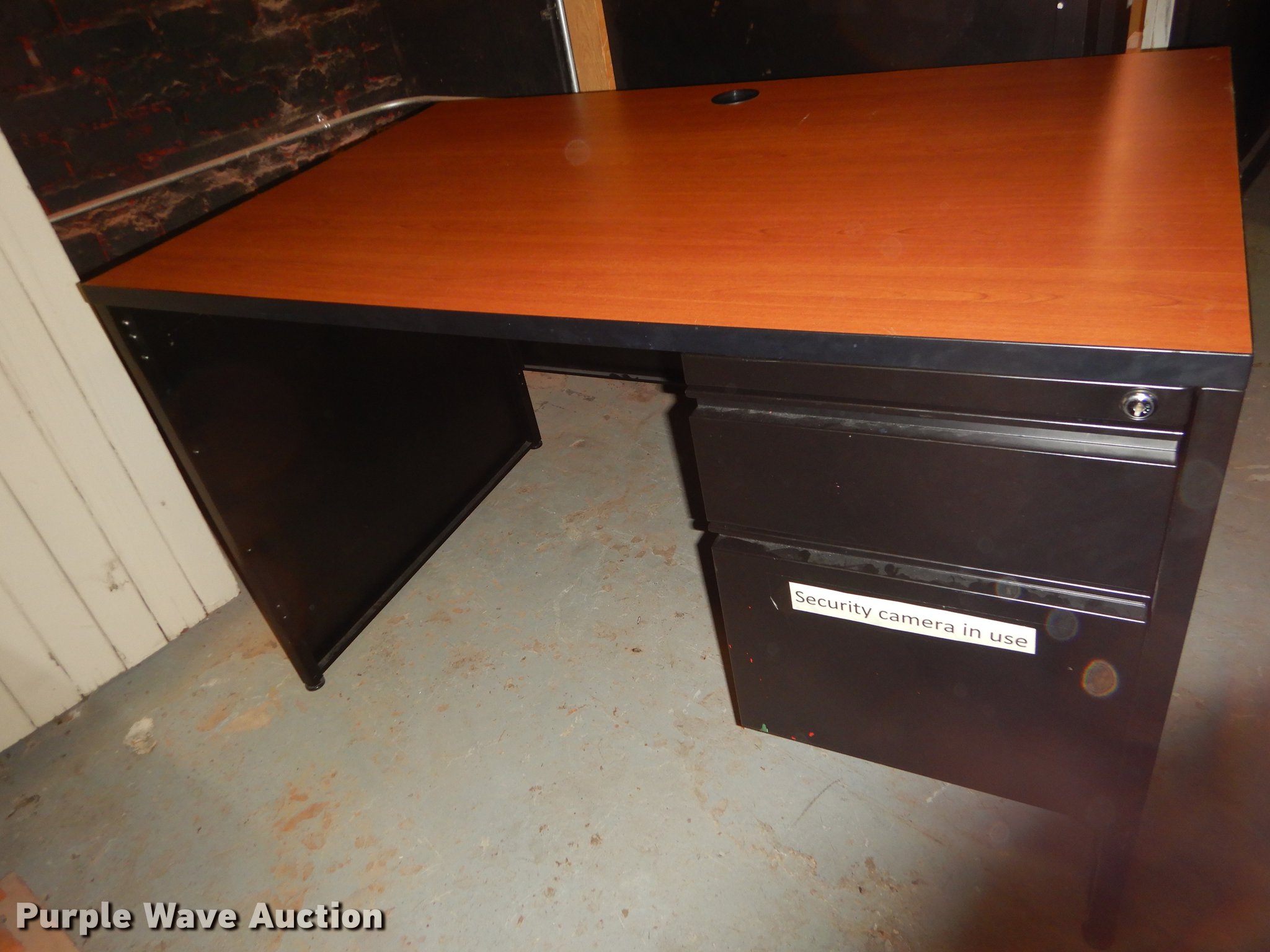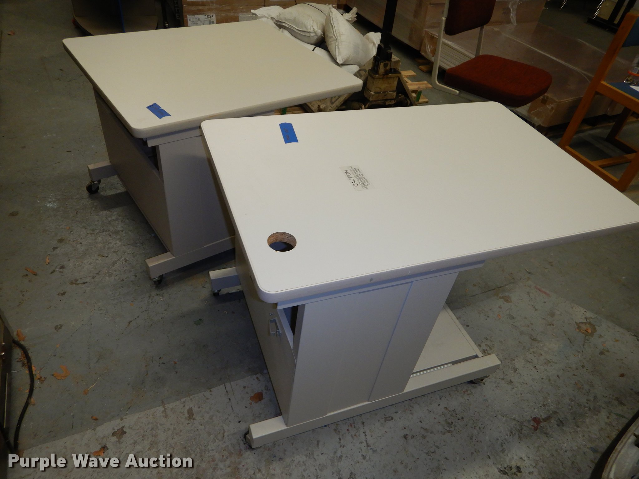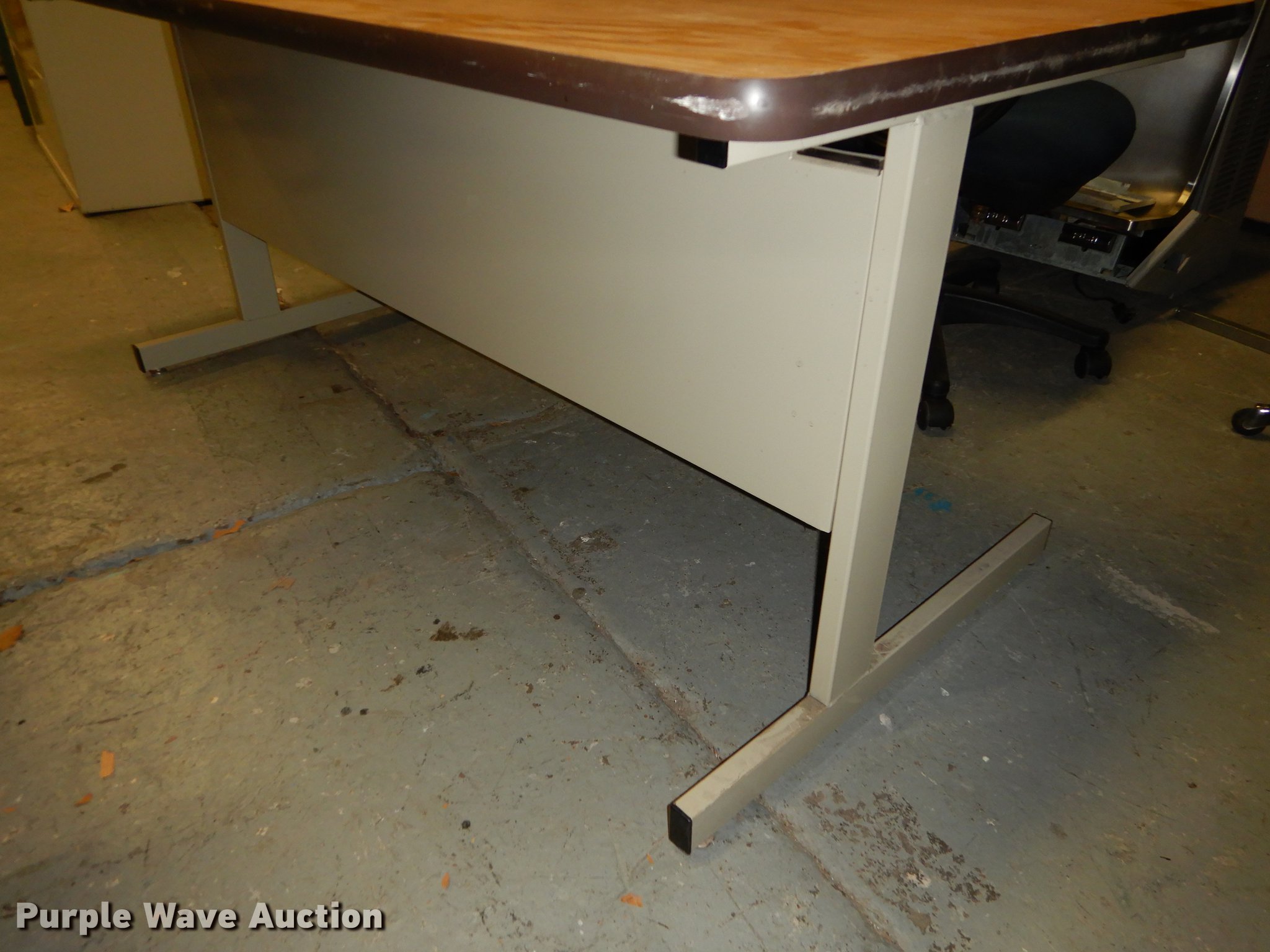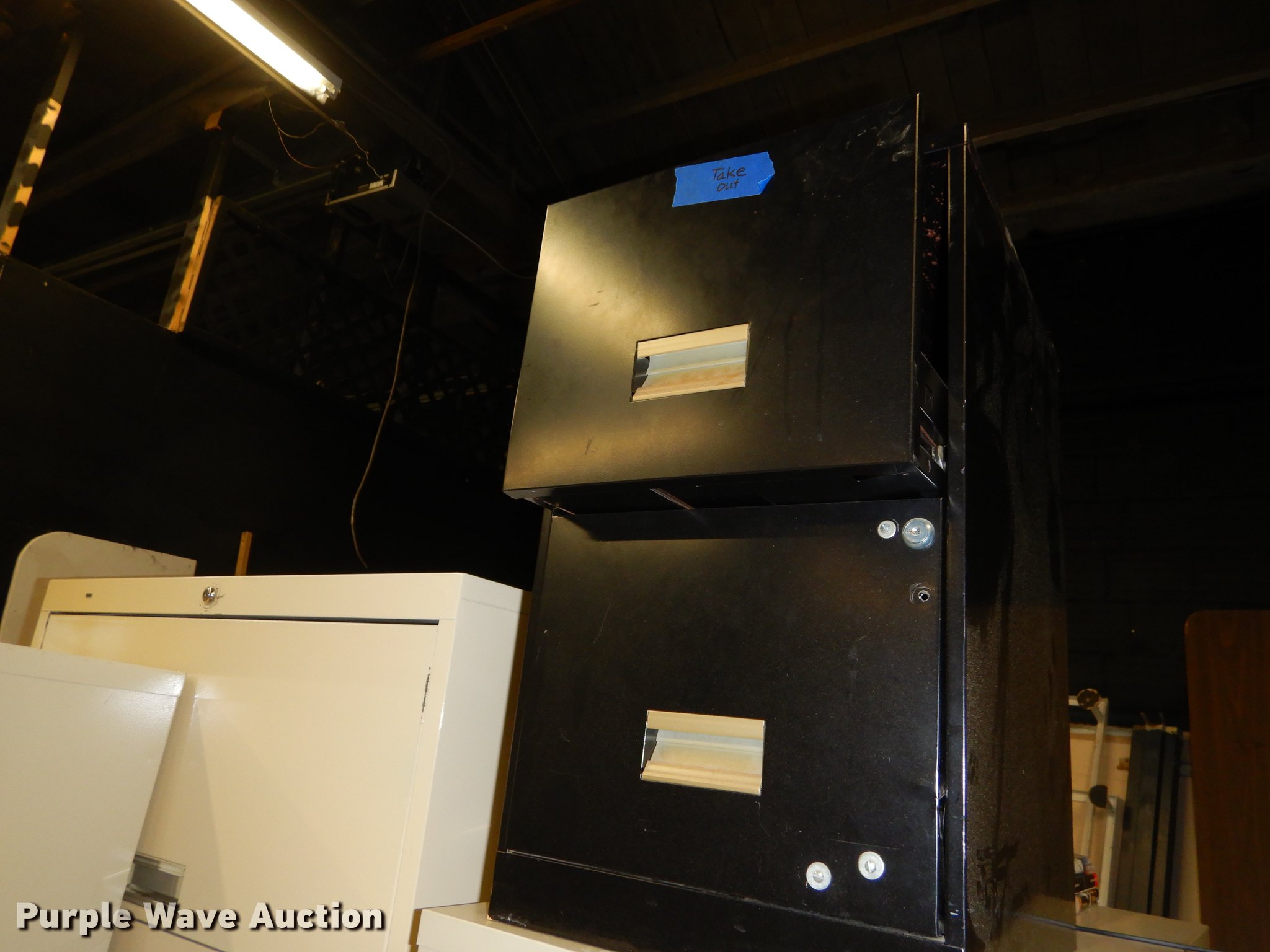 Purple Wave is selling a used Furniture in Kansas. This item is a Office furniture with the following: Wood shelving, File cabinets, Vertical, Lateral, Rolling audio equipment carts, Book/magazine rack, 3M paper shredder, Non-operational, Wood table, Tables, Desks