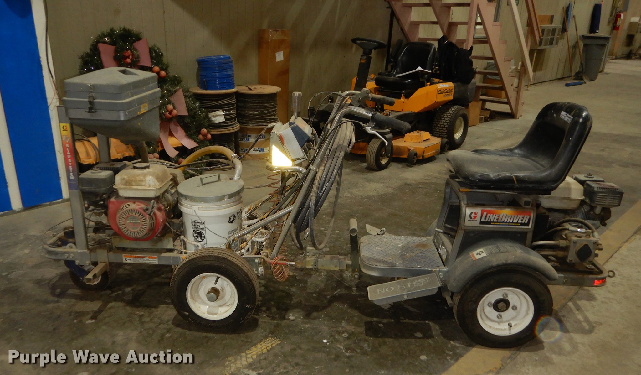 Purple Wave is selling a used Tools in Kansas. This item is a Double line striper unit with the following: EZ bead system, Honda 5.5 HP gas engine, Graco line driver, Honda 5.5 HP gas engine, Line Lazer 5900, Smart control signal tracking system, Work light, Parking brake, 4.80-8 tires, Last used one year ago