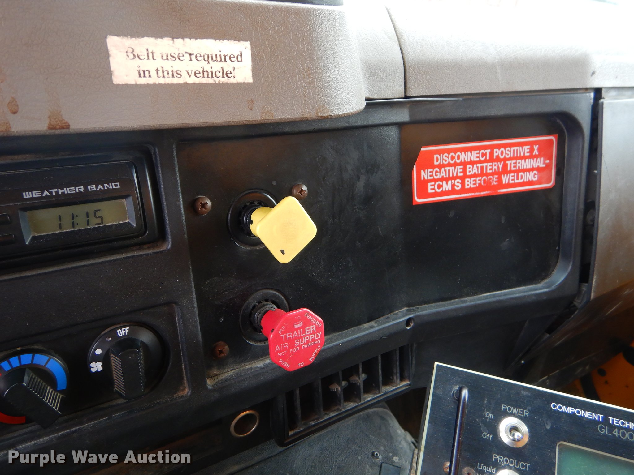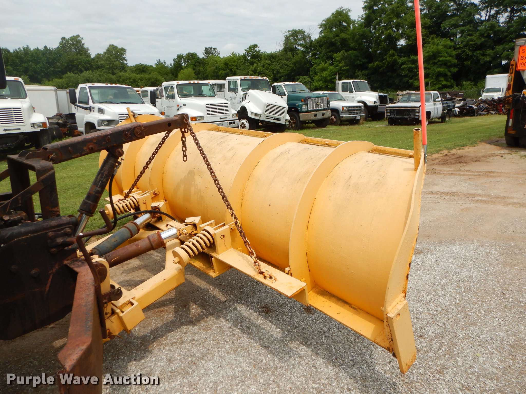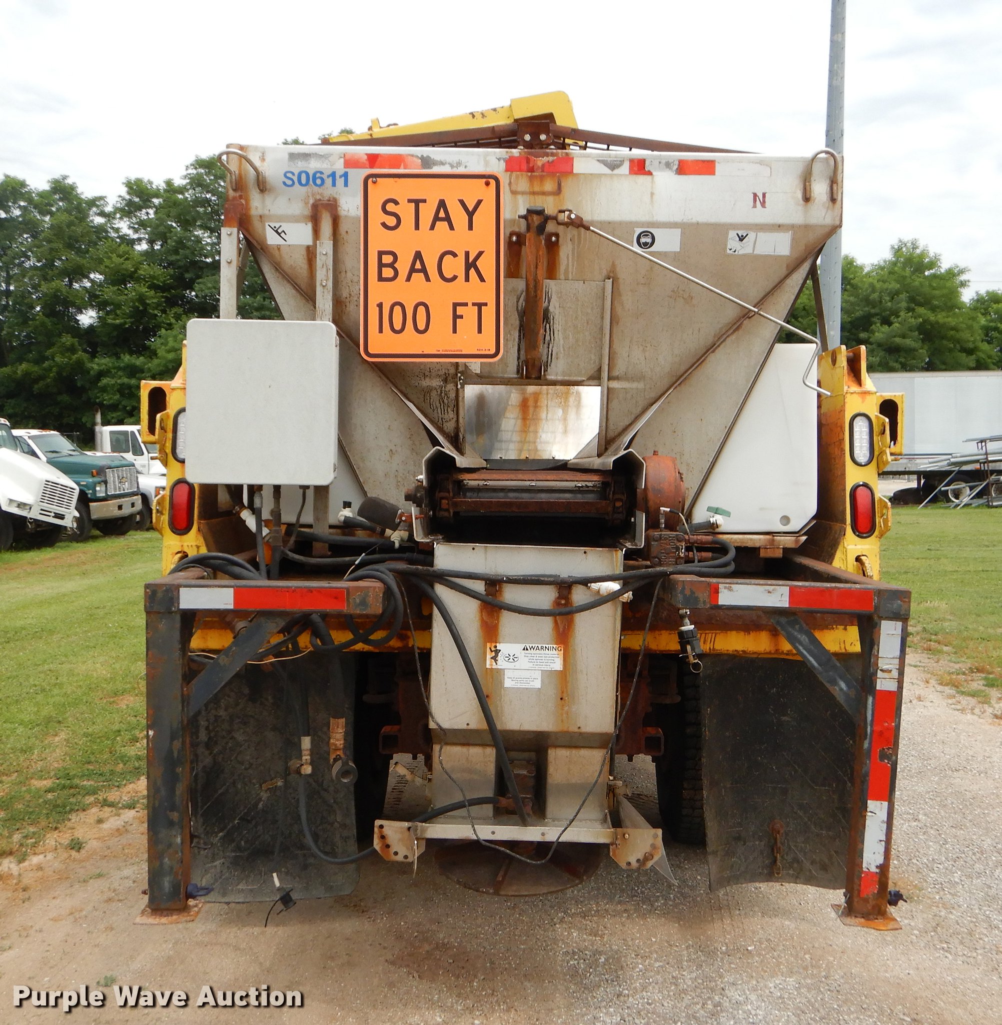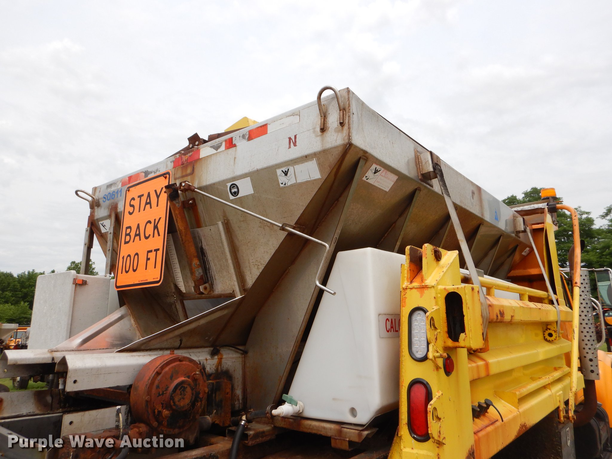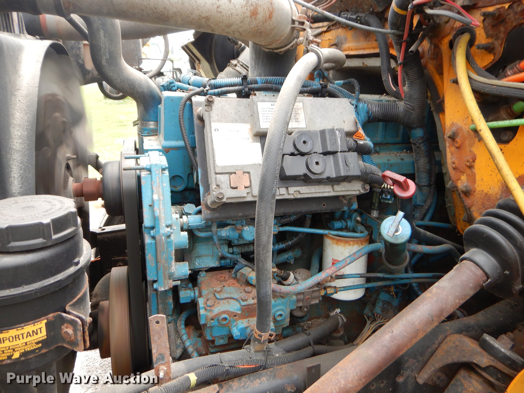 Purple Wave is selling a used Construction Dump Truck in Missouri. This item is a 2001 International 4900 dump truck with the following: 160,512 miles on odometer, 8,701 hours on meter, International DT466 7.6L L6 turbo diesel engine, Automatic transmission, Single axle, AC and heat, Cruise, AM/FM/Weatherband, Heated mirrors, Air suspension seat, PTO, 10'L x 96"W steel dump bed, 26" side height, Single ram hoist, Manual operated end gate, Roll tarp, 134"W snow plow, Swenson spreader, 150 gallon fluid tanks, Single fuel tank, Pintle hitch, 176" wheelbase, Spring suspension, Air brakes, 11R22.5 tires, Unknown operating condition, MODOT ID 6246