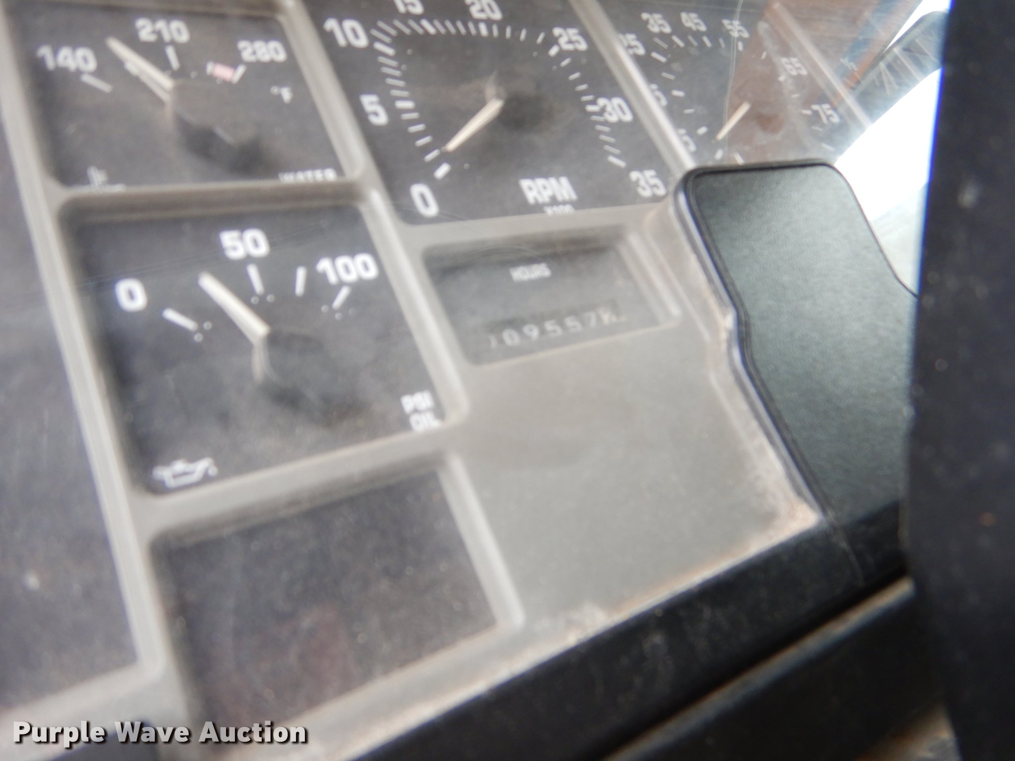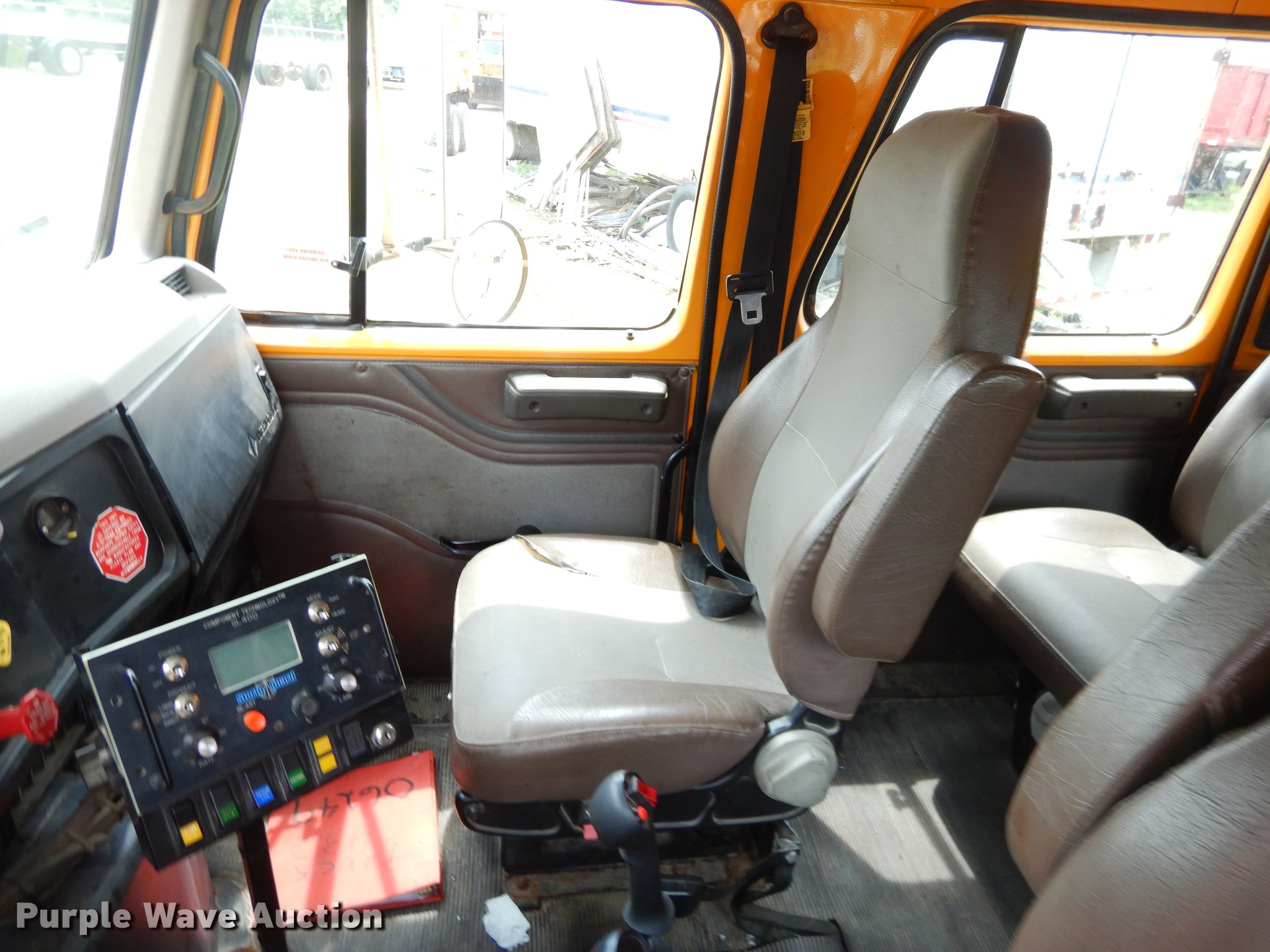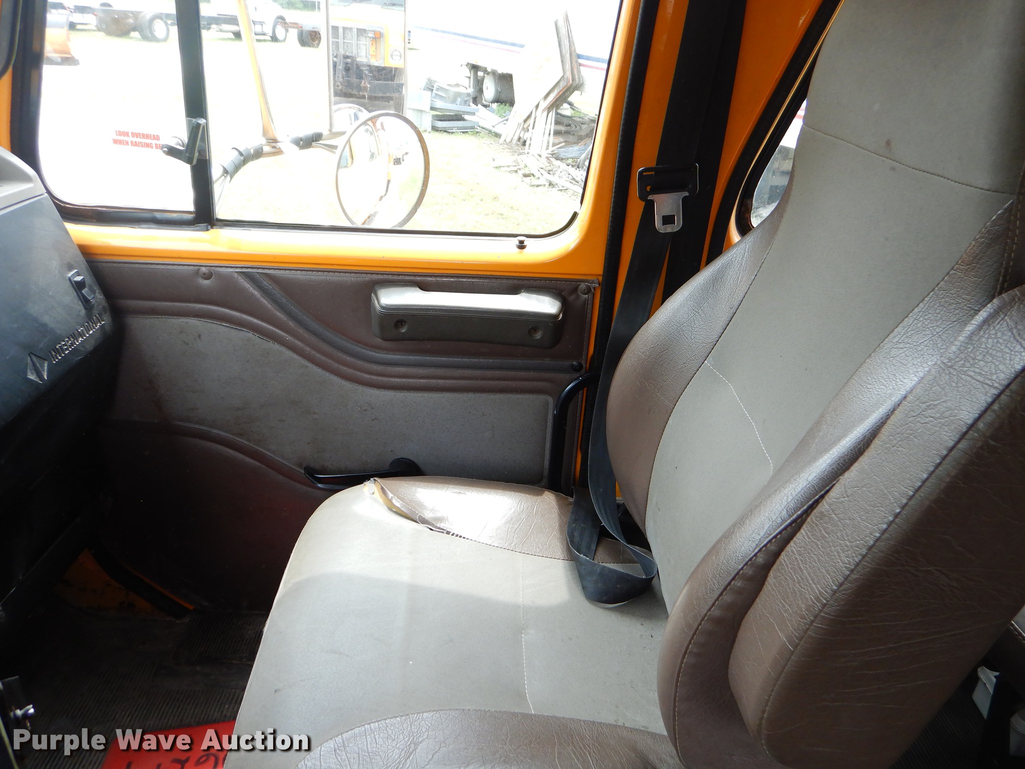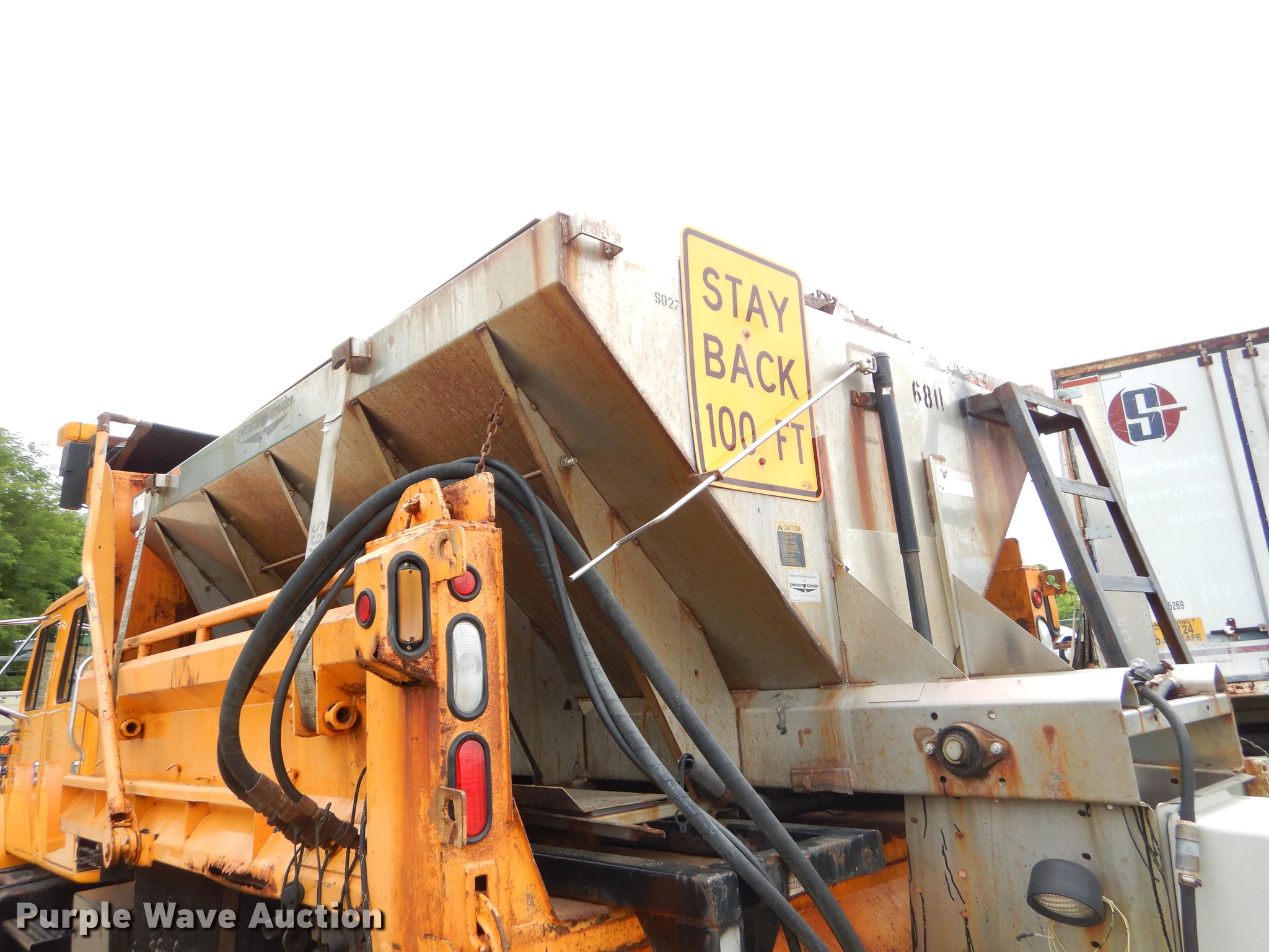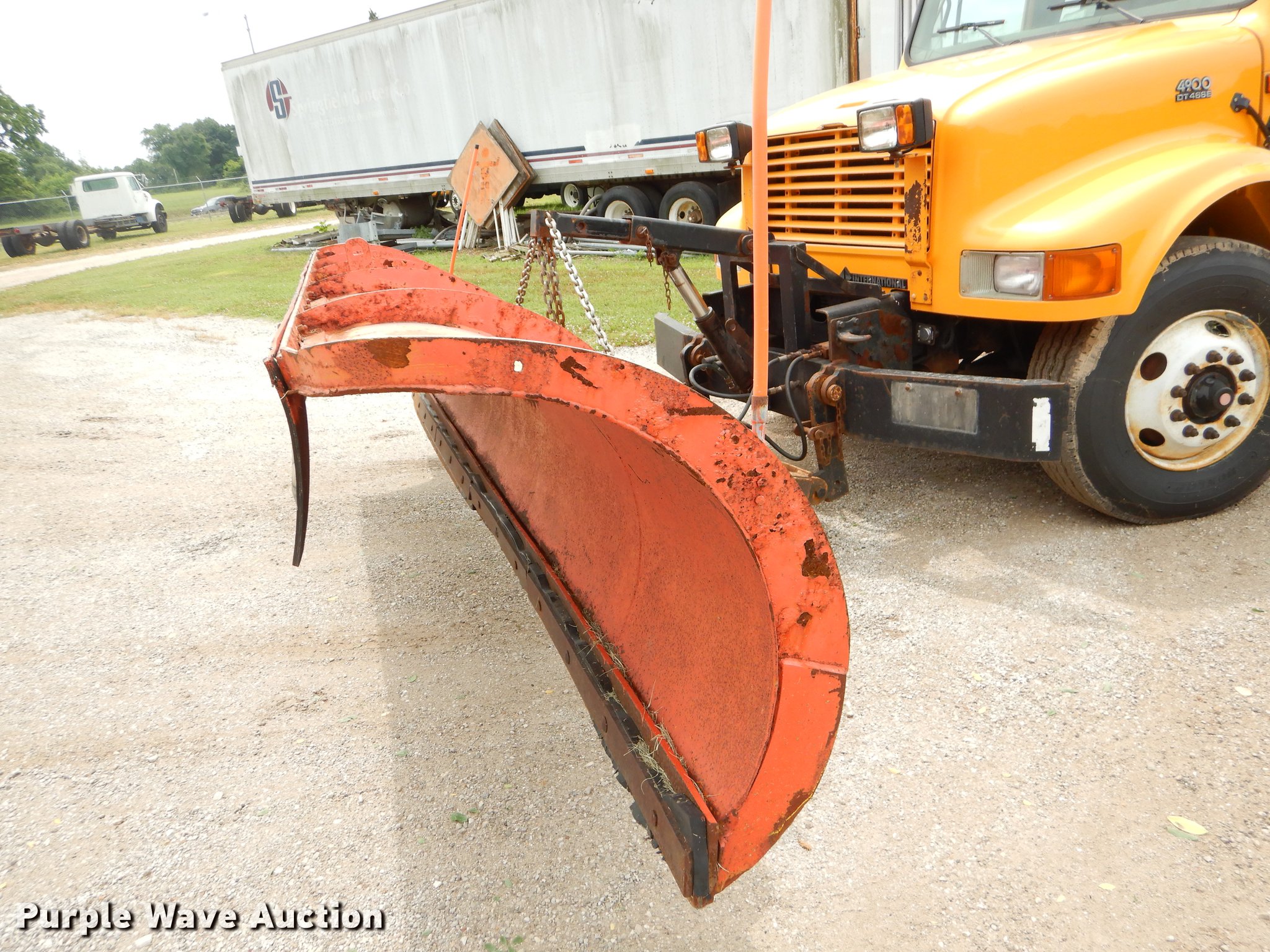 Purple Wave is selling a used Construction Dump Truck in Missouri. This item is a 2002 International 4900 Crew Cab dump truck with the following: 148,491 miles on odometer, 9,557 hours on meter, International DT466 7.6L L6 turbo diesel engine, Automatic transmission, Single axle, AC and heat, Cruise, AM/FM/Weatherband, Power windows and mirrors, Air suspension seat, PTO, 10'L x 96"W steel dump bed, 24" side height, Single ram hoist, Ladder, Swenson spreader, 165"W snow plow, Single fuel tank, Pintle hitch, 214" wheelbase, Spring suspension, Air brakes, 315/80R22.5 tires, 11R22.5 rear tires, Unknown operating condition, MODOT ID 6811