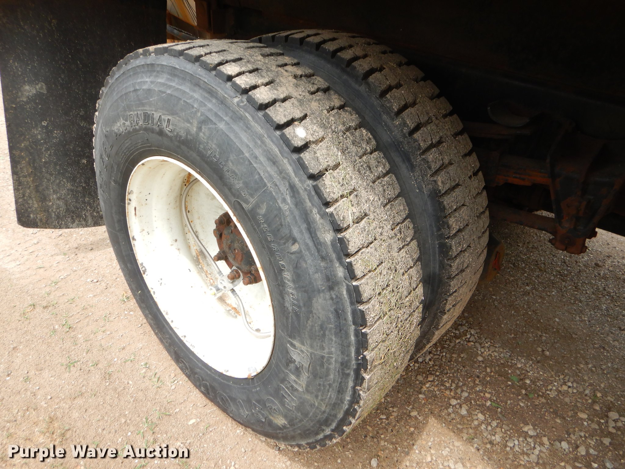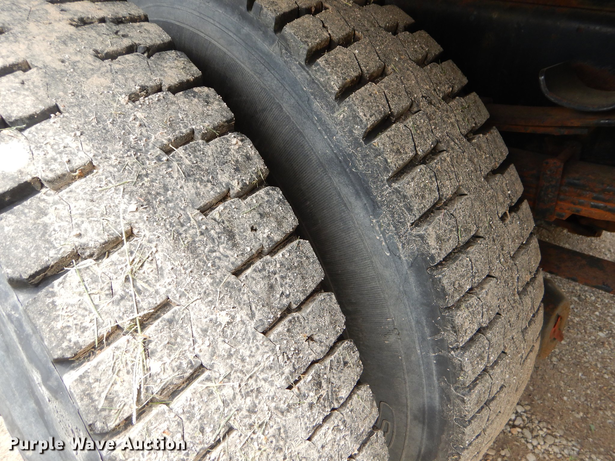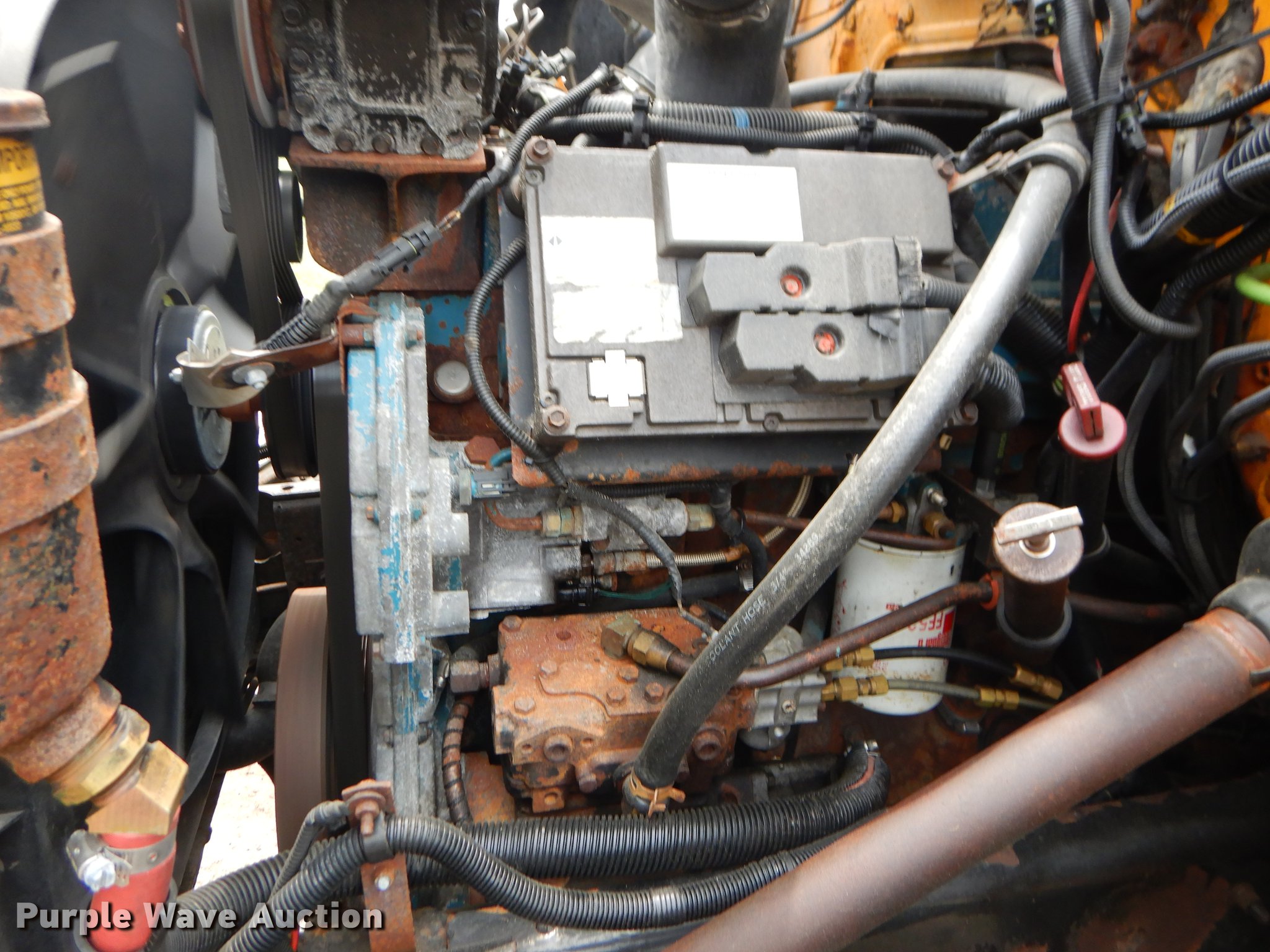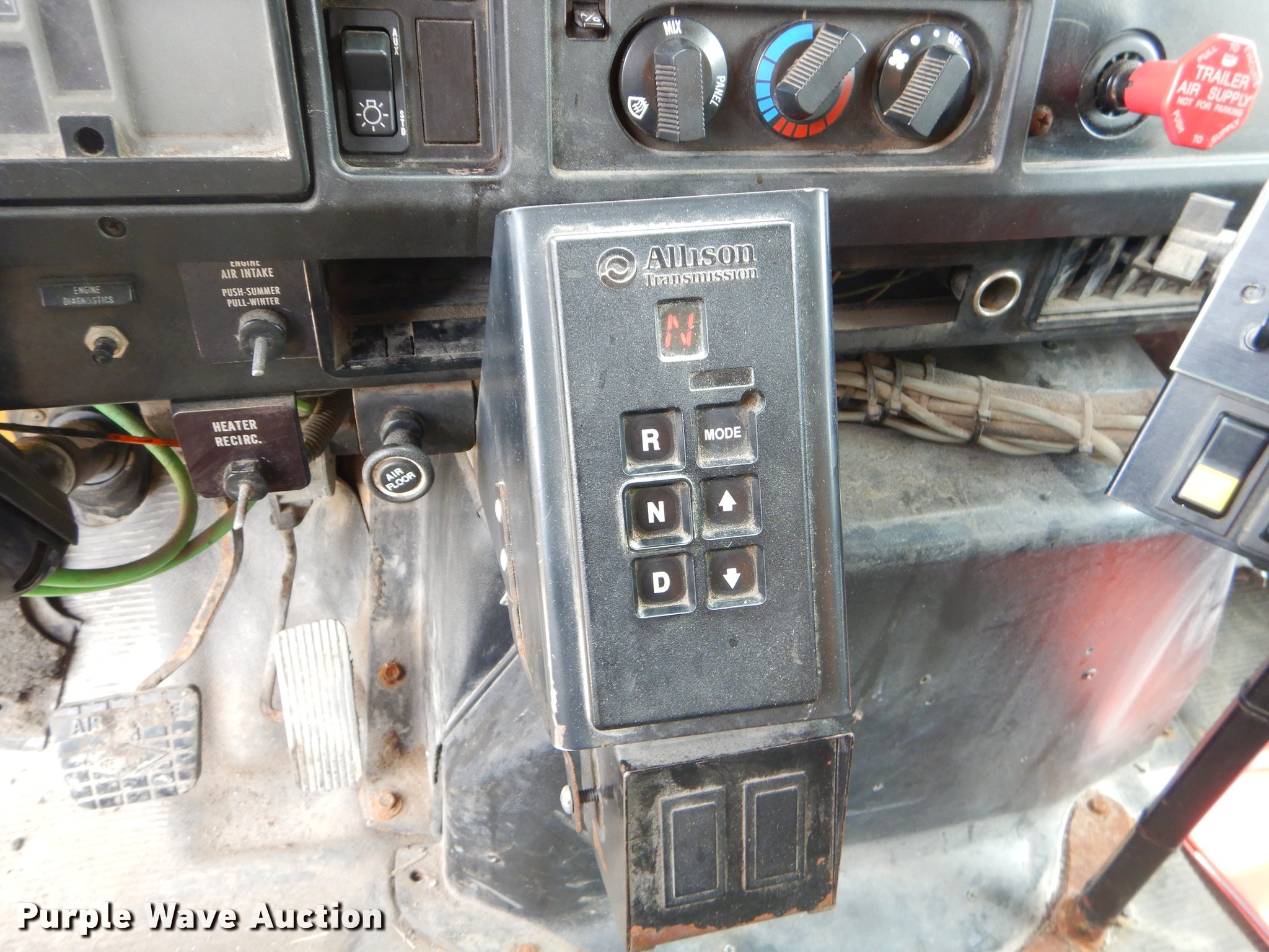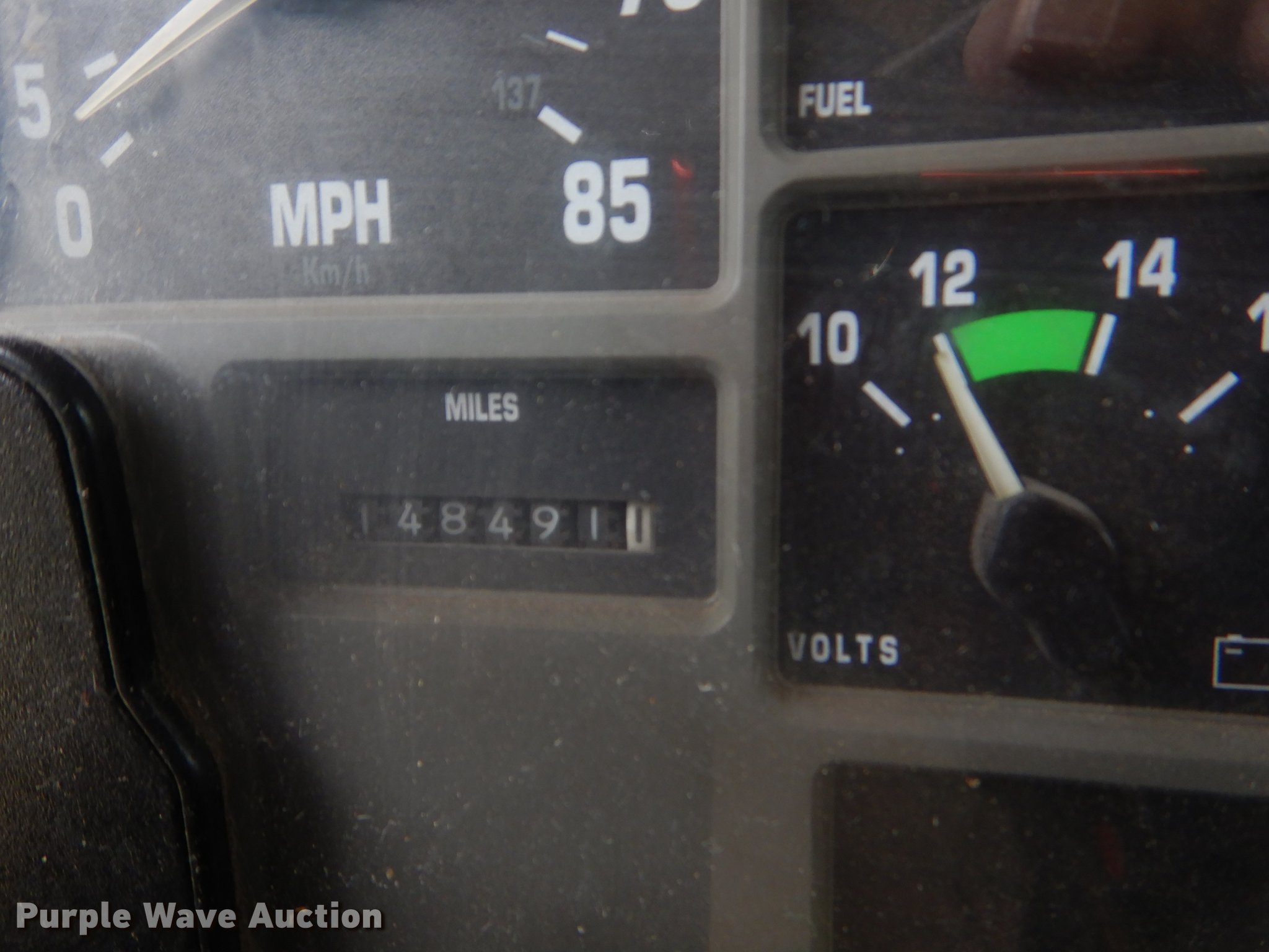 Purple Wave is selling a used Construction Dump Truck in Missouri. This item is a 2002 International 4900 Crew Cab dump truck with the following: 148,491 miles on odometer, 9,557 hours on meter, International DT466 7.6L L6 turbo diesel engine, Automatic transmission, Single axle, AC and heat, Cruise, AM/FM/Weatherband, Power windows and mirrors, Air suspension seat, PTO, 10'L x 96"W steel dump bed, 24" side height, Single ram hoist, Ladder, Swenson spreader, 165"W snow plow, Single fuel tank, Pintle hitch, 214" wheelbase, Spring suspension, Air brakes, 315/80R22.5 tires, 11R22.5 rear tires, Unknown operating condition, MODOT ID 6811