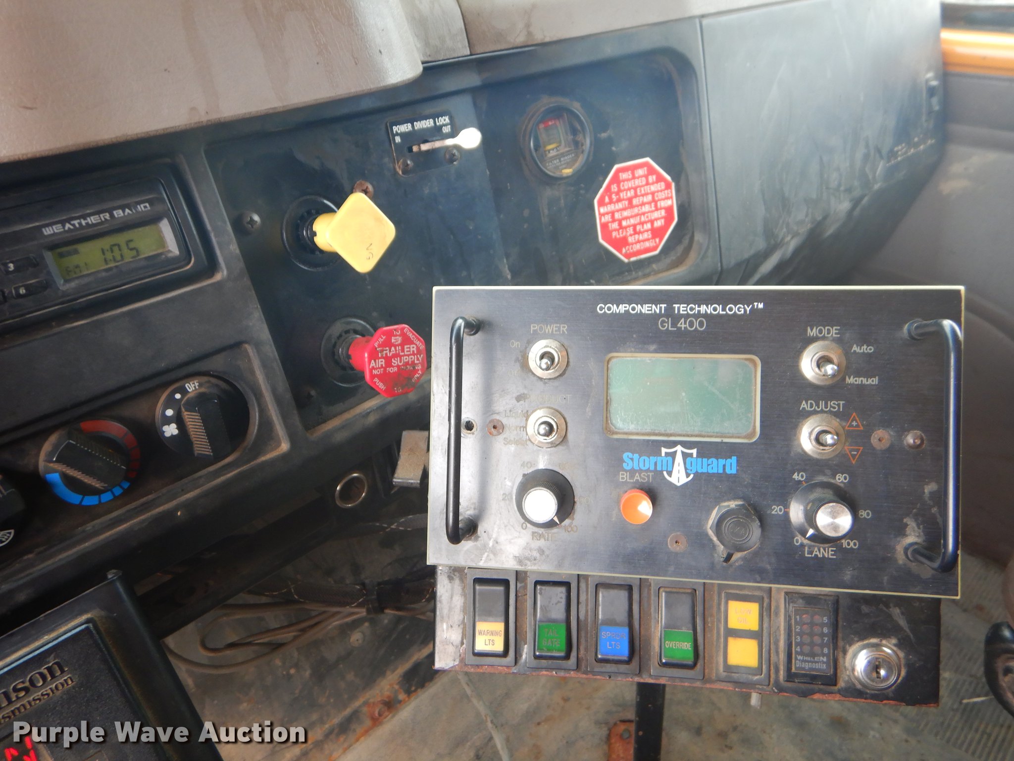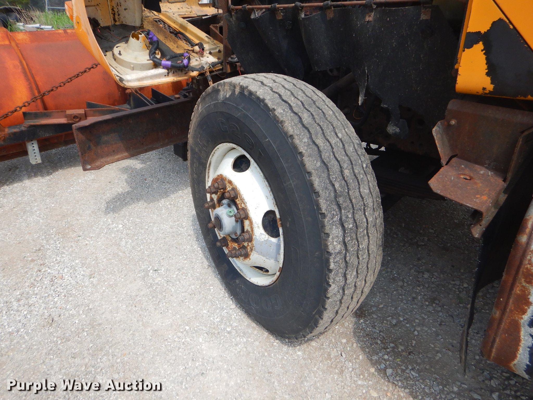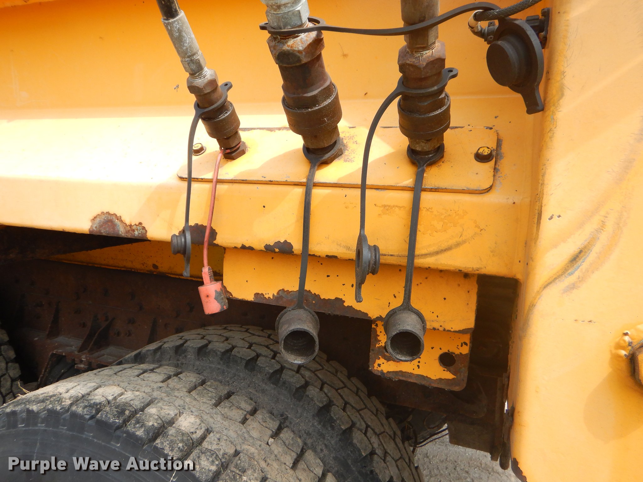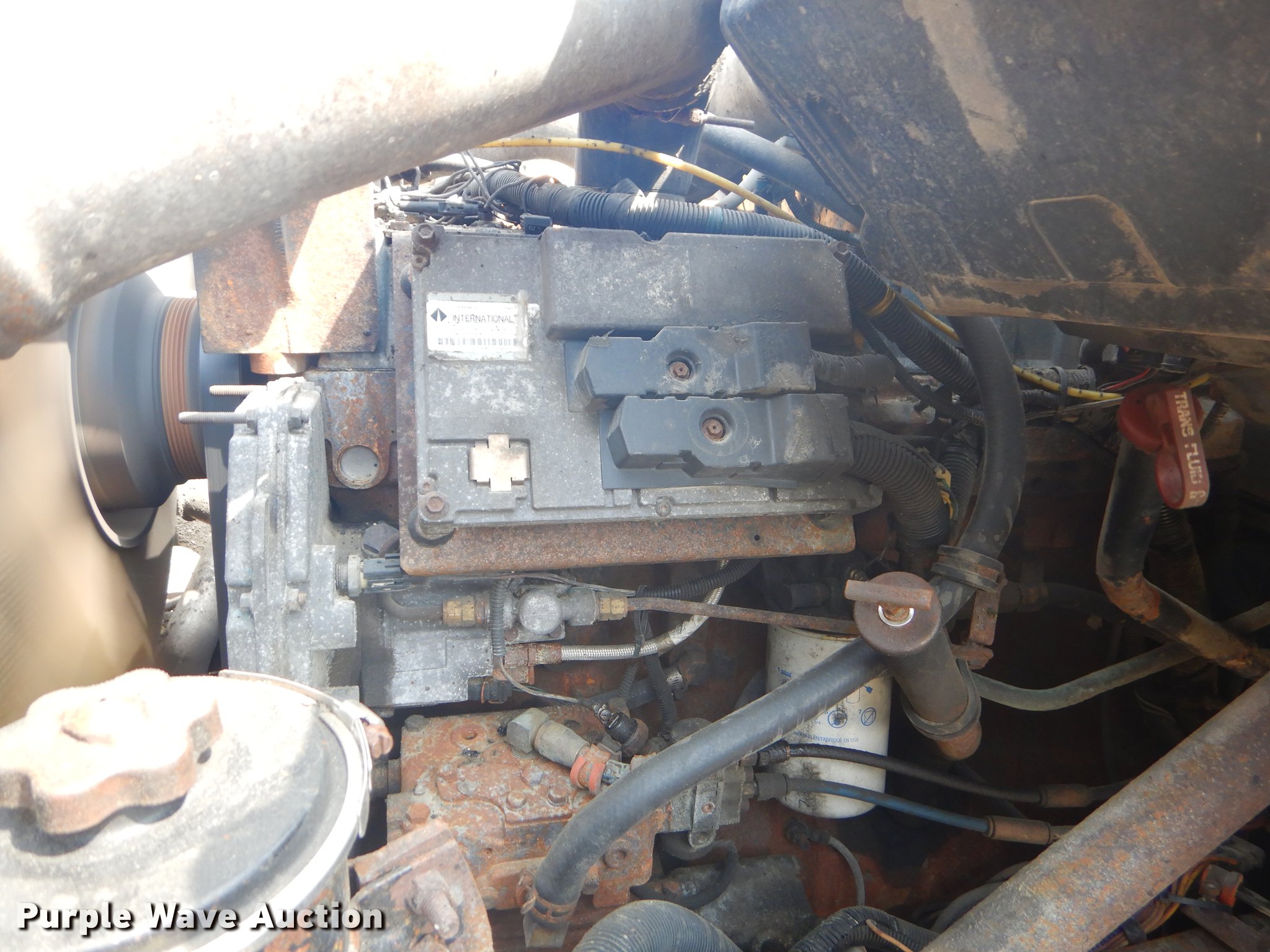 Purple Wave is selling a used Construction Dump Truck in Missouri. This item is a 2002 International 2554 dump truck with the following: 159,362 miles on odometer, 8,360 hours on meter, International DT530 8.7L L6 turbo diesel engine, Automatic transmission, Inter-axle differential lock, Tandem axle, AC and heat, Cruise, AM/FM/Weatherband, Power windows and mirrors, Heated mirrors, Air suspension seat, PTO, 16'L x 102"W steel dump bed, Single ram hooist, Roll tarp, 164"W snow plow, Swenson spreader, Mid-mounted grader blade, Single fuel tank, 216" wheelbase, Walking beam suspension, Air brakes, 315/80R22.5 front tires, 11R22.5 rear tires, Unknown operating condition, MODOT ID 6704