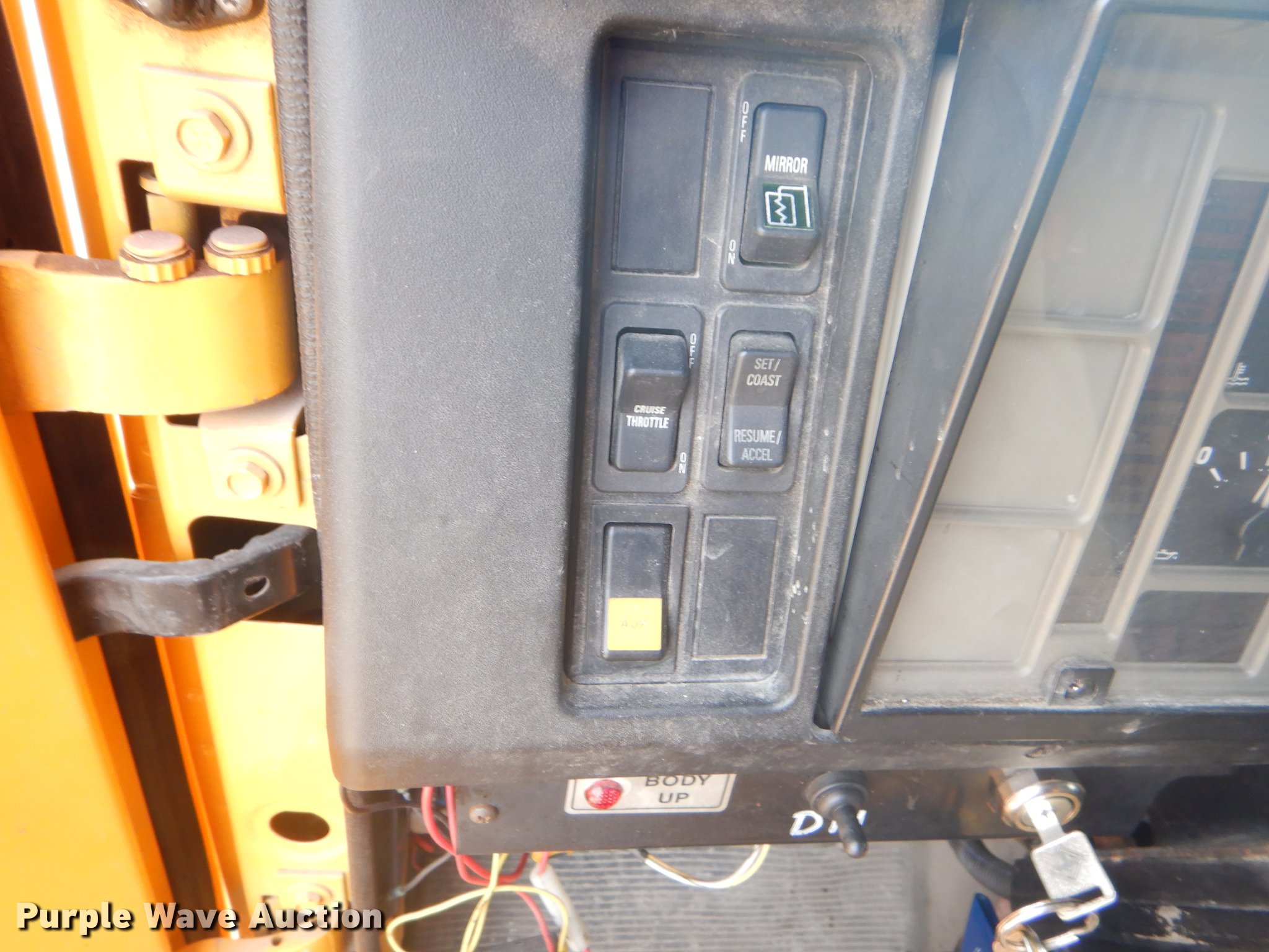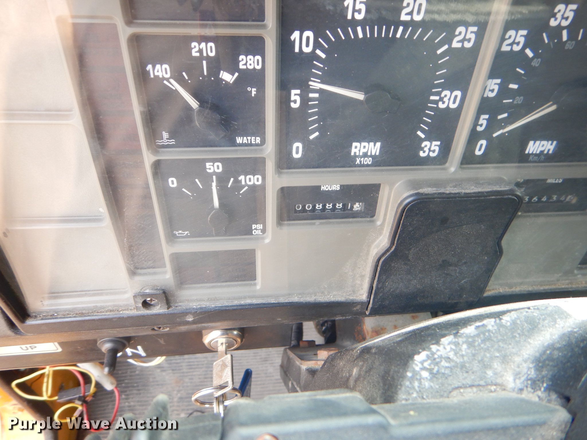 Purple Wave is selling a used Construction Dump Truck in Missouri. This item is a 2001 International 4900 Crew Cab dump truck with the following: 136,434 miles on odometer, 8,880 hours on meter, International DT466 7.6L L6 turbo diesel engine, Automatic transmission, Single axle, AC and heat, Cruise, AM/FM/Weatherband, Heated mirrors, Air suspension seat, PTO, 10'L x 96"W steel dump bed, 12" side height, Single ram hoist, Toolboxes, Swenson spreader, 150 gallon fluid tanks, 132"W snow plow, Single fuel tank, Pintle hitch, 206" wheelbase, Spring suspnesion, Air brakes, 11R22.5 tires, Unknown operating condition, MODOT ID 6426
