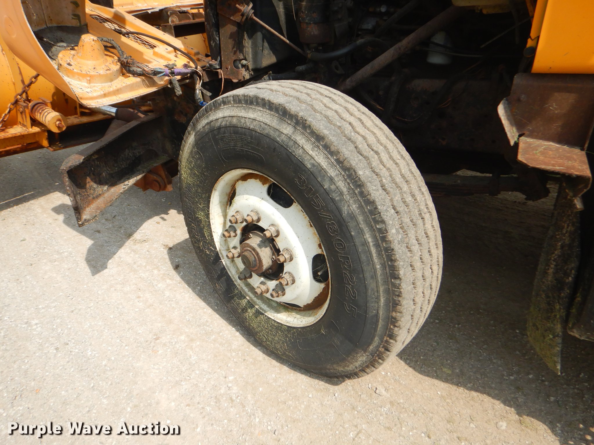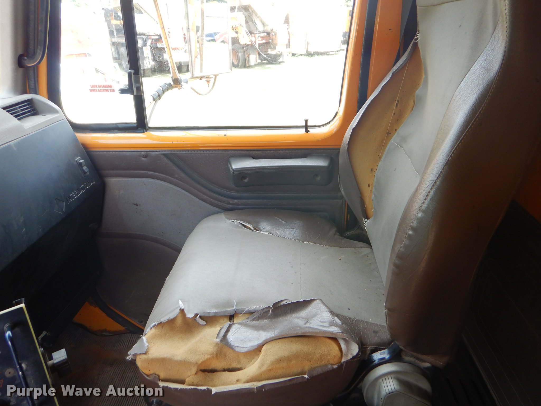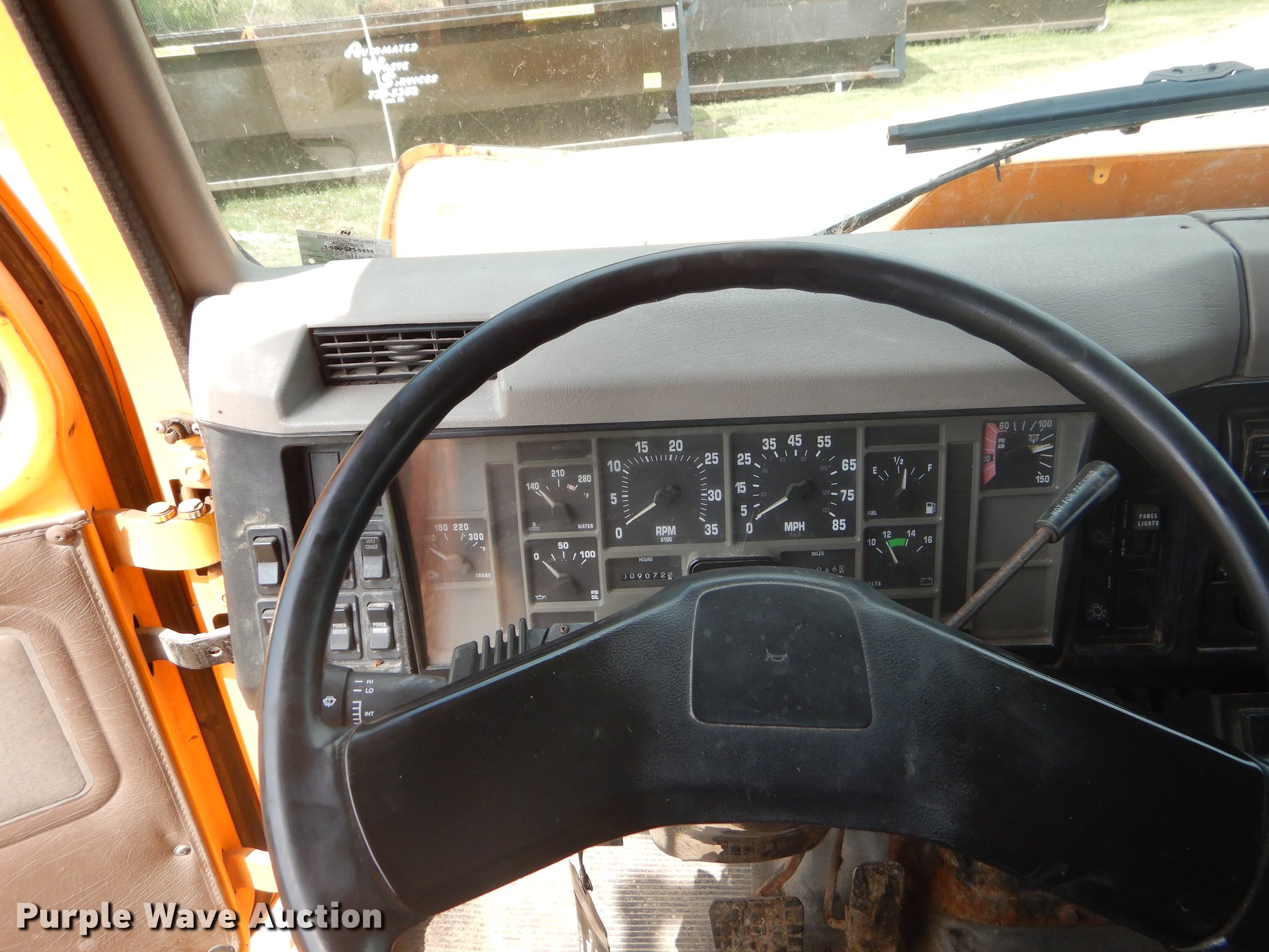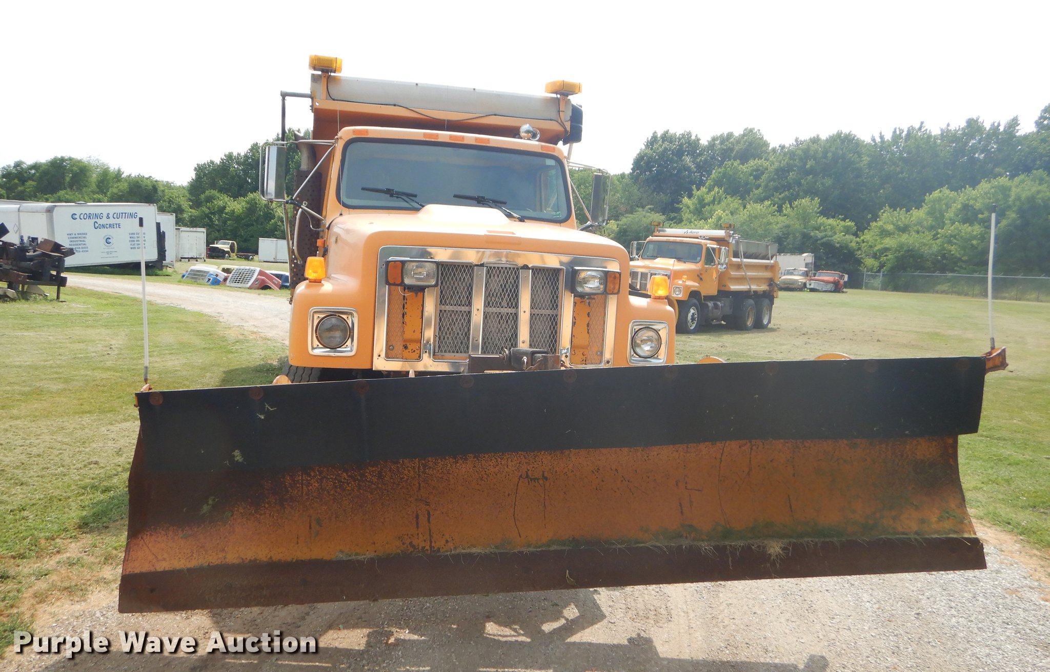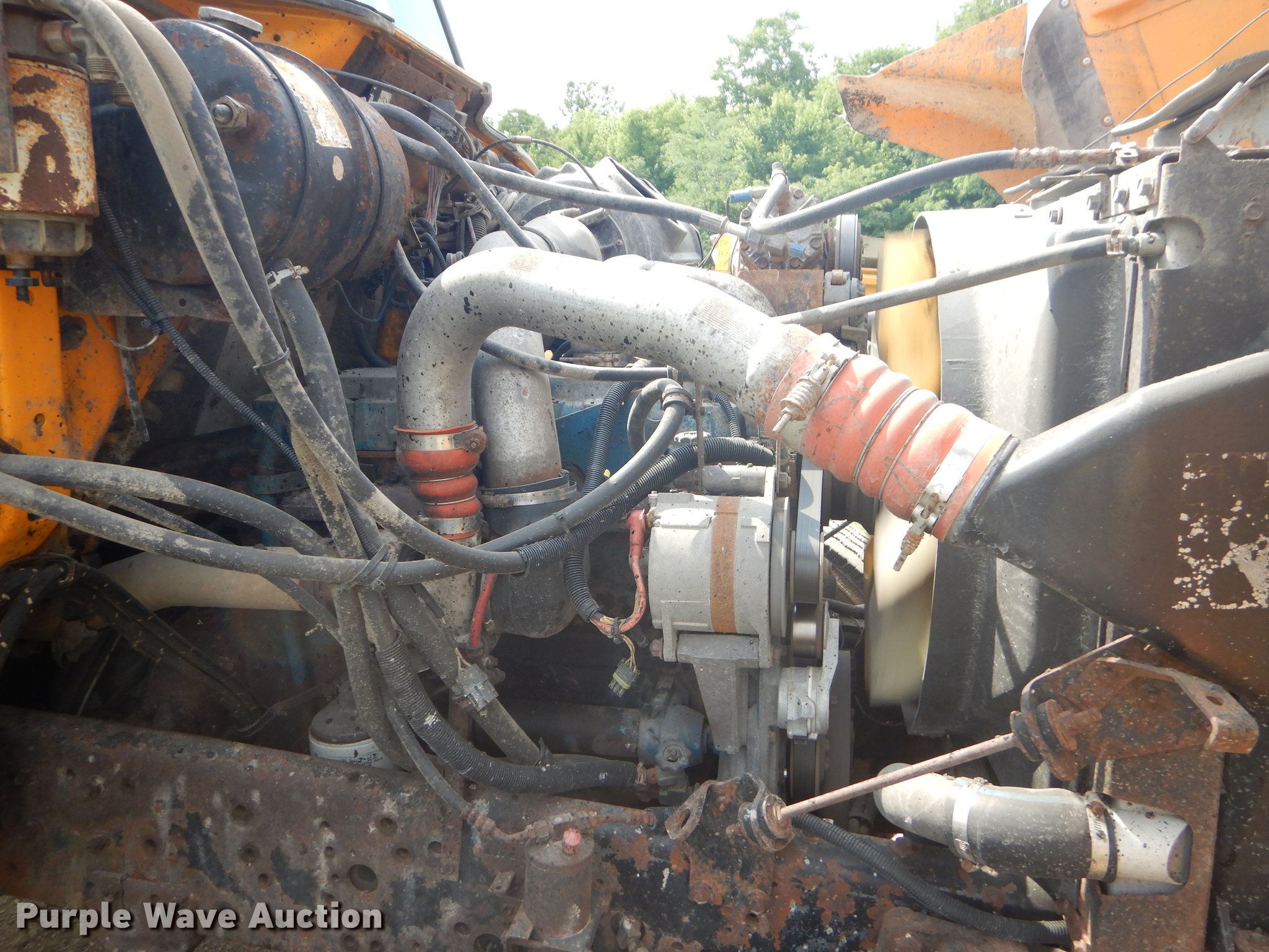 Purple Wave is selling a used Construction Dump Truck in Missouri. This item is a 2002 International 2554 dump truck with the following: 176,046 miles on odometer, 9,071 hours on meter, International DT530 8.7L L6 turbo diesel engine, Automatic transmission, Tandem axle, Inter-axle differential lock, AC and heat, Cruise, AM/FM/weatherband, Power windows, Power and heated mirrors, Air suspension seat, PTO, 16'L x 96"W steel dump bed, 36" side height, Roll tarp, Rear ladder access, 134"W plow, Swenson spreader, Under-mounted adjustable grader blade, Single fuel tank, Walking beam suspension, Air brakes, 216" wheelbase, 315/80R22.5 front tires, 11R22.5 rear tires, Chipped windshield, Unknown operating condition, MODOT ID 6706