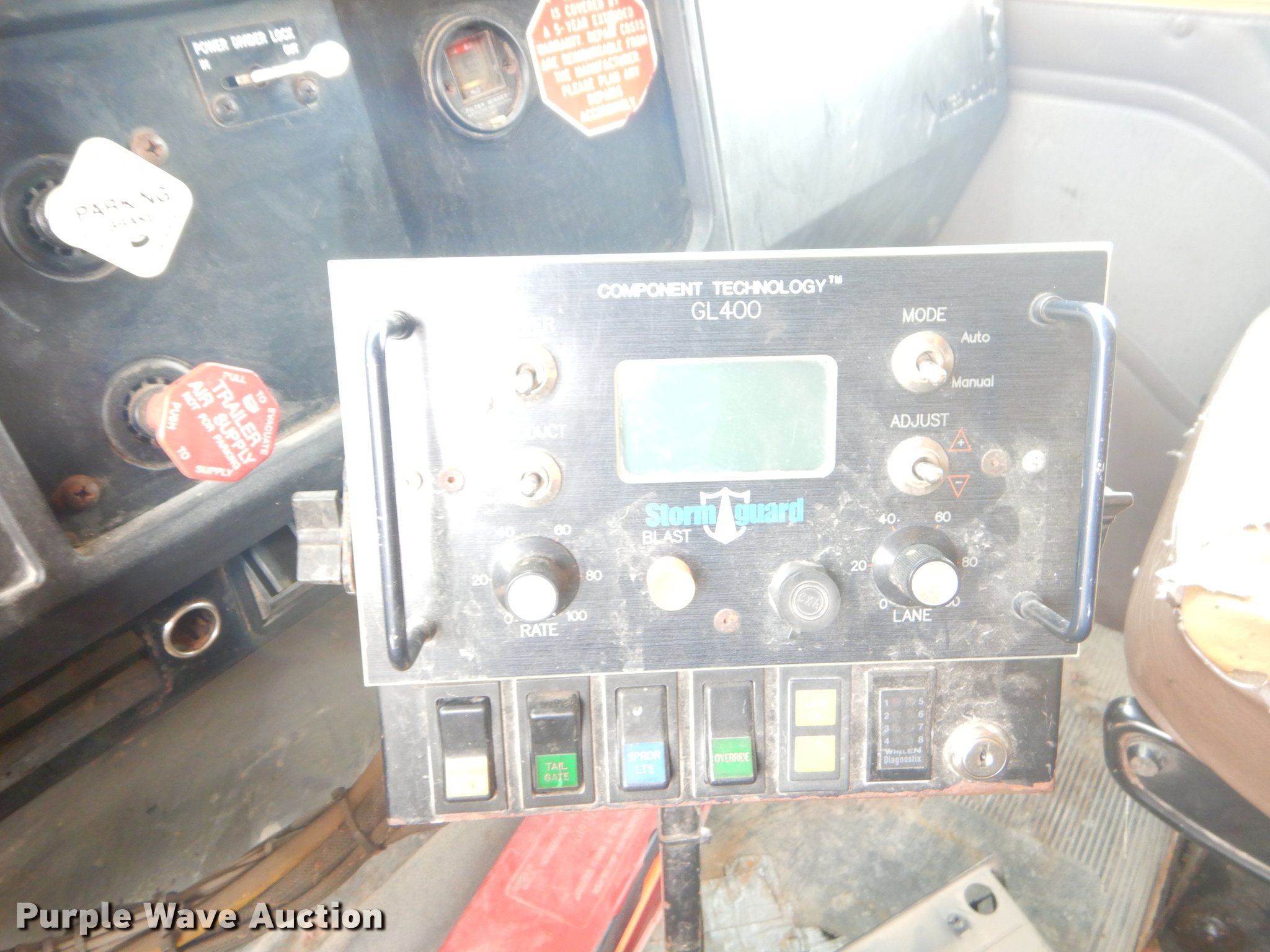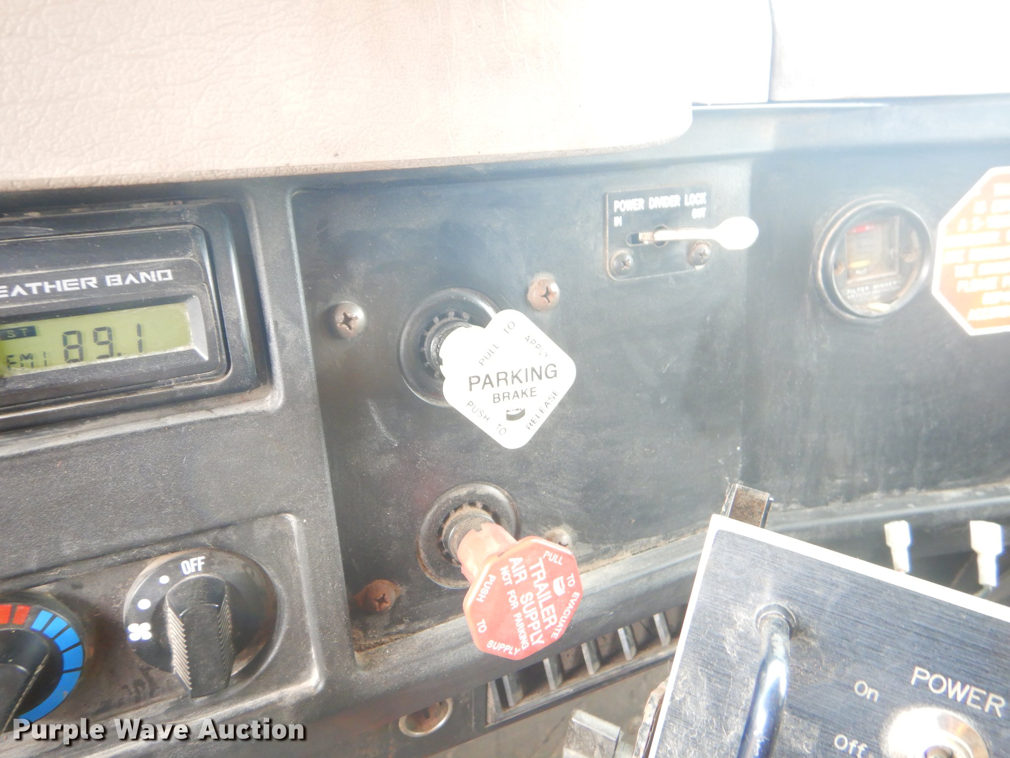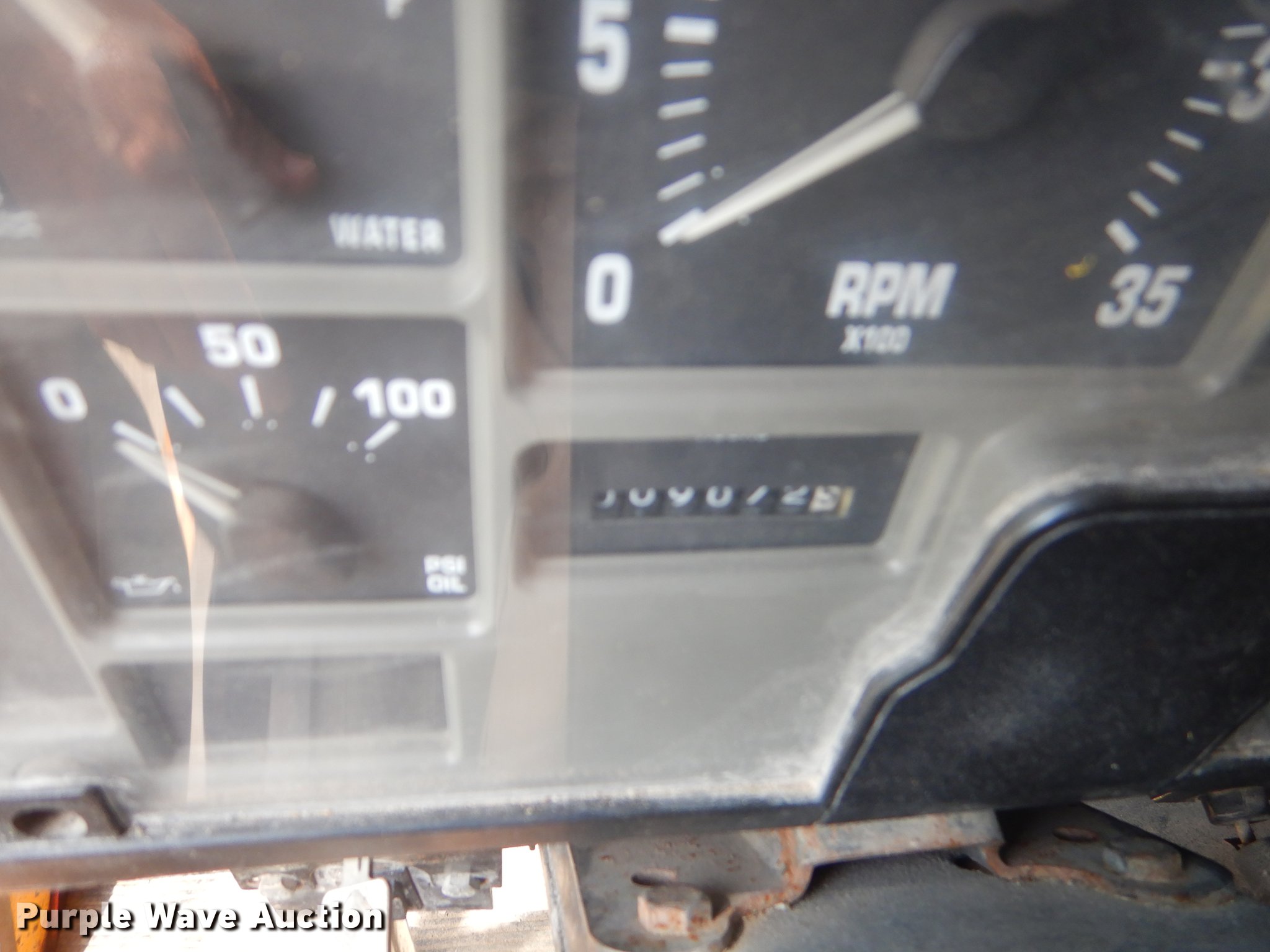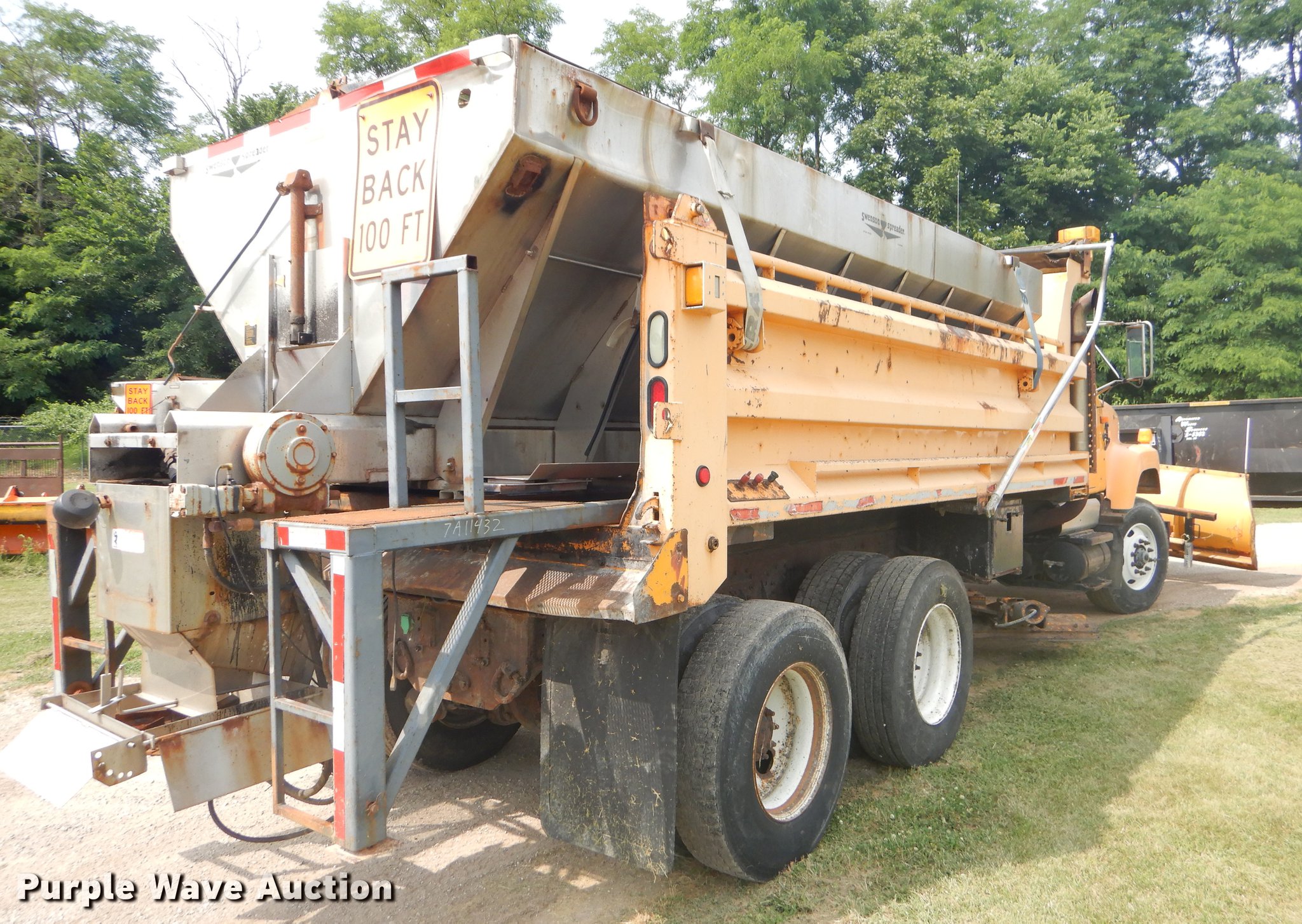 Purple Wave is selling a used Construction Dump Truck in Missouri. This item is a 2002 International 2554 dump truck with the following: 176,046 miles on odometer, 9,071 hours on meter, International DT530 8.7L L6 turbo diesel engine, Automatic transmission, Tandem axle, Inter-axle differential lock, AC and heat, Cruise, AM/FM/weatherband, Power windows, Power and heated mirrors, Air suspension seat, PTO, 16'L x 96"W steel dump bed, 36" side height, Roll tarp, Rear ladder access, 134"W plow, Swenson spreader, Under-mounted adjustable grader blade, Single fuel tank, Walking beam suspension, Air brakes, 216" wheelbase, 315/80R22.5 front tires, 11R22.5 rear tires, Chipped windshield, Unknown operating condition, MODOT ID 6706