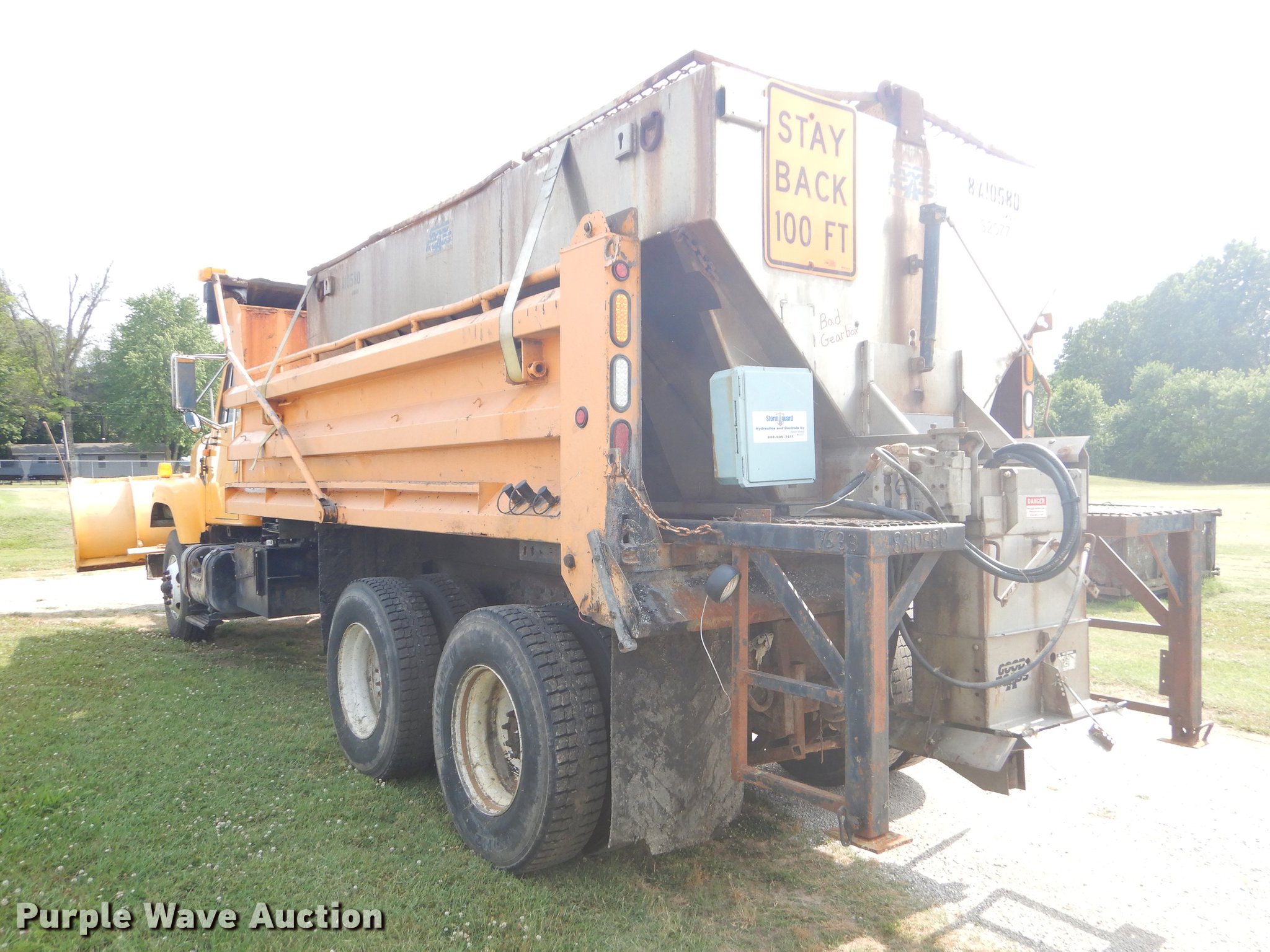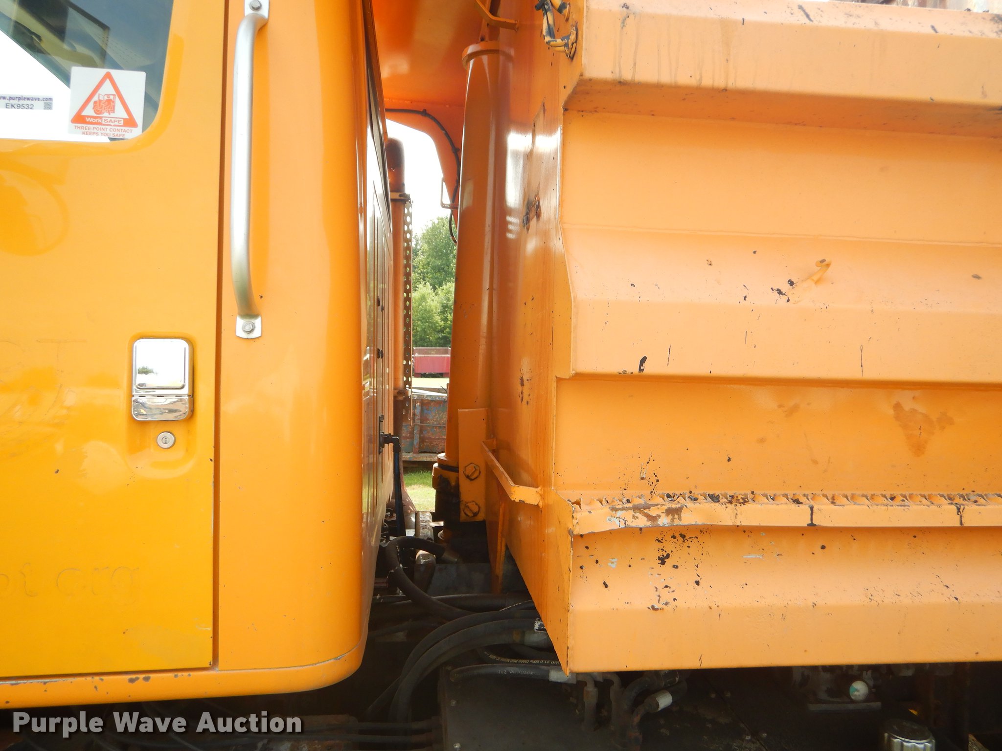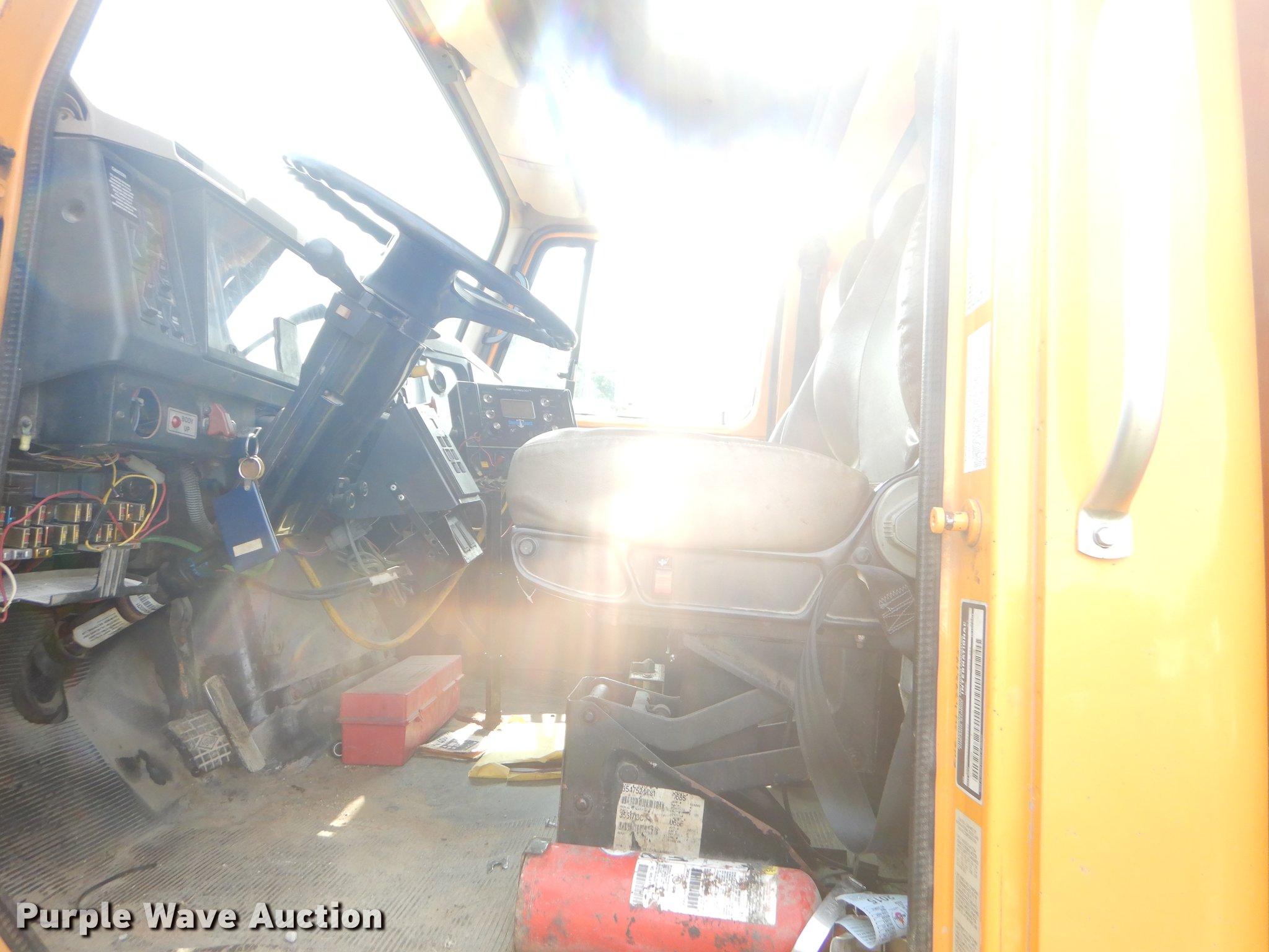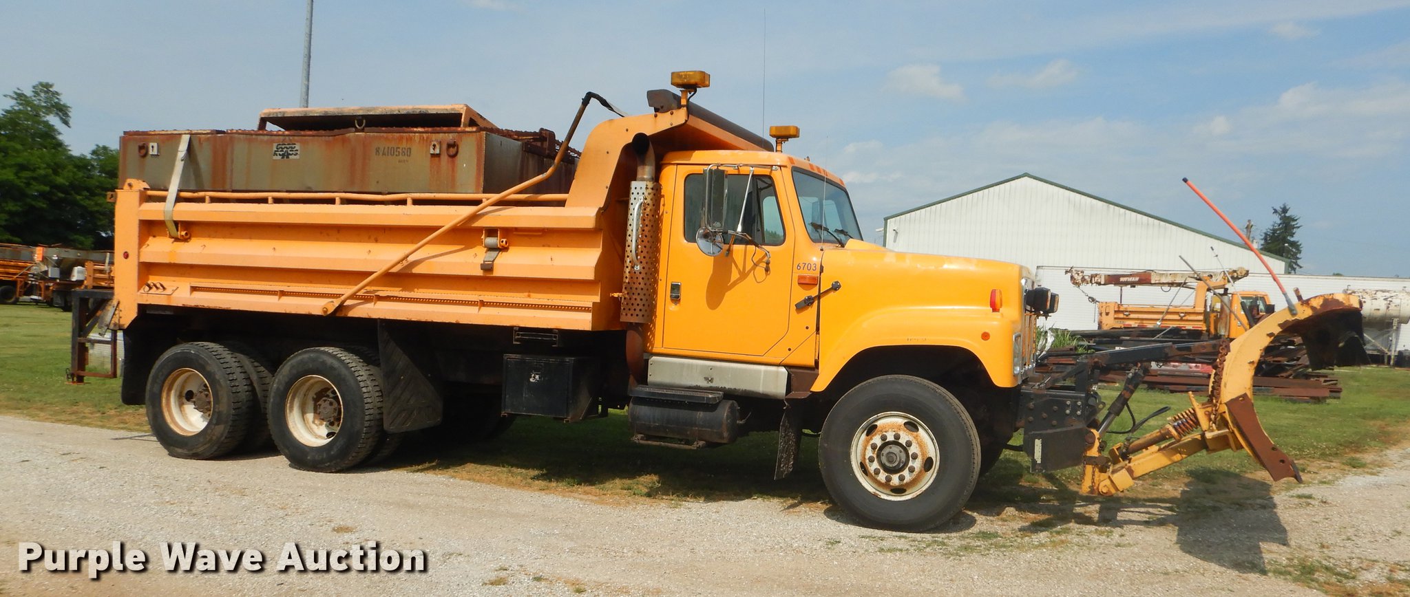 Purple Wave is selling a used Construction Dump Truck in Missouri. This item is a 2002 International 2554 dump truck with the following: 175,794 miles on odometer, 8,916 hours on meter, International DT530 8.7L L6 turbo diesel engine, Automatic transmission, Tandem axle, Inter-axle differential lock, AC and heat, Cruise, AM/FM/weatherband, Power windows, Power and heated mirrors, Air suspension seat, Air ride cab, PTO, Toolboxes, 16'L x 96"W steel dump bed, 36" side height, Single ram hoist, 134"W plow, Good Roads spreader, Single fuel tank, Pintle hitch, Walking beam suspension, Air brakes, 216" wheelbase, 315/80R22.5 front tires, 11R22.5 rear tires, Unknown operating condition, MODOT ID 6703