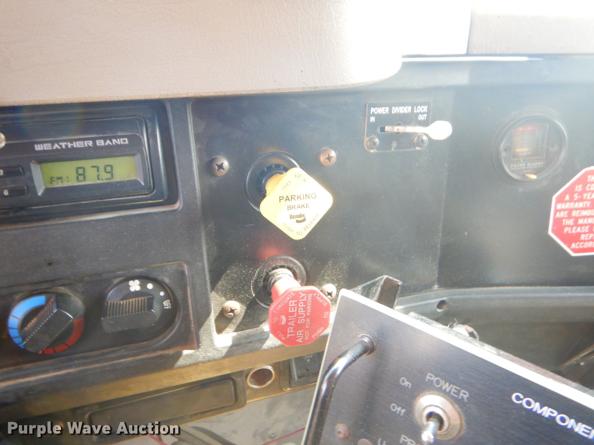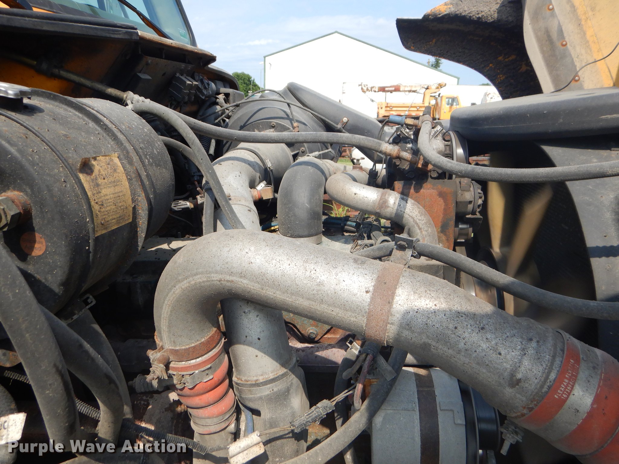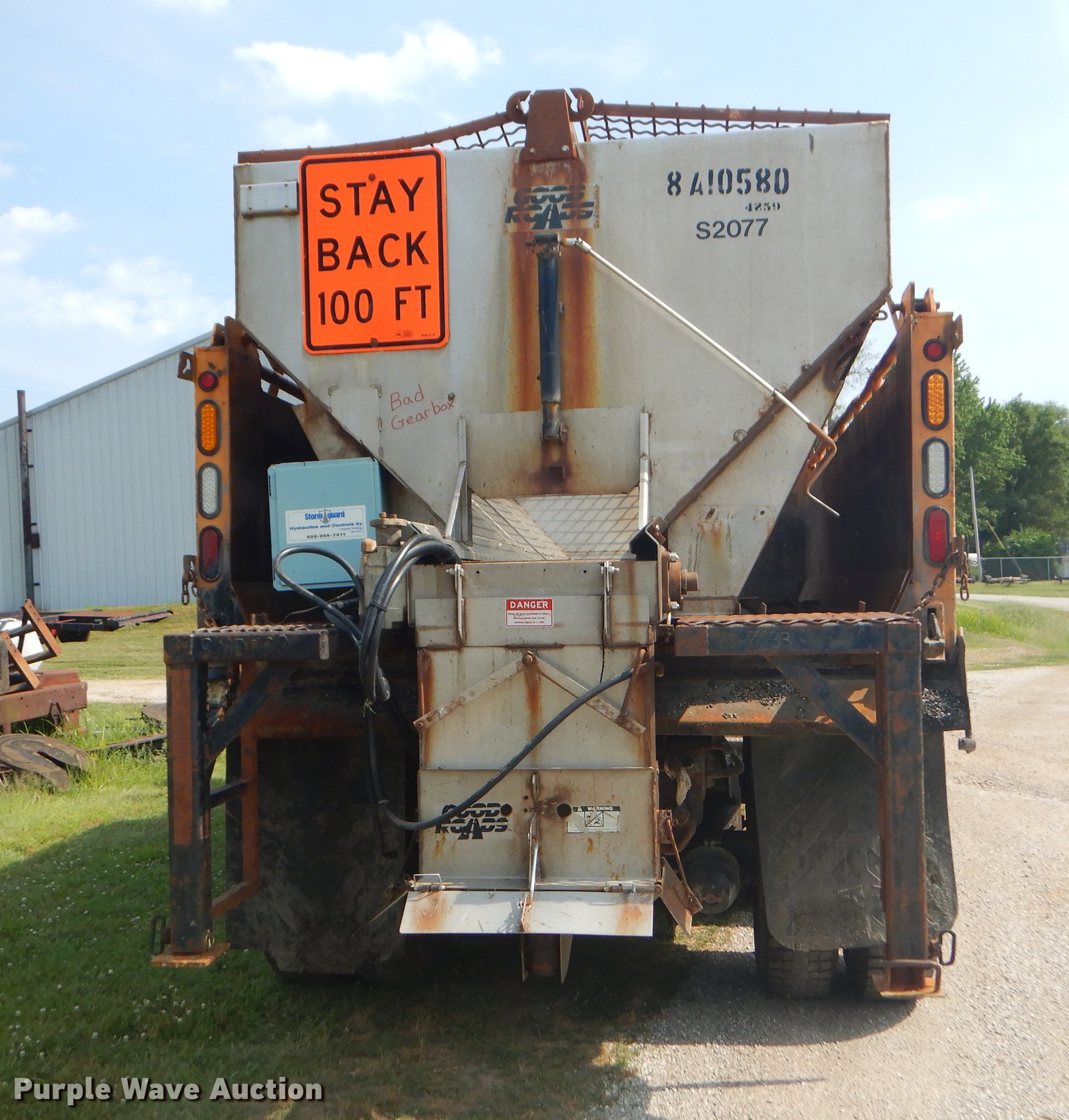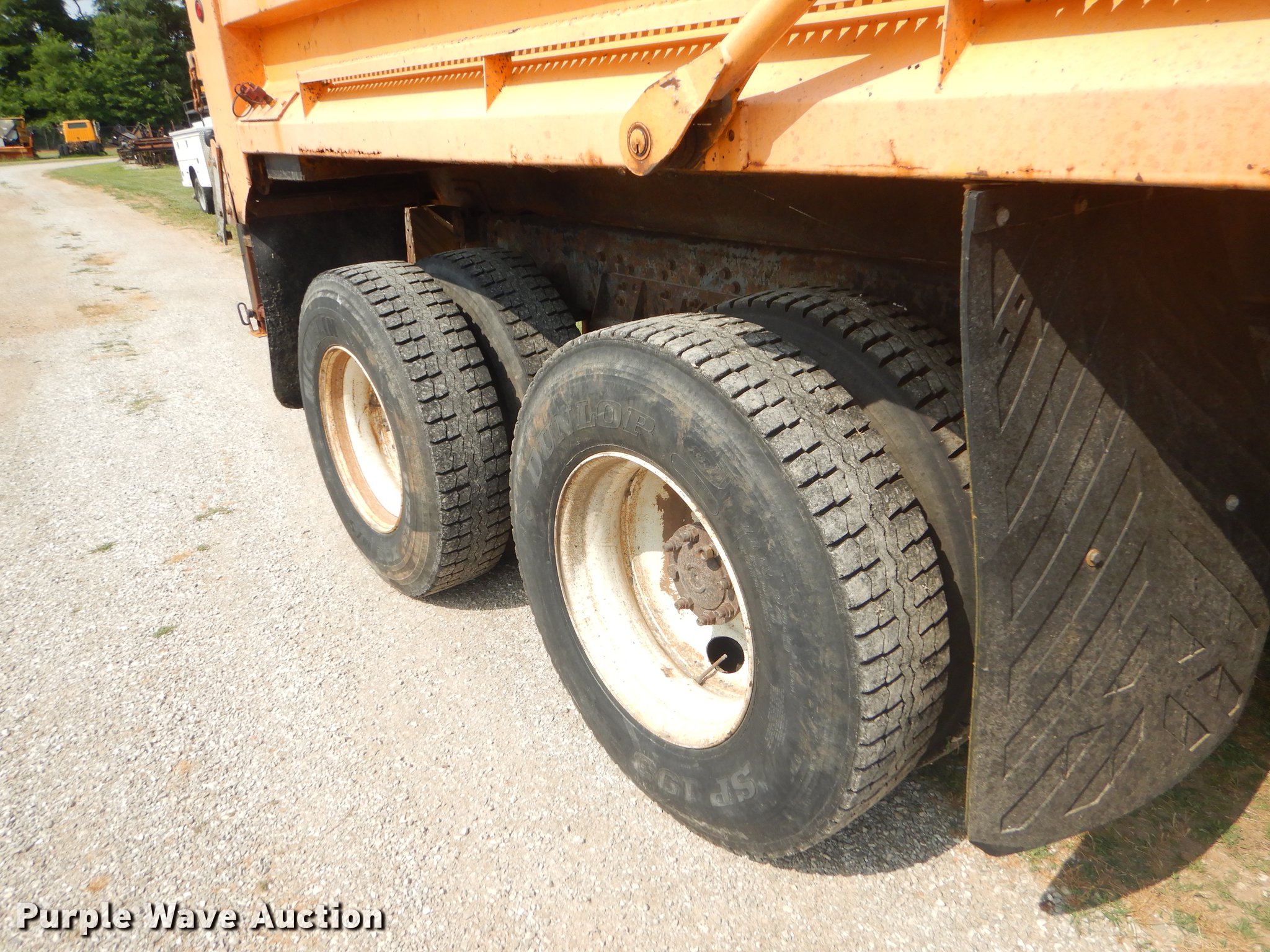 Purple Wave is selling a used Construction Dump Truck in Missouri. This item is a 2002 International 2554 dump truck with the following: 175,794 miles on odometer, 8,916 hours on meter, International DT530 8.7L L6 turbo diesel engine, Automatic transmission, Tandem axle, Inter-axle differential lock, AC and heat, Cruise, AM/FM/weatherband, Power windows, Power and heated mirrors, Air suspension seat, Air ride cab, PTO, Toolboxes, 16'L x 96"W steel dump bed, 36" side height, Single ram hoist, 134"W plow, Good Roads spreader, Single fuel tank, Pintle hitch, Walking beam suspension, Air brakes, 216" wheelbase, 315/80R22.5 front tires, 11R22.5 rear tires, Unknown operating condition, MODOT ID 6703