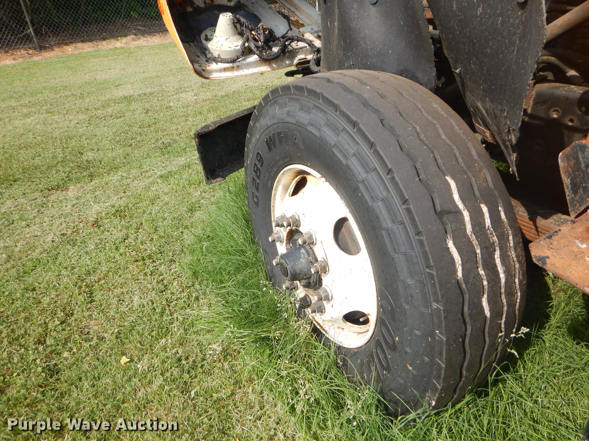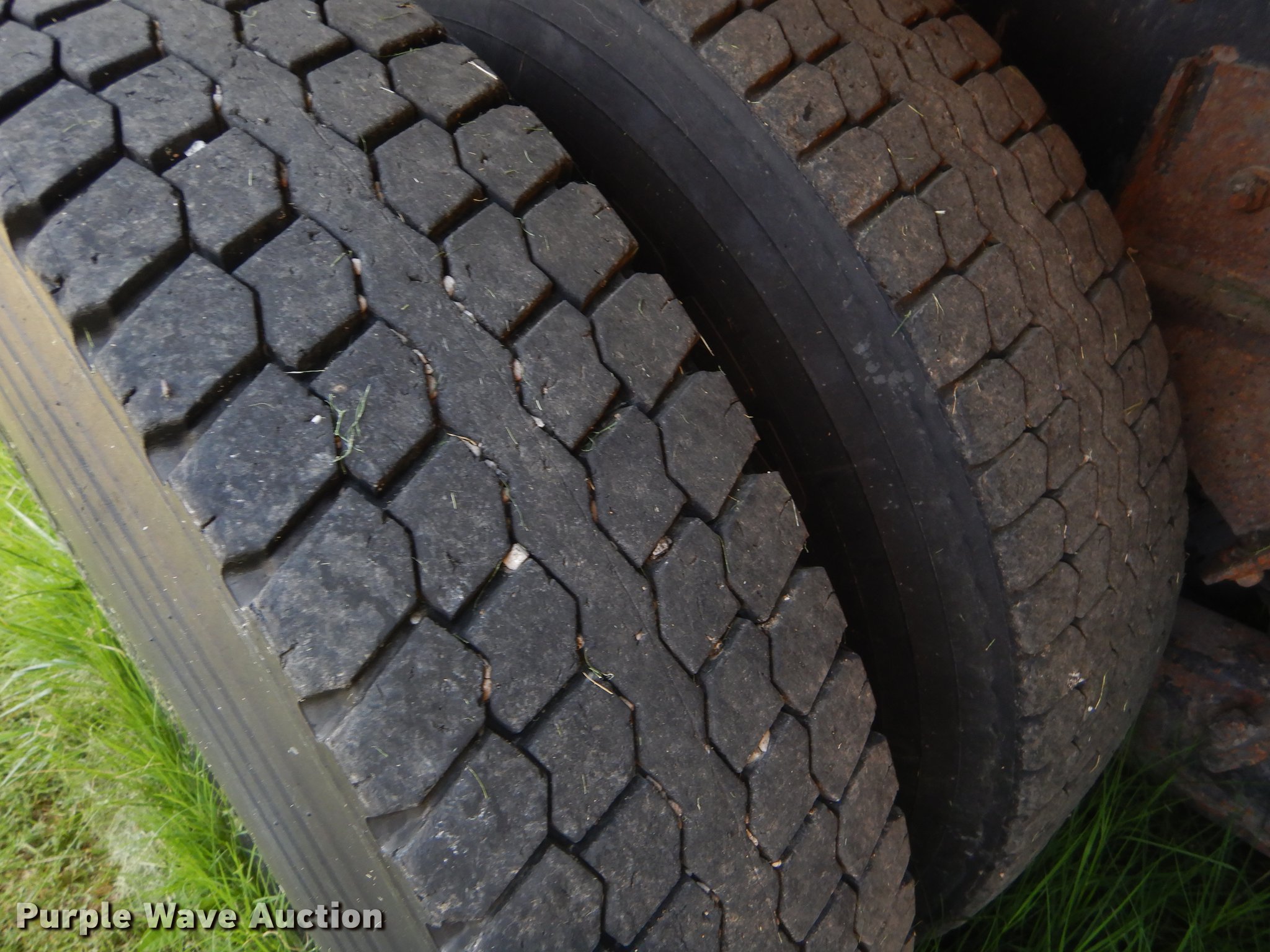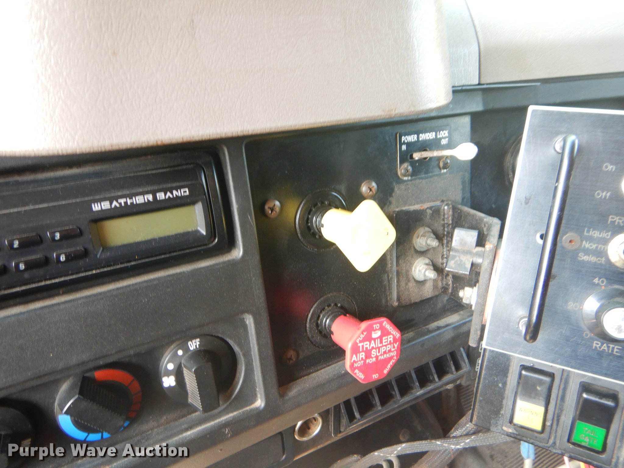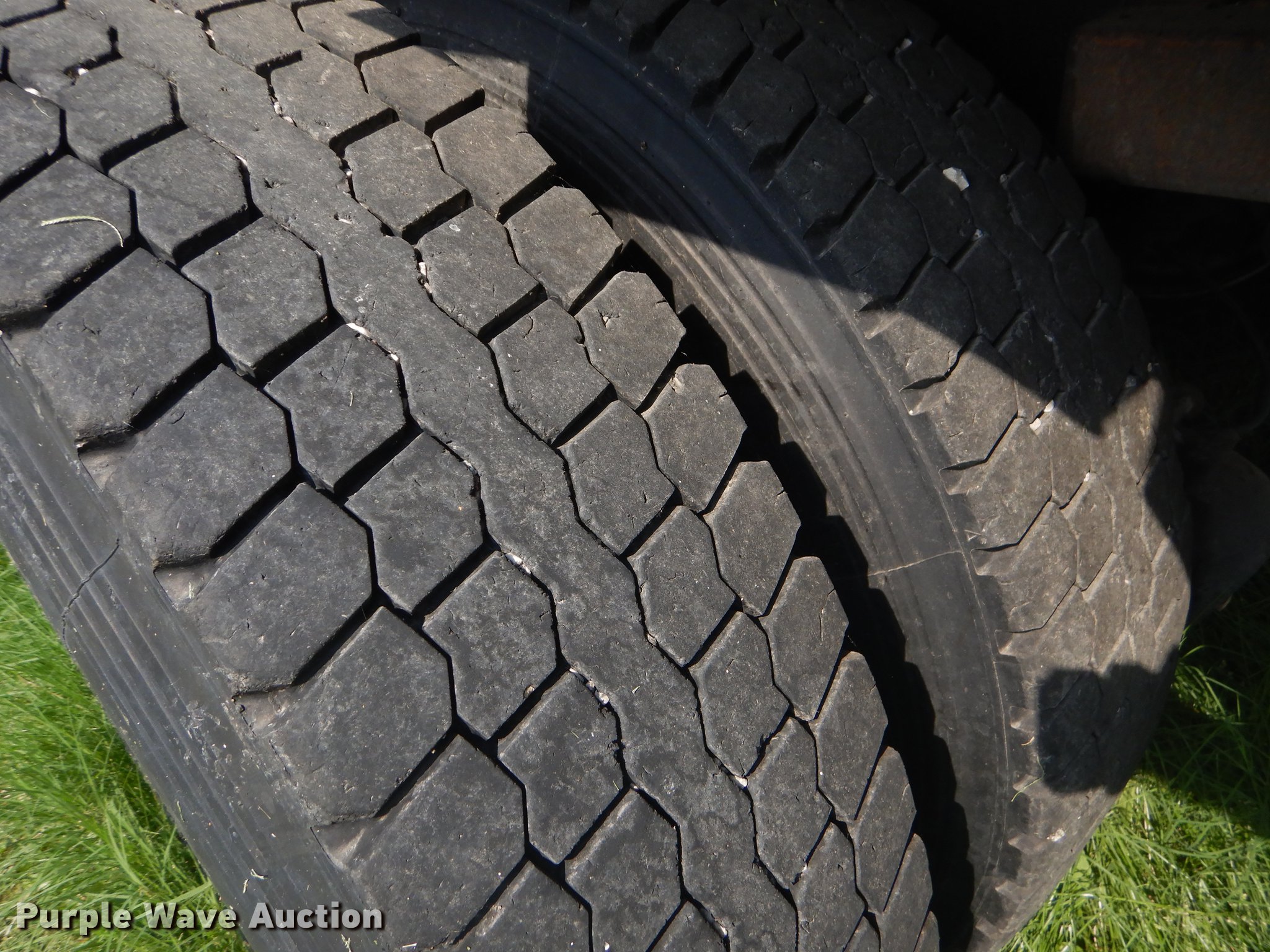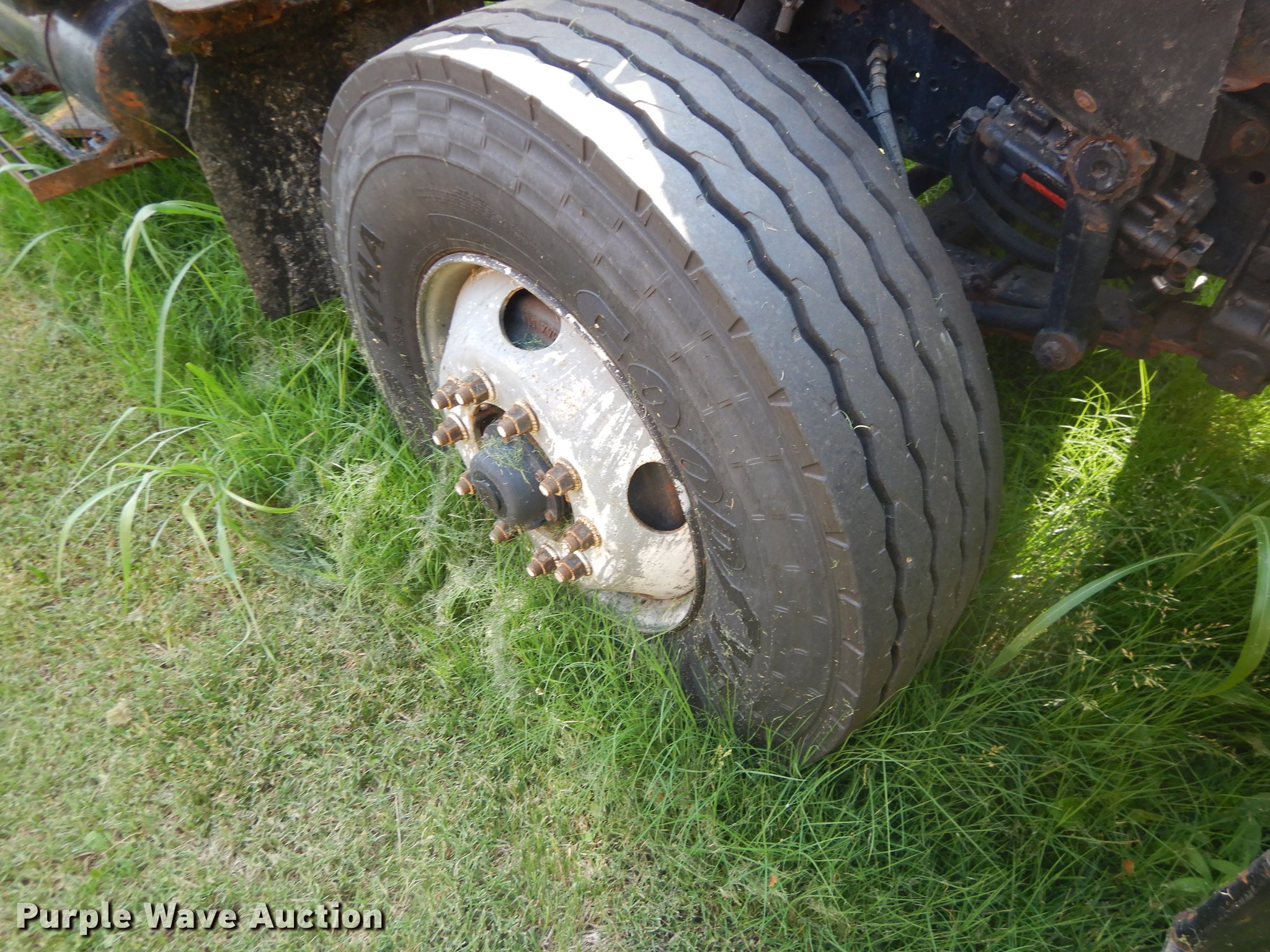 Purple Wave is selling a used Construction Dump Truck in Missouri. This item is a 2002 International 2554 dump truck with the following: 159,224 miles on odometer, 9,017 hours on meter, International DT530 8.7L L6 turbo diesel engine, Eaton Fuller eight speed manual transmission, Tandem axle, Inter-axle differential lock, AC and heat, Cruise, AM/FM/weatherband, Power windows, Power and heated mirrors, Air suspension seat, Air ride cab, PTO, Toolboxes, 16'L x 96"W steel dump bed, 36" side height, Roll tarp, Single ram hoist, Swenson spreader, Under-mounted adjustable grader blade, Single fuel tank, Walking beam suspension, Air brakes, 216" wheelbase, 315/80R22.5 front tires, 11R22.5 rear tires, Non-operational unit, Injector tip blown off, Smokes, MODOT ID 6963