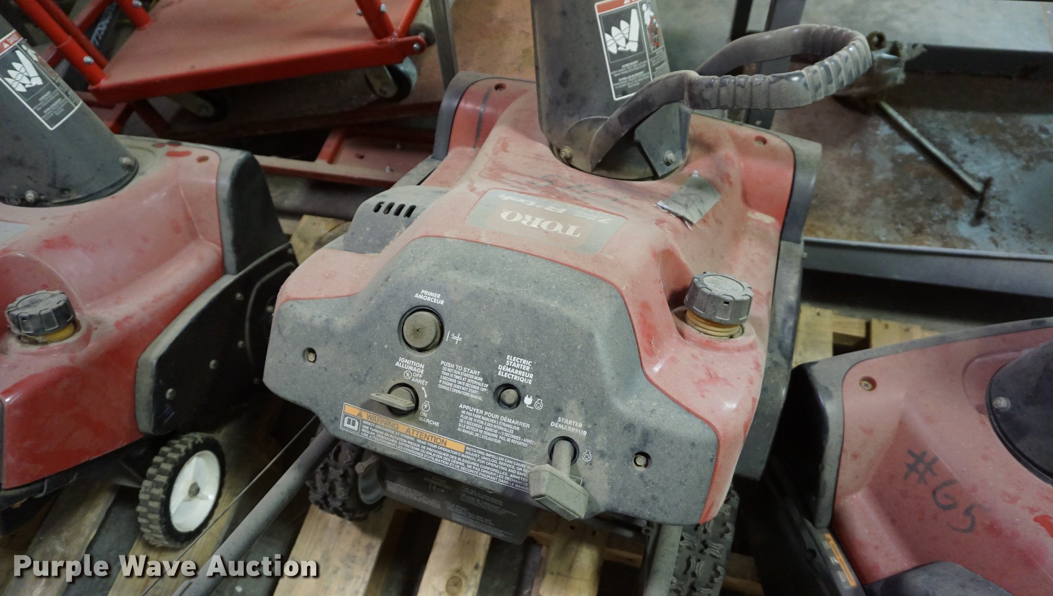 Purple Wave is selling a used Lawn and Garden in Kansas. This item is a (5) snow blowers with the following: (3) Toro CCR3650, 18"W, Toro Snow Commander, 20"W, 7 HP, MTD Snow Flight 826, 24"W, Tecumseh gas engine, Unknown operating conditions